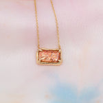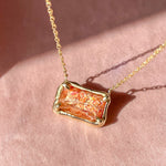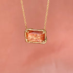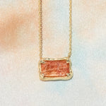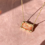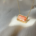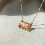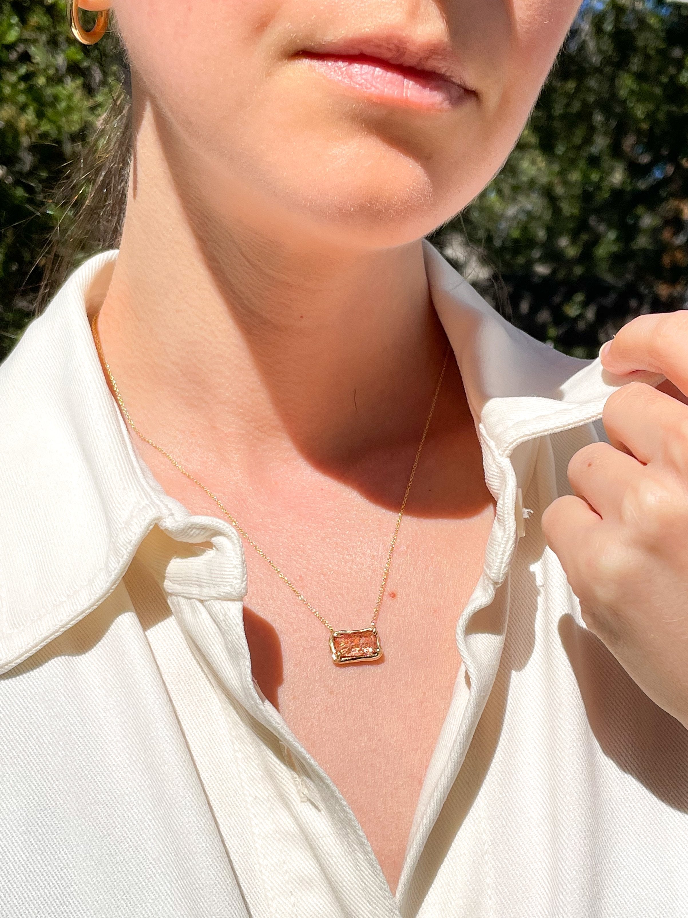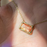 Hugged by a 14k yellow gold frame on a 16” chain.