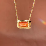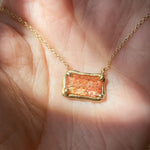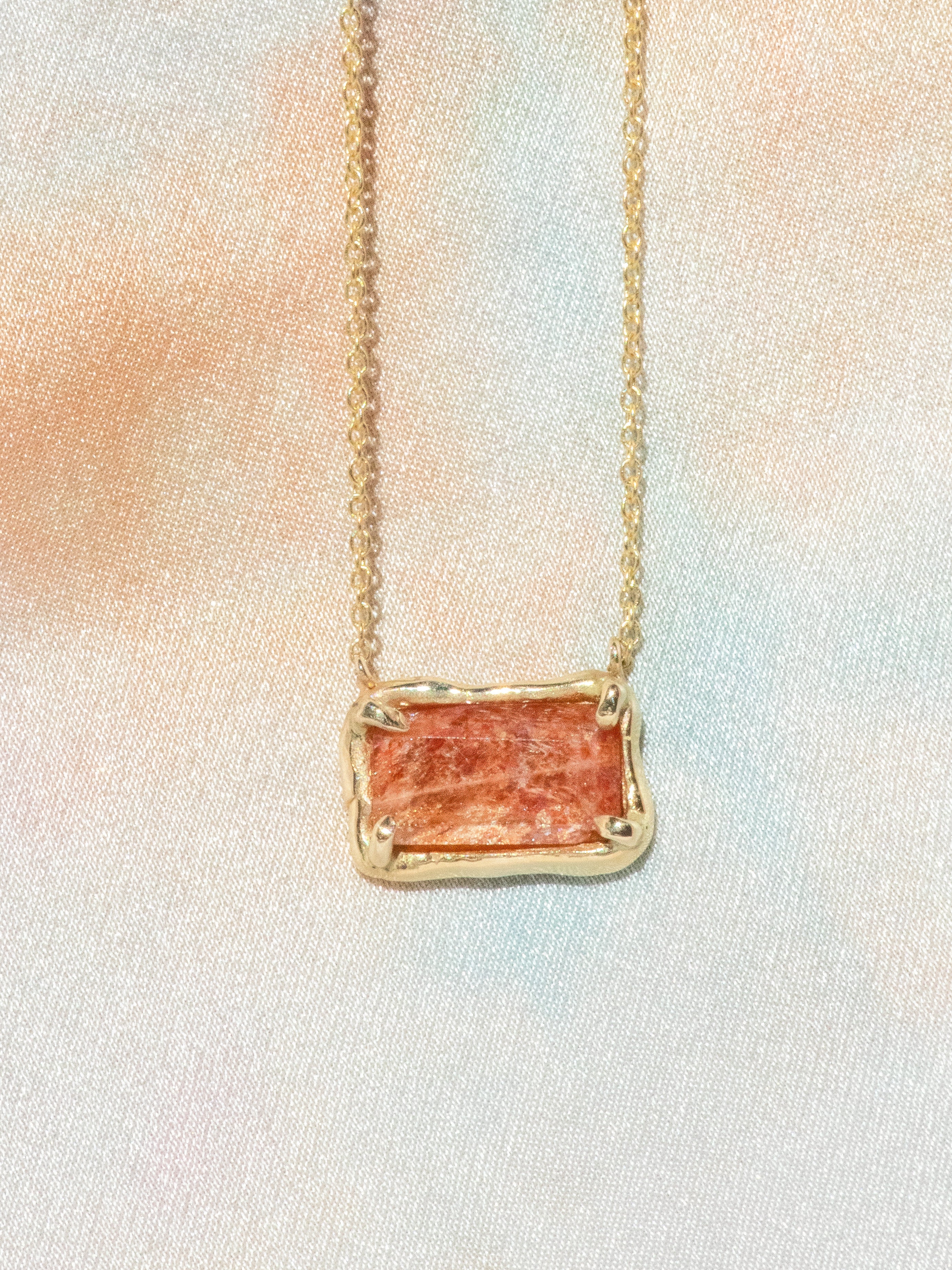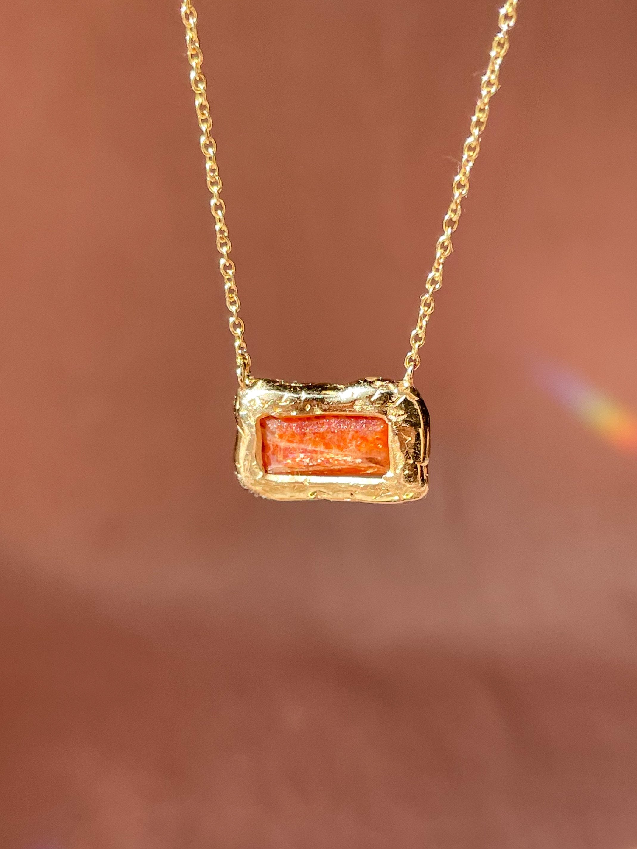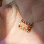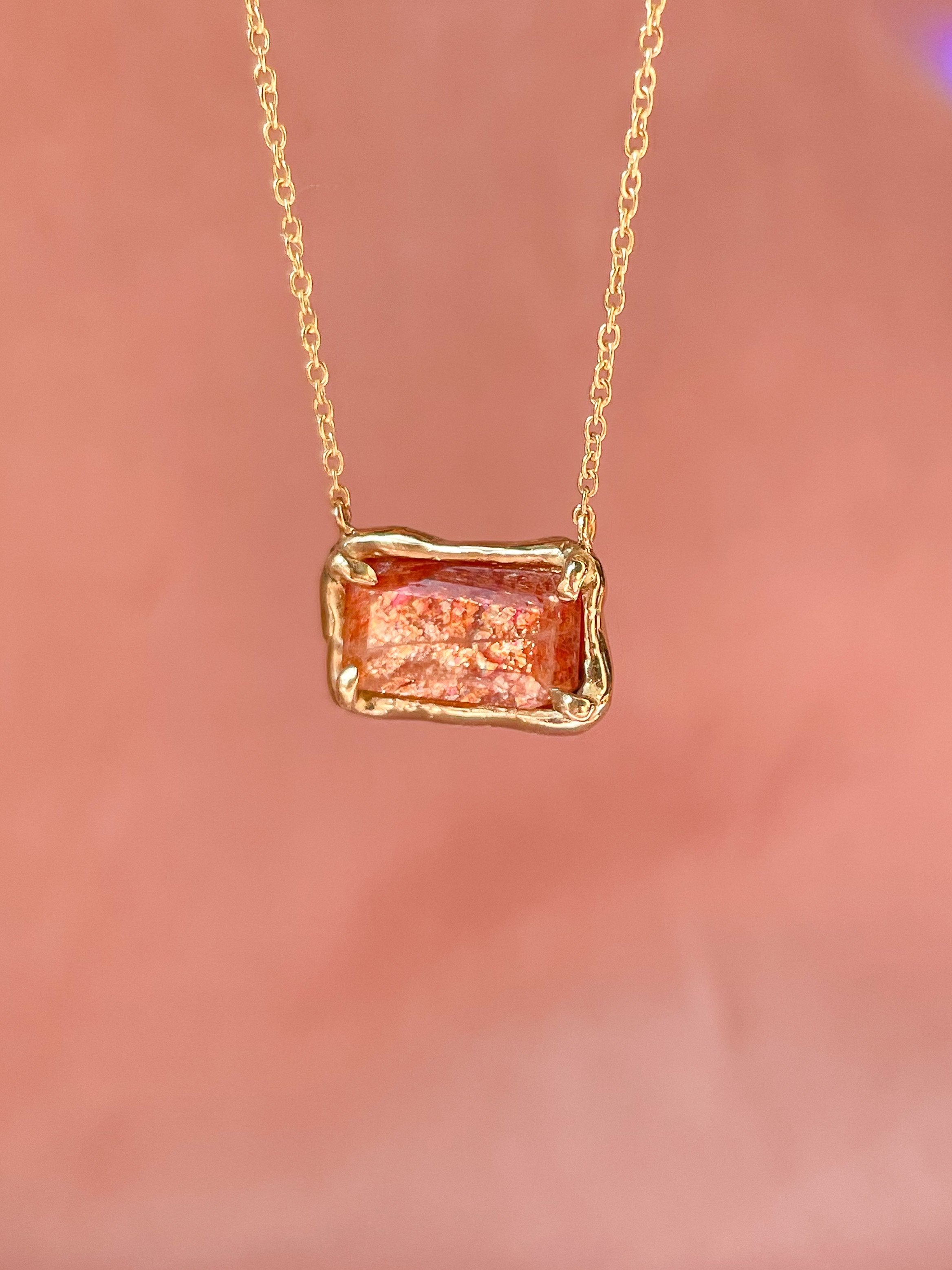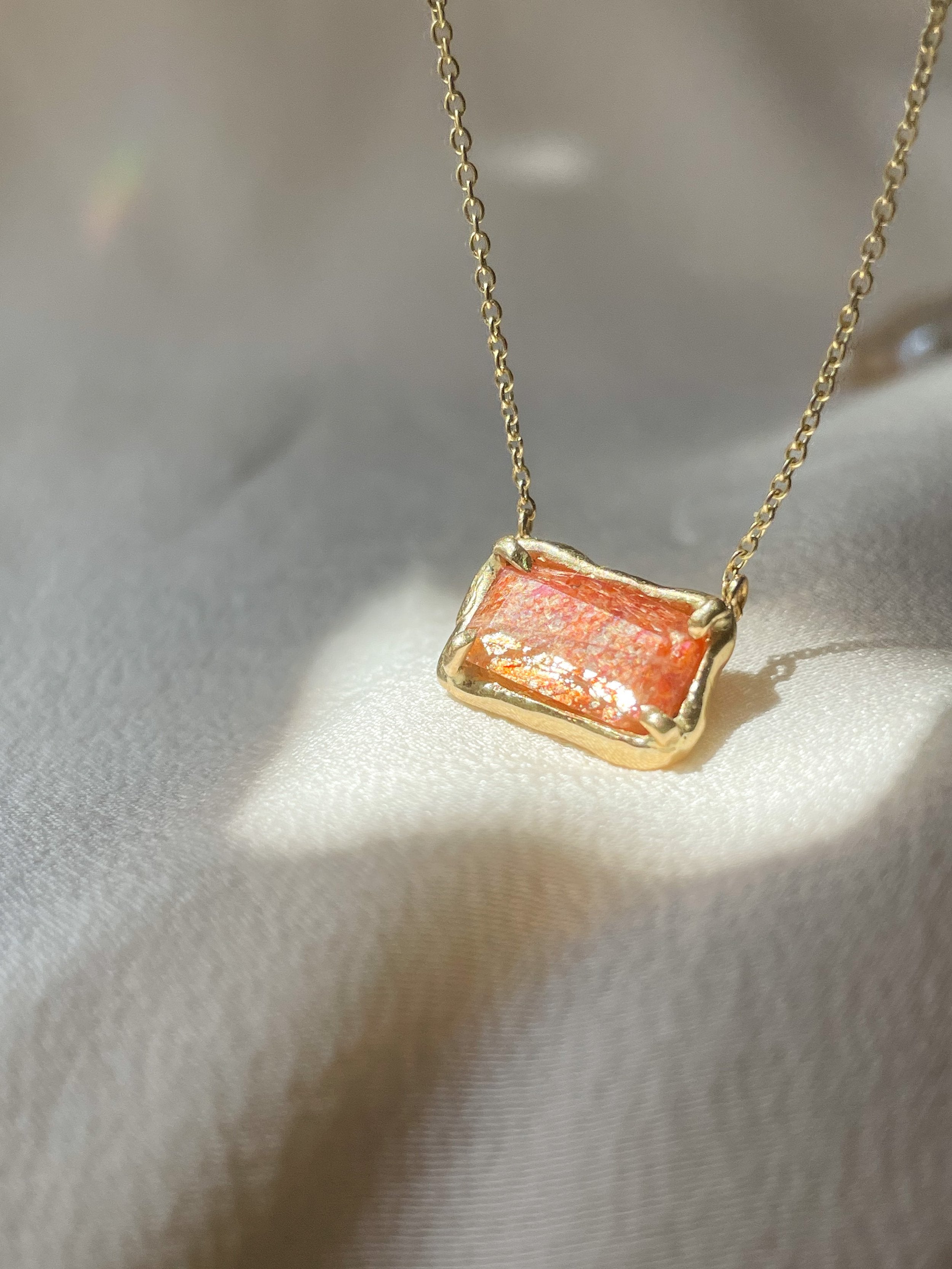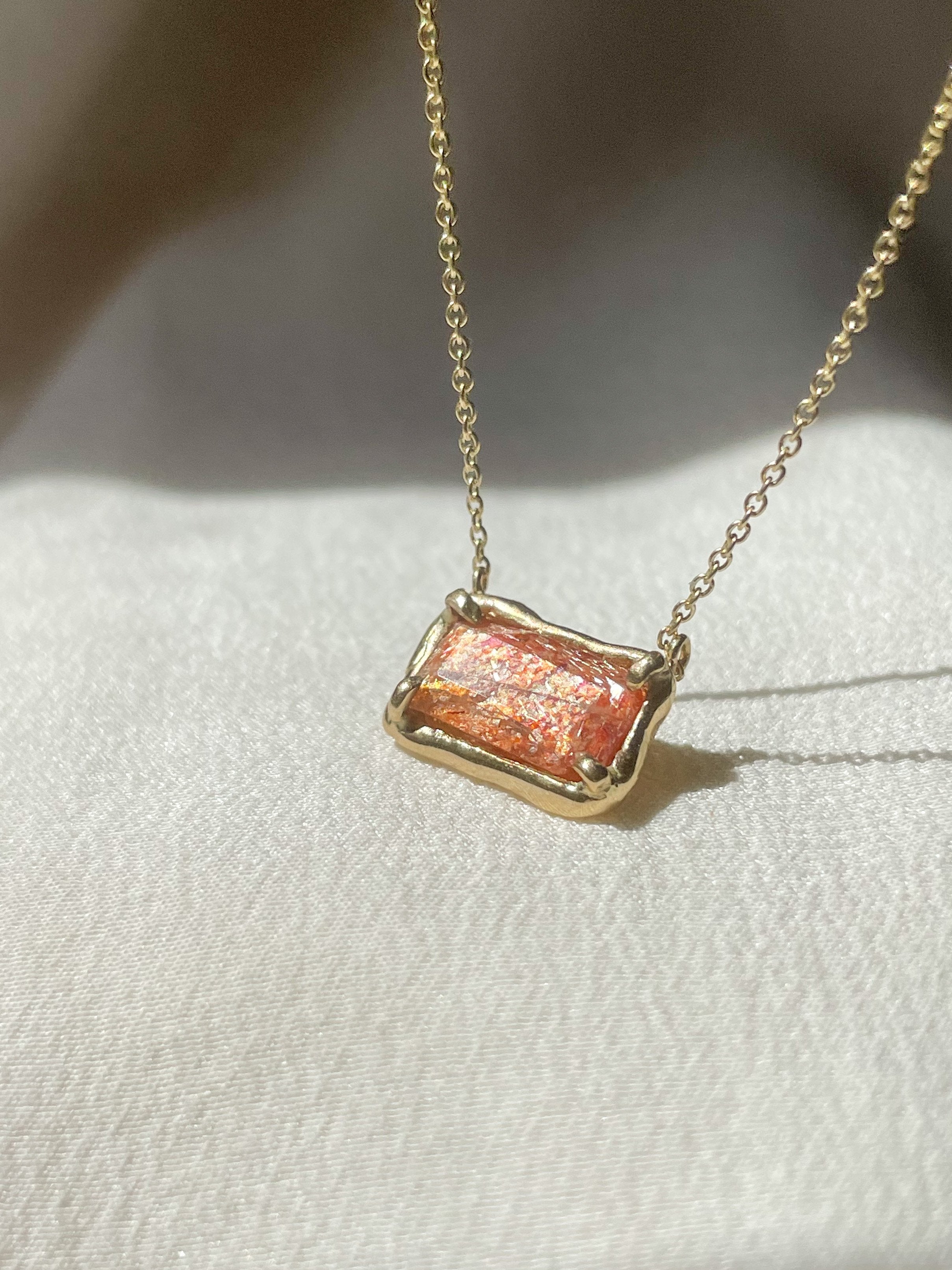 One of a kind confetti Sunstone Pendant, filled to the brim with iridescent rainbows and flecks of light, illuminated from within, this light-body is ready to embrace you with the warmth of the sun.