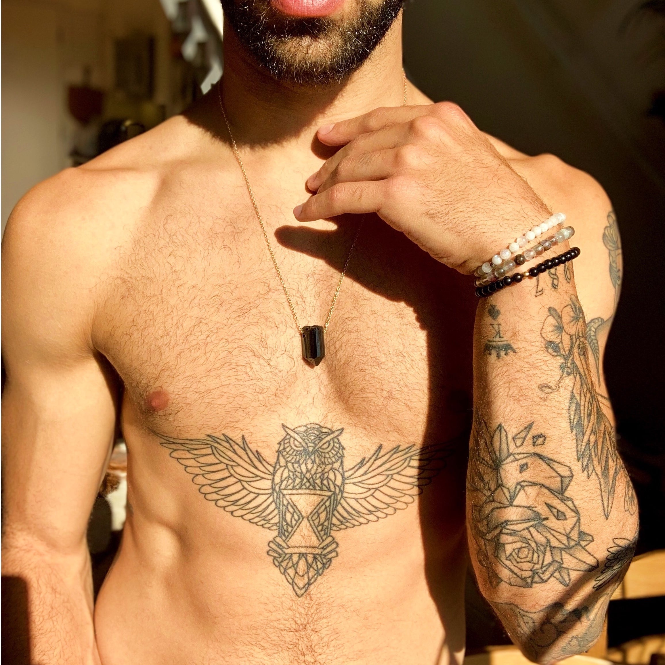 ““Margaux has the most gorgeous, brilliant, magical crystal necklaces and I adore the one I wear over my heart every day. I wore my Morganite necklace the whole time I worked on my Tarot Deck, it definitely helped me keep my heart open as I wrote. Love you BB!”