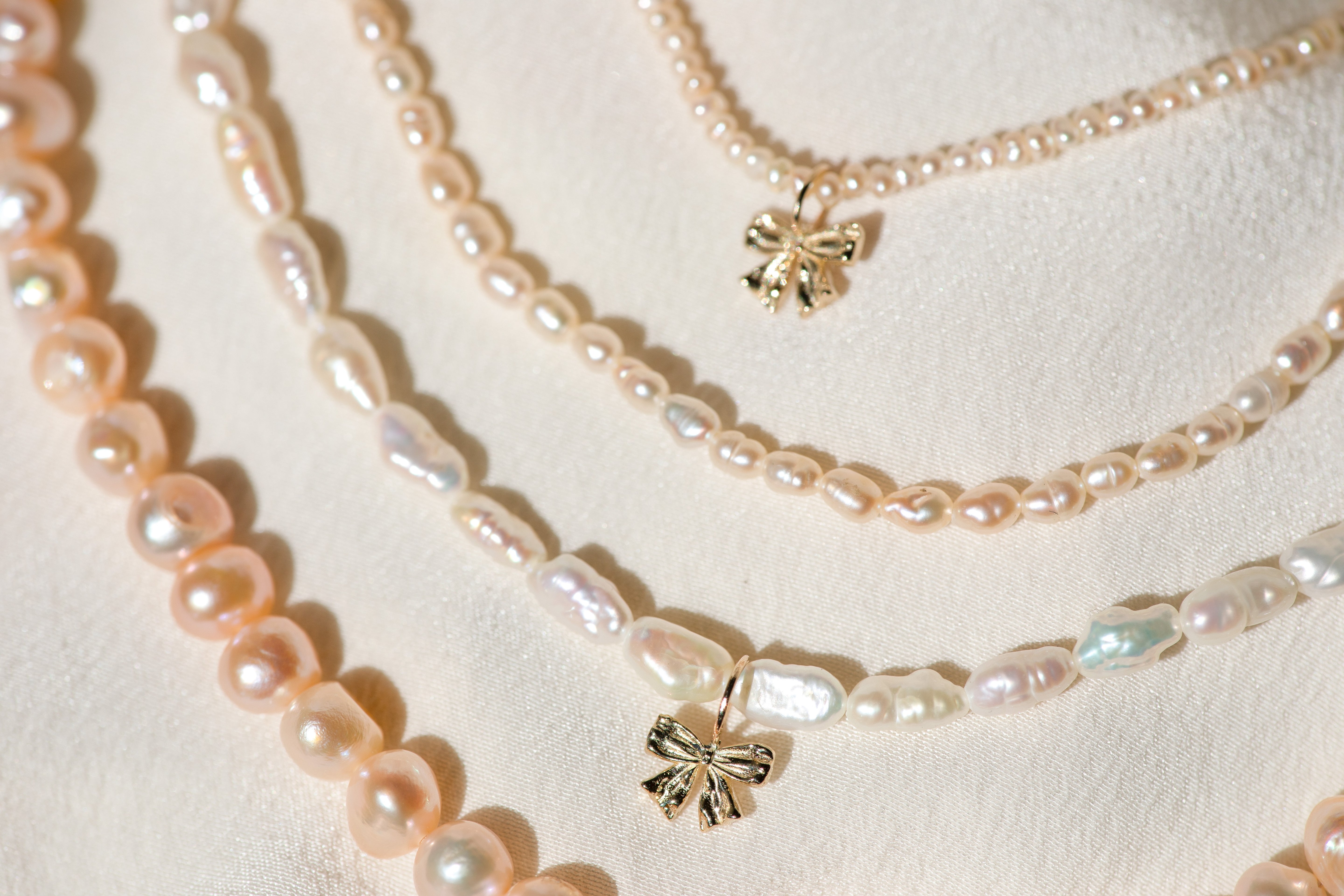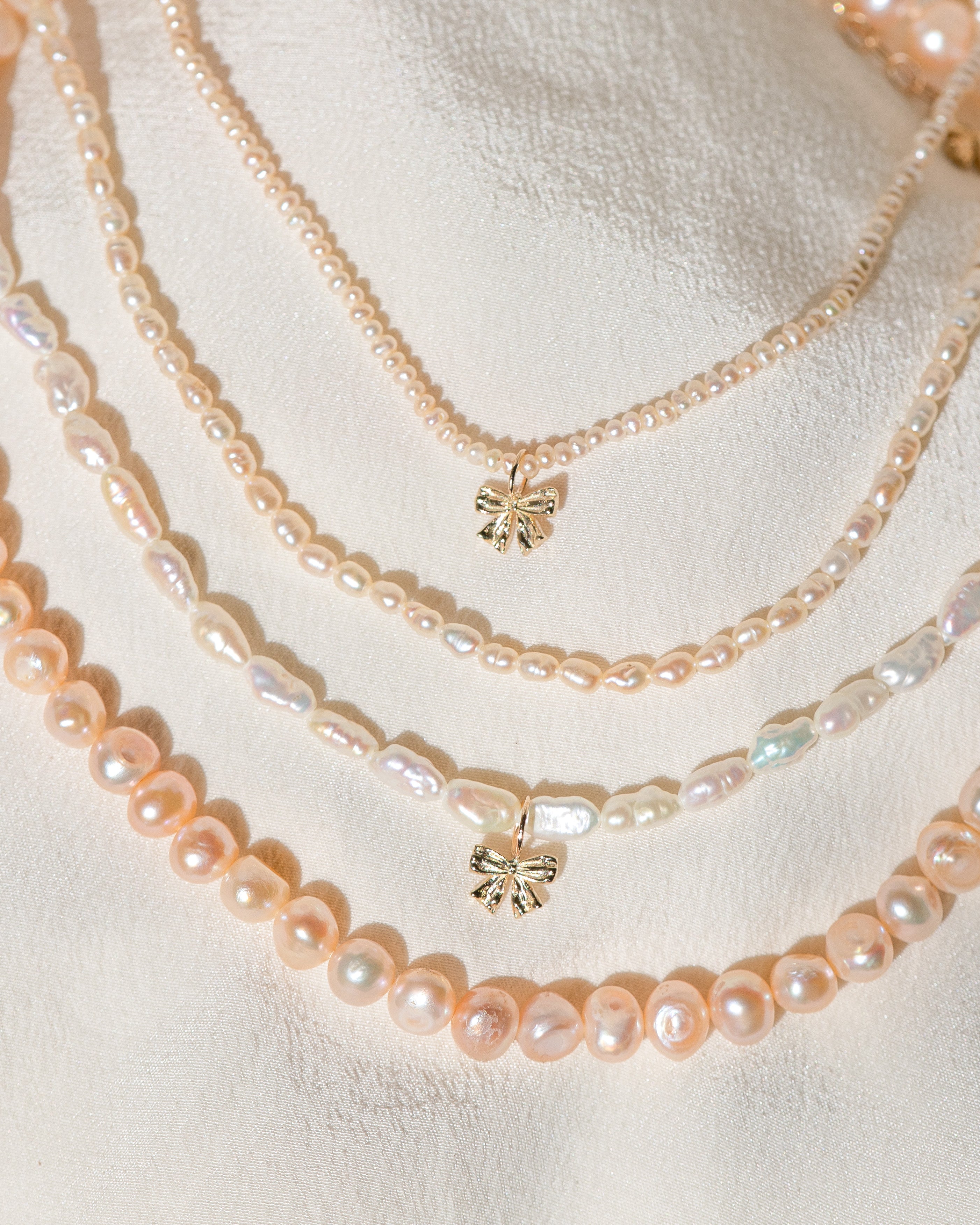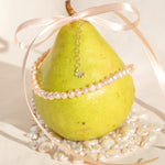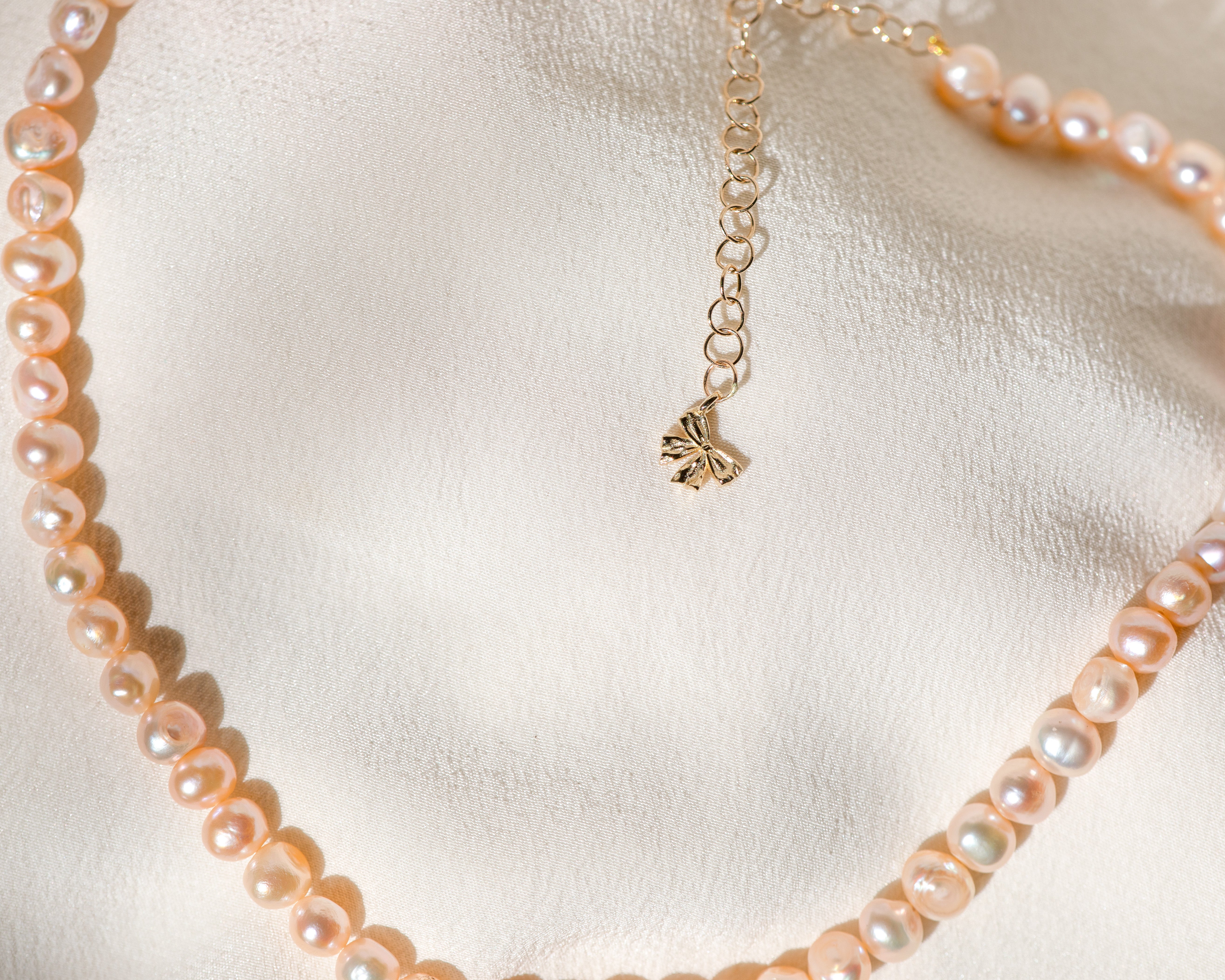 This perfectly petite coquette pearl pendant is inspired by the pendants worn by Marie Antoinette, adorned in ribbon and sealed at the back with a bow.