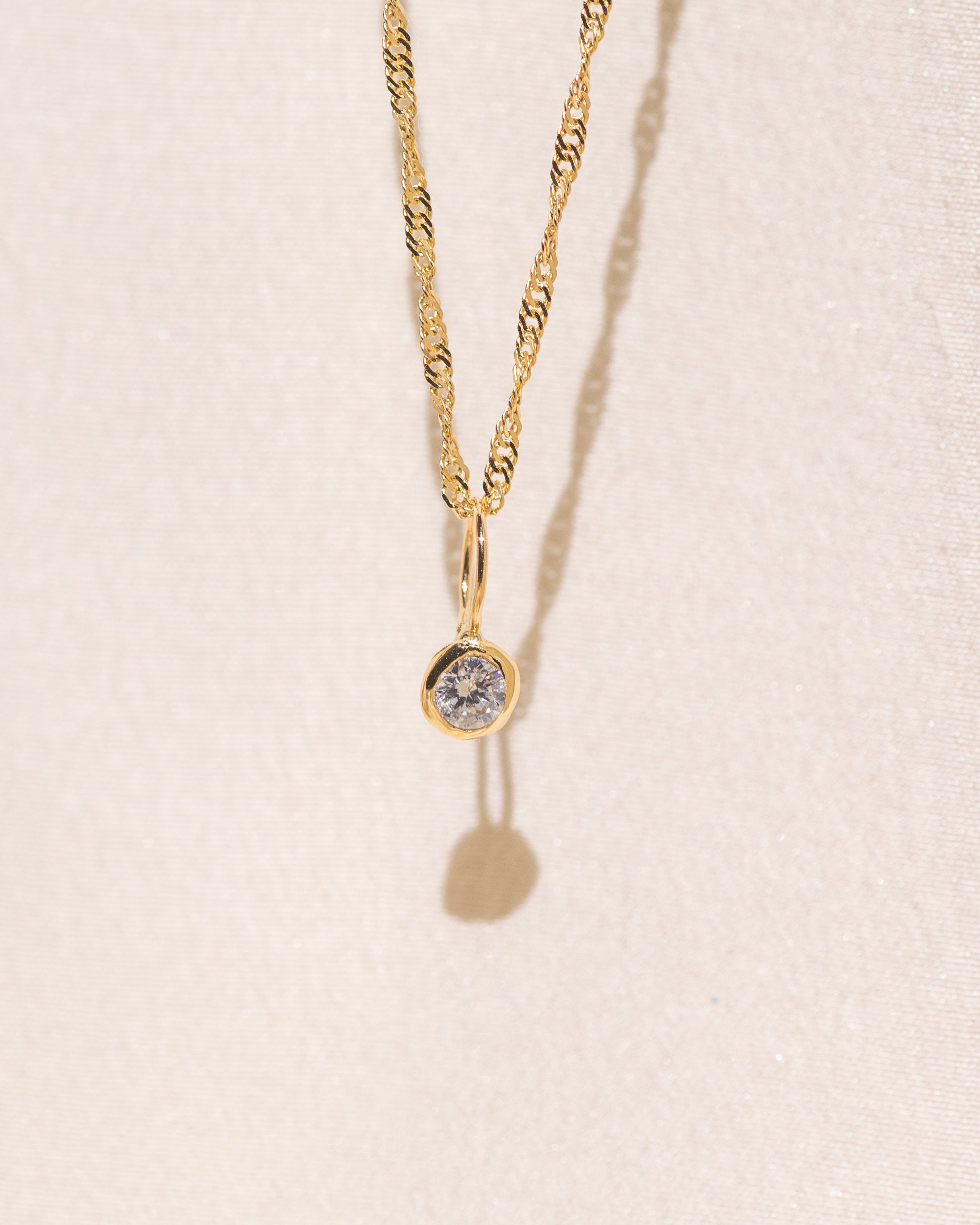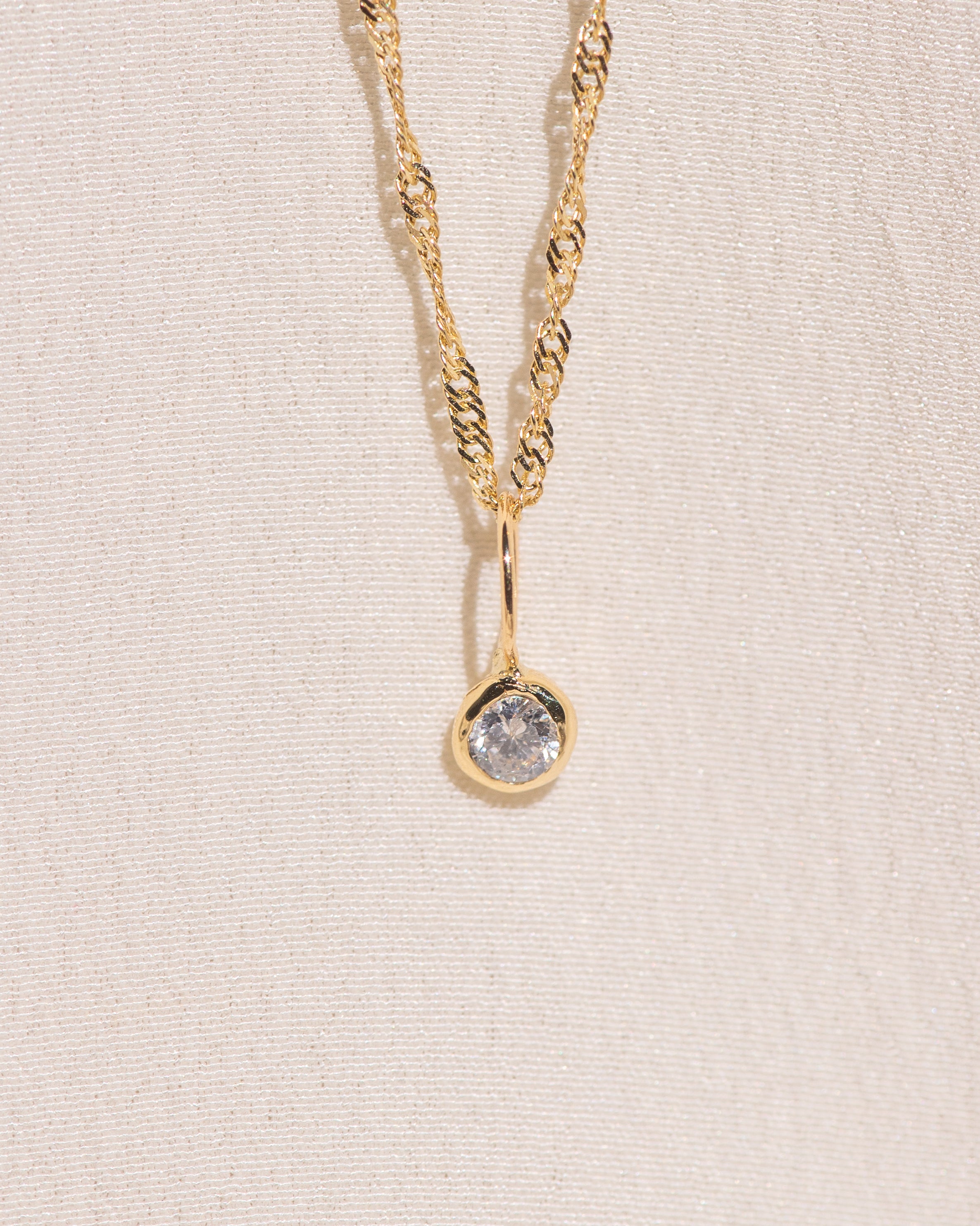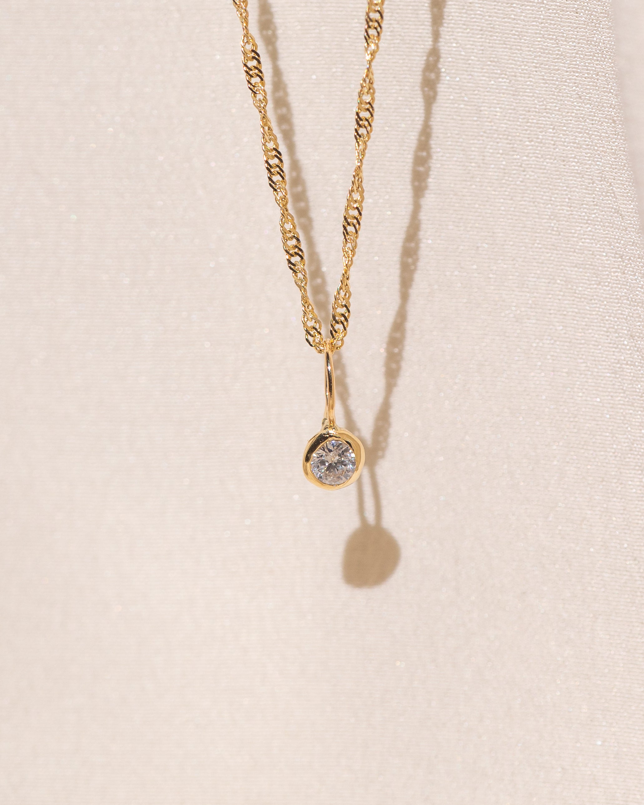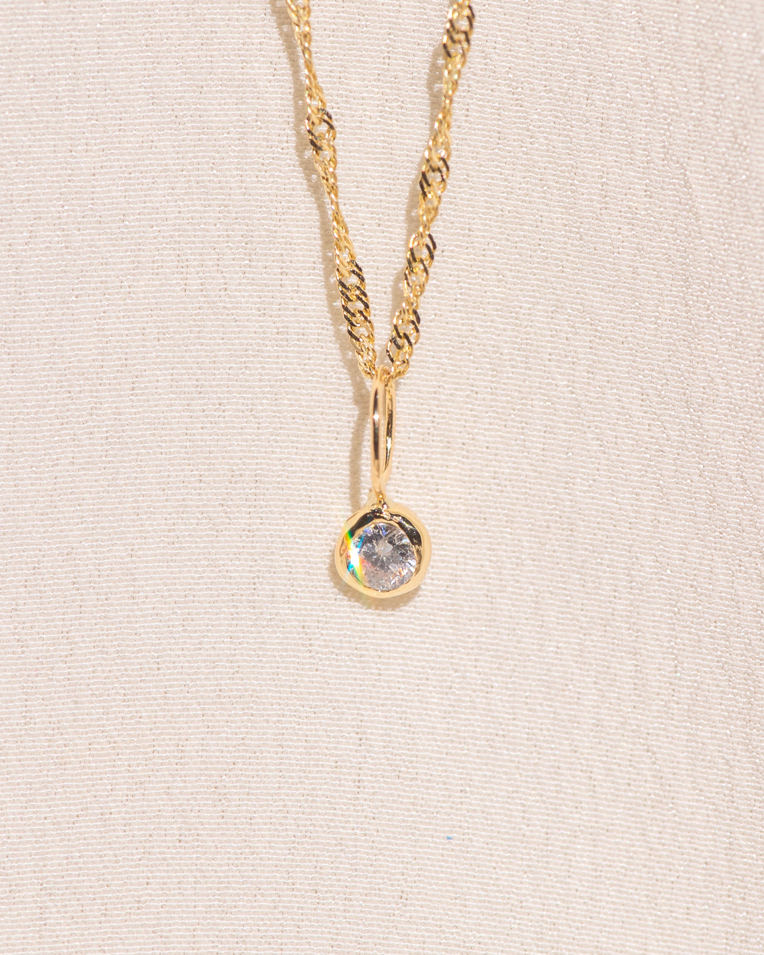 Solid 14k yellow gold on 16" or 18" shimmering Singapore chain.