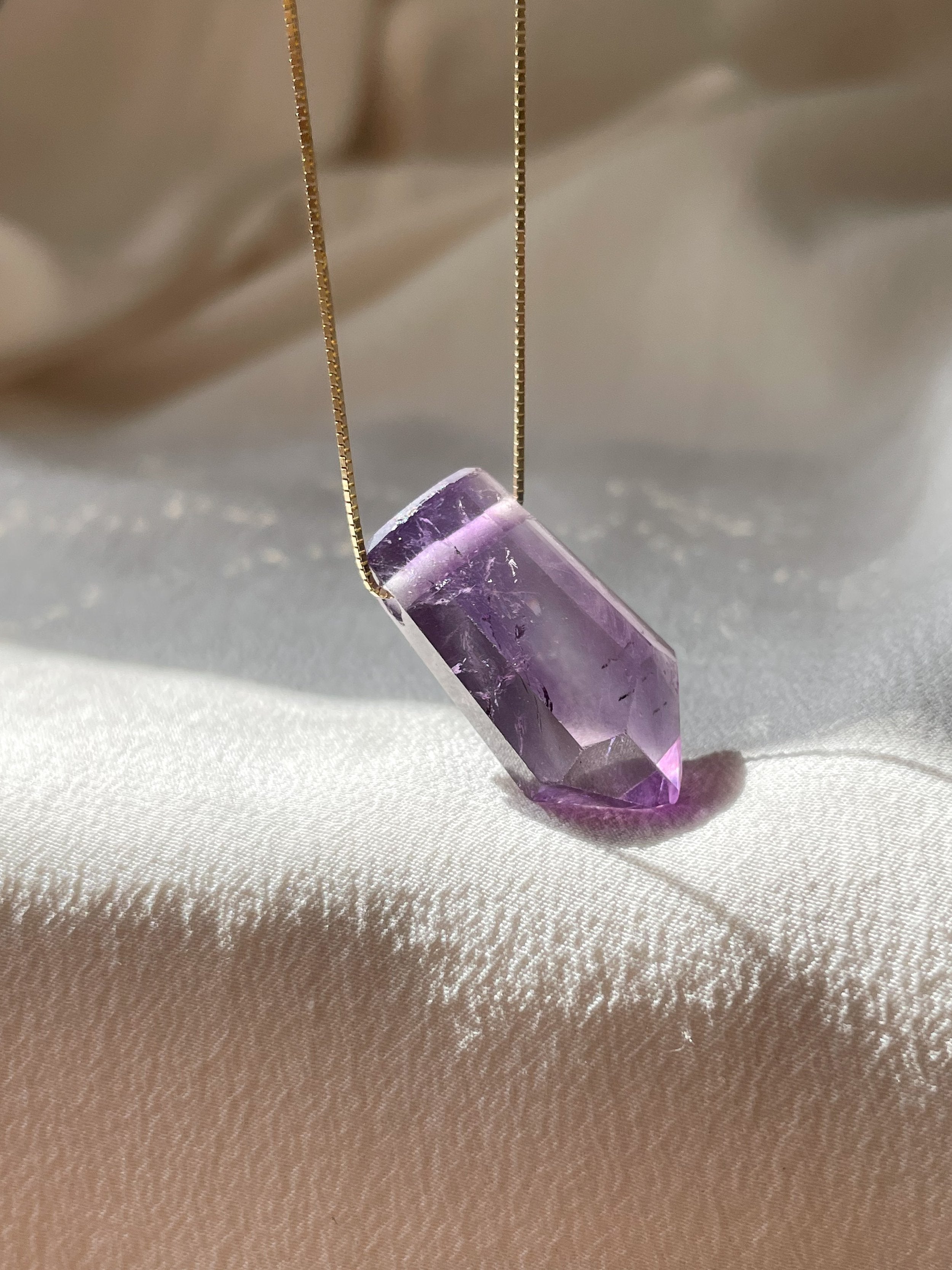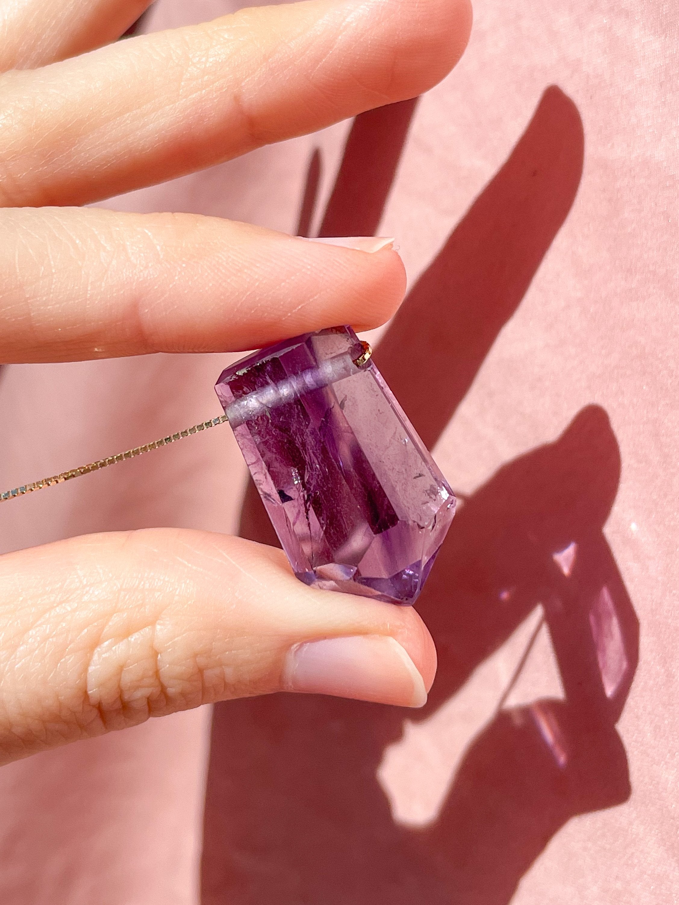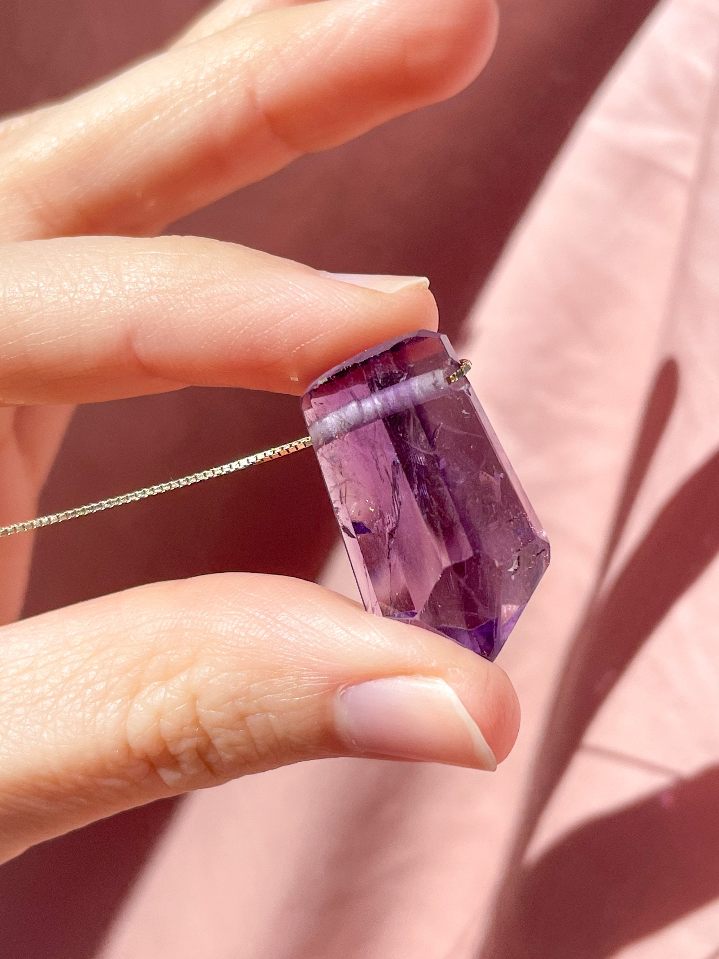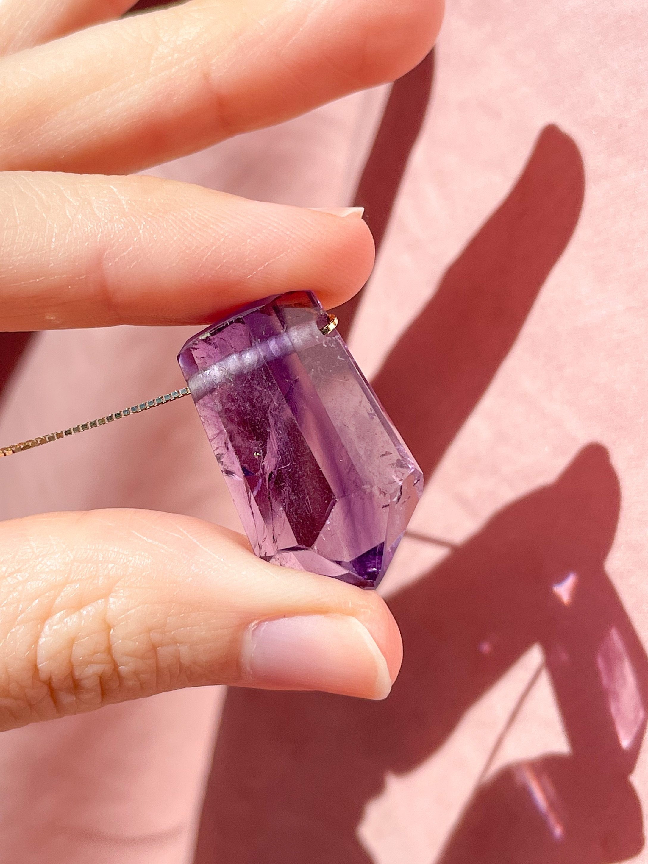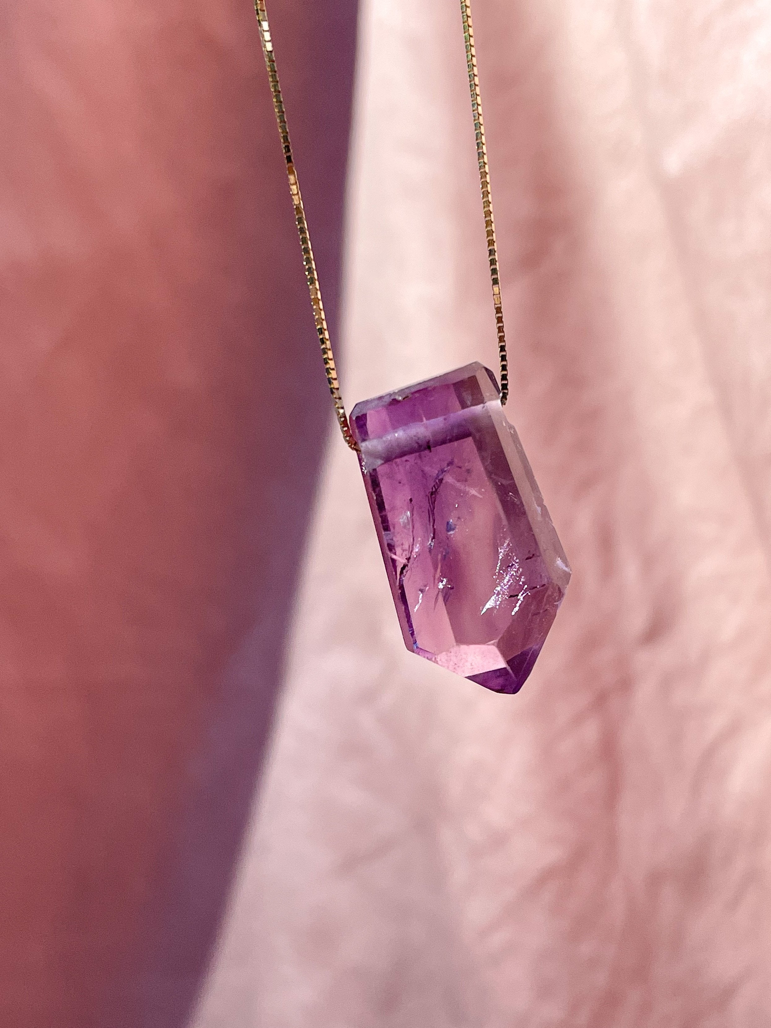 *Please note: Amethyst is considered a photosensitive stone, which means it is sensitive to light - over time, if it is in direct sunlight for extra prolonged periods of time, its color can fade. I recommend alternating wearing this inside of your shirt / outside of your shirt depending on the day.