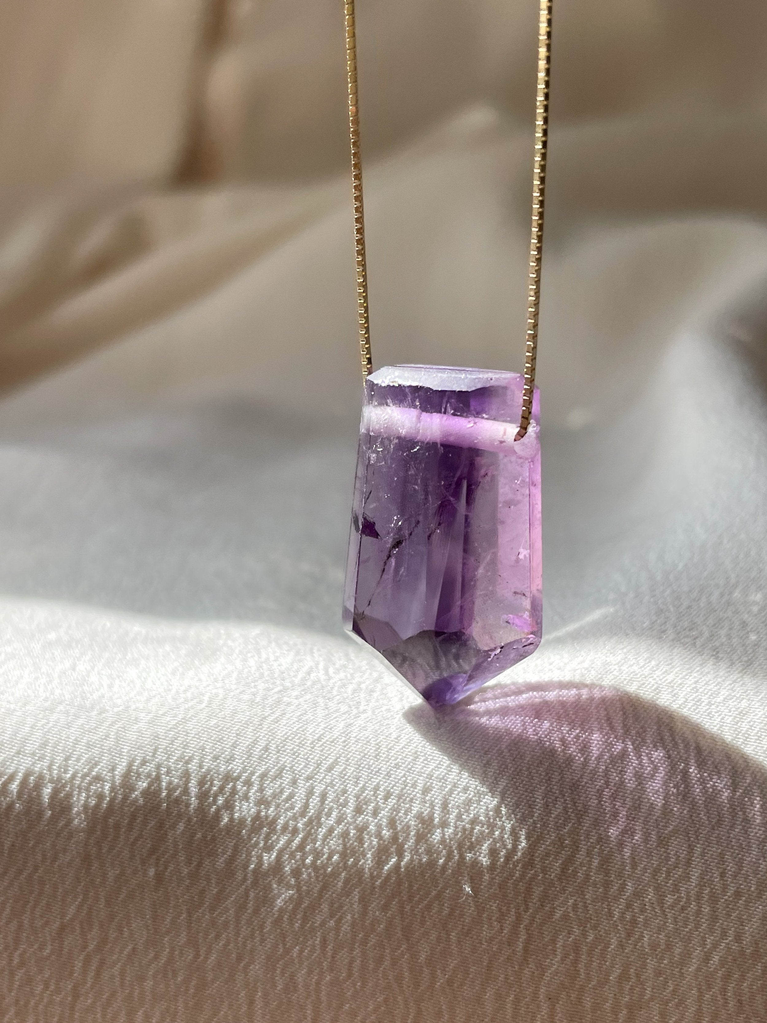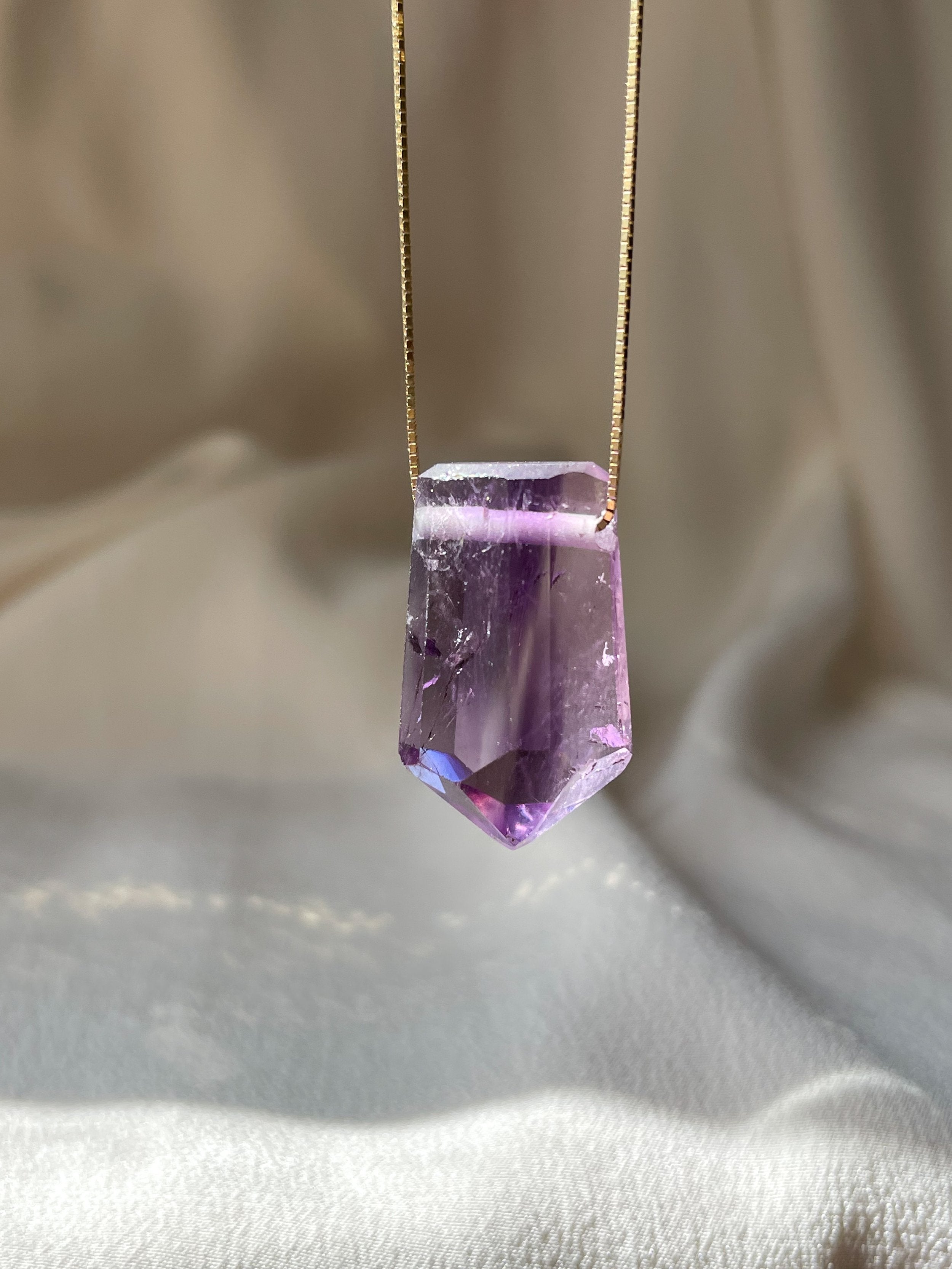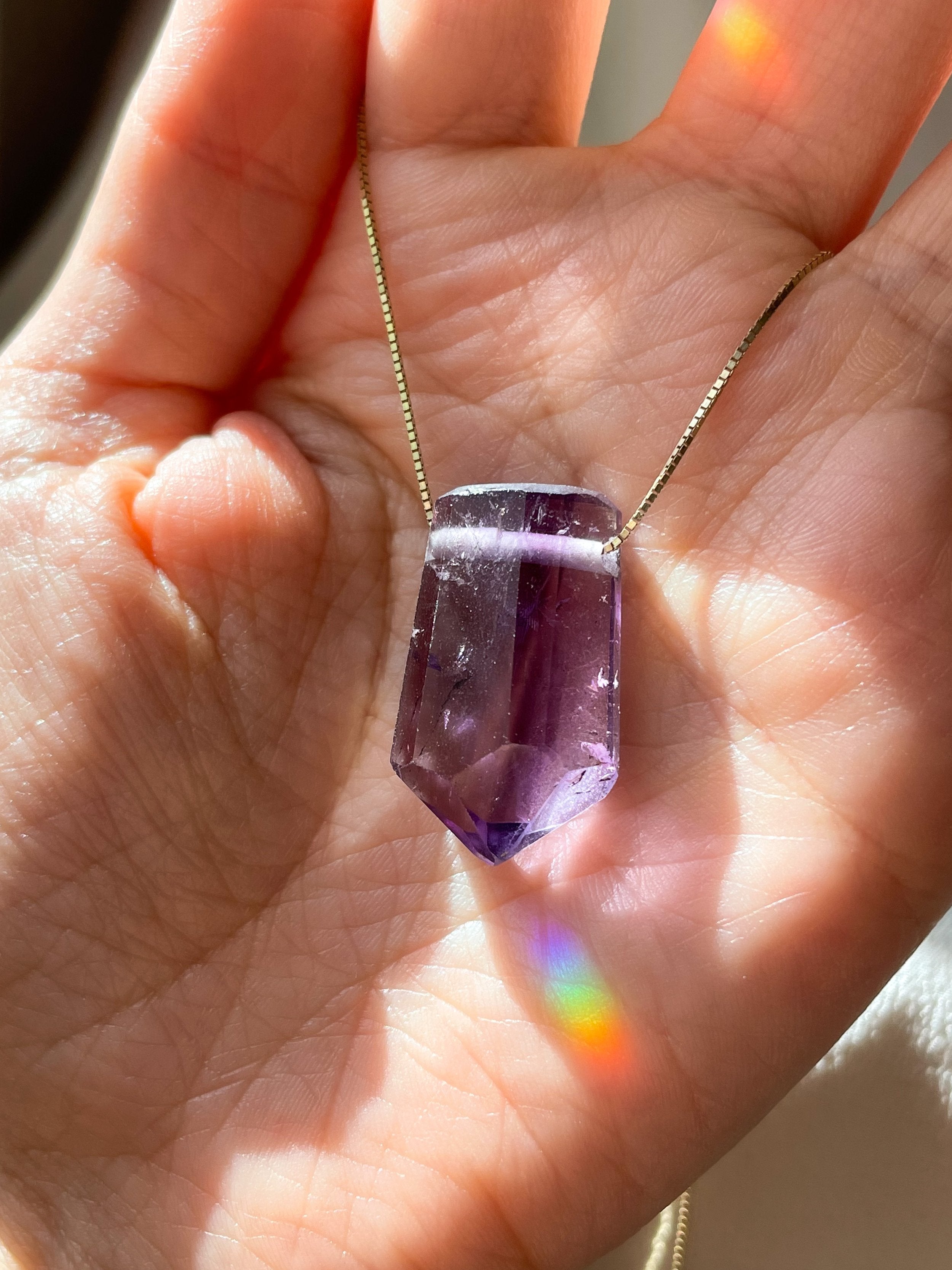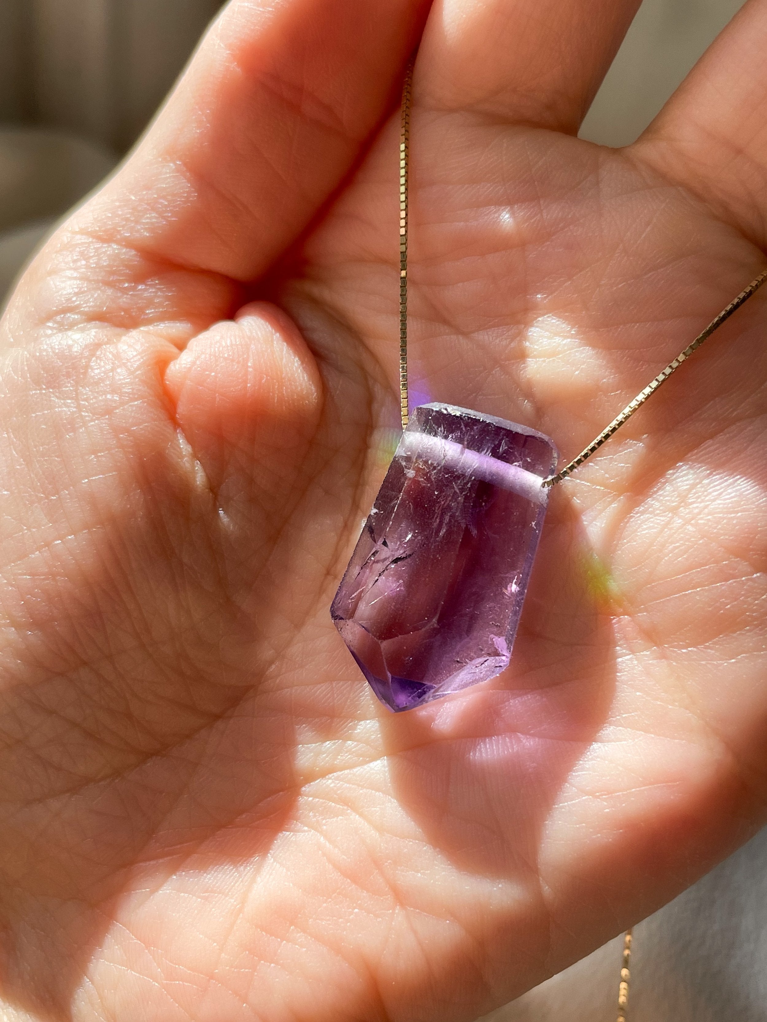 *Please note: Amethyst is considered a photosensitive stone, which means it is sensitive to light - over time, if it is in direct sunlight for extra prolonged periods of time, its color can fade. I recommend alternating wearing this inside of your shirt / outside of your shirt depending on the day.