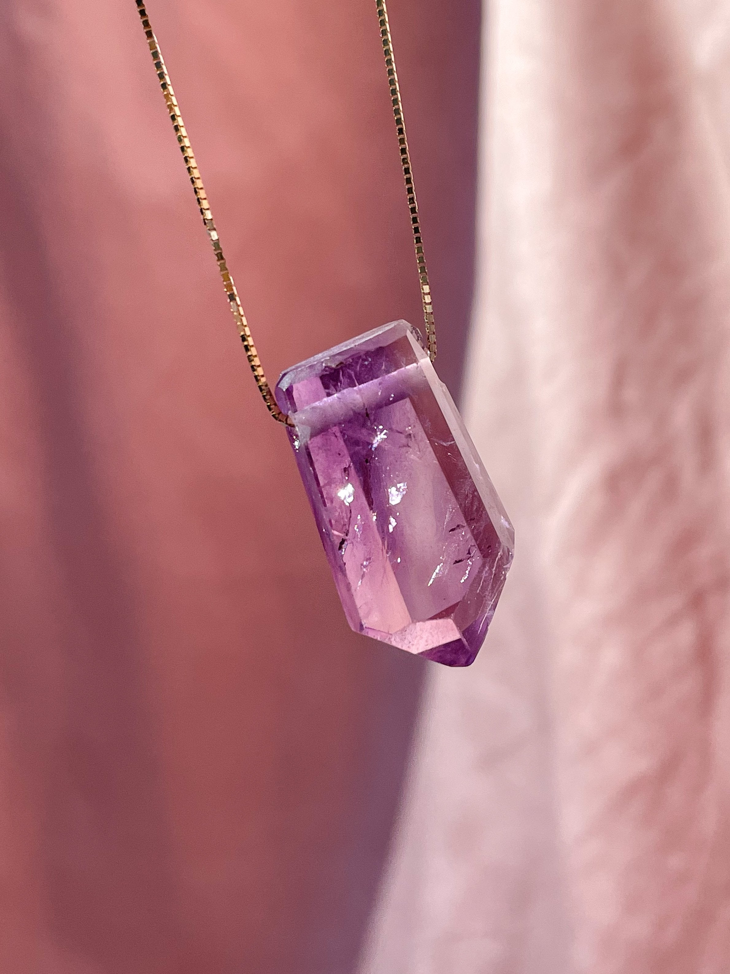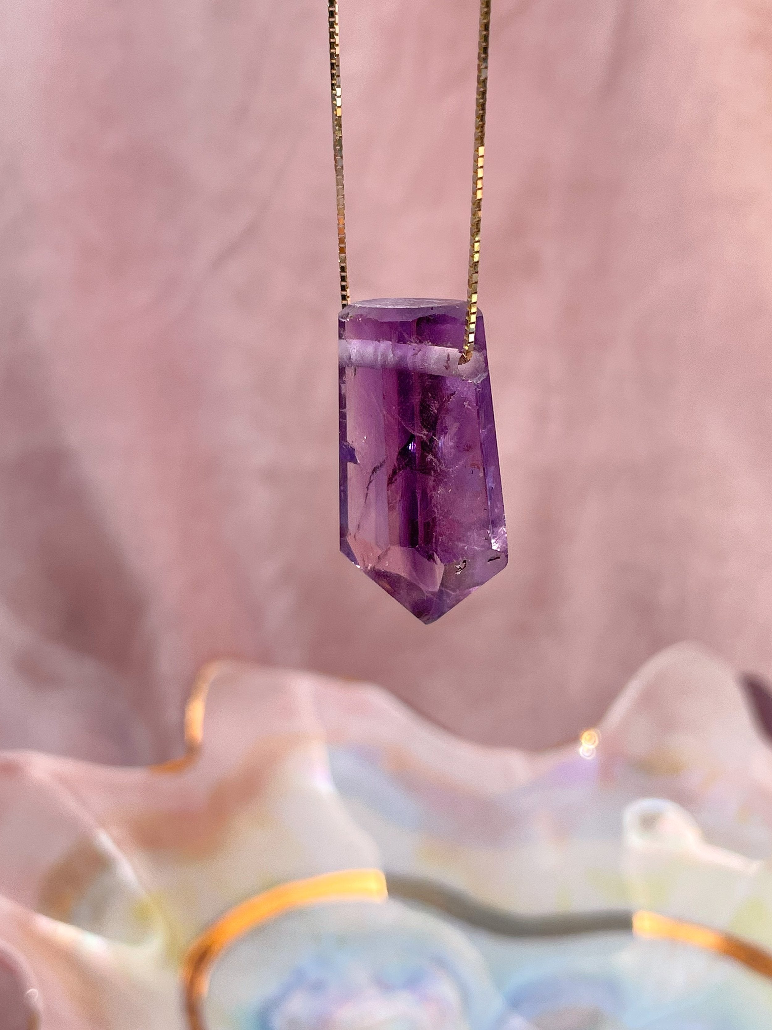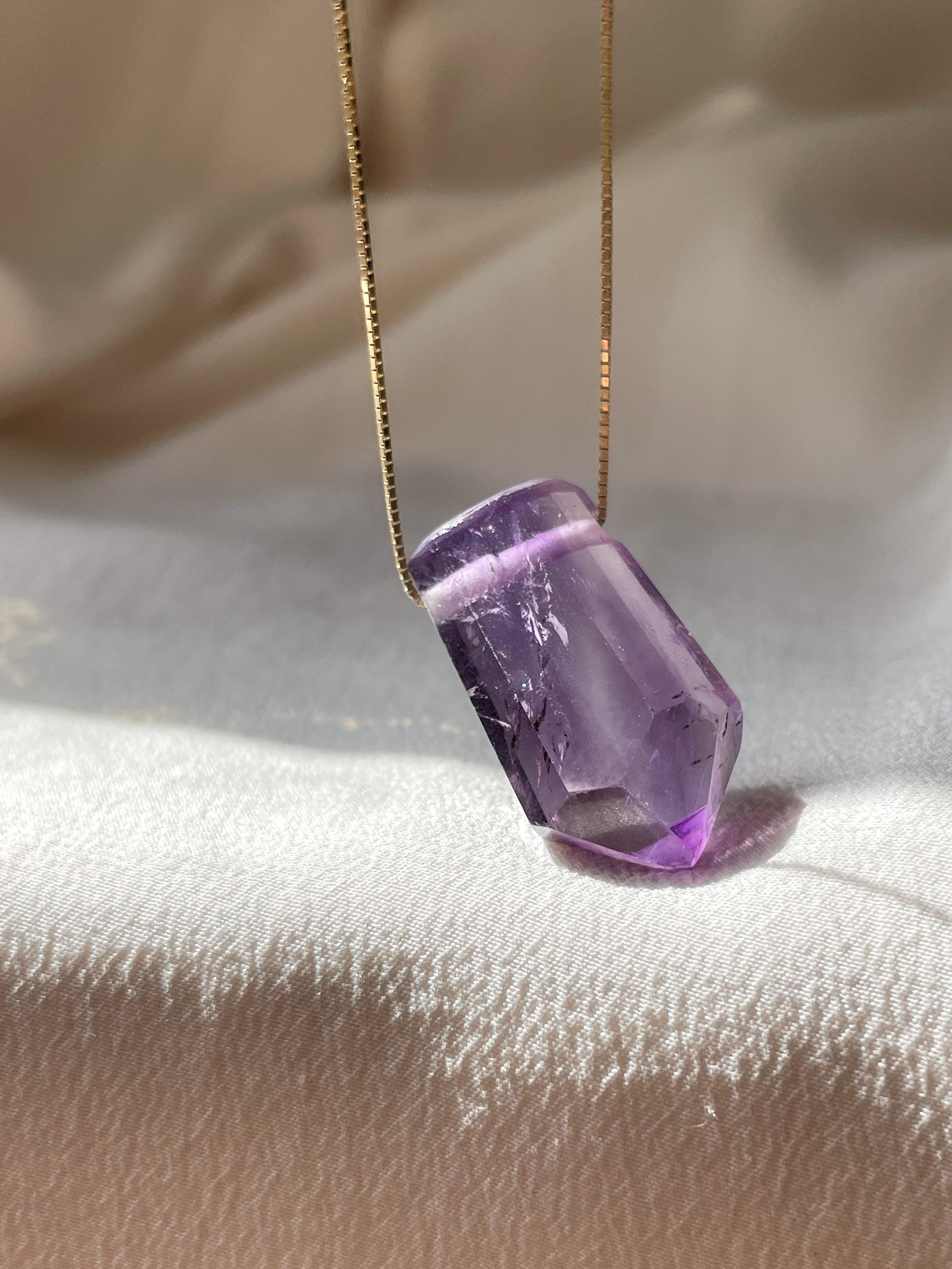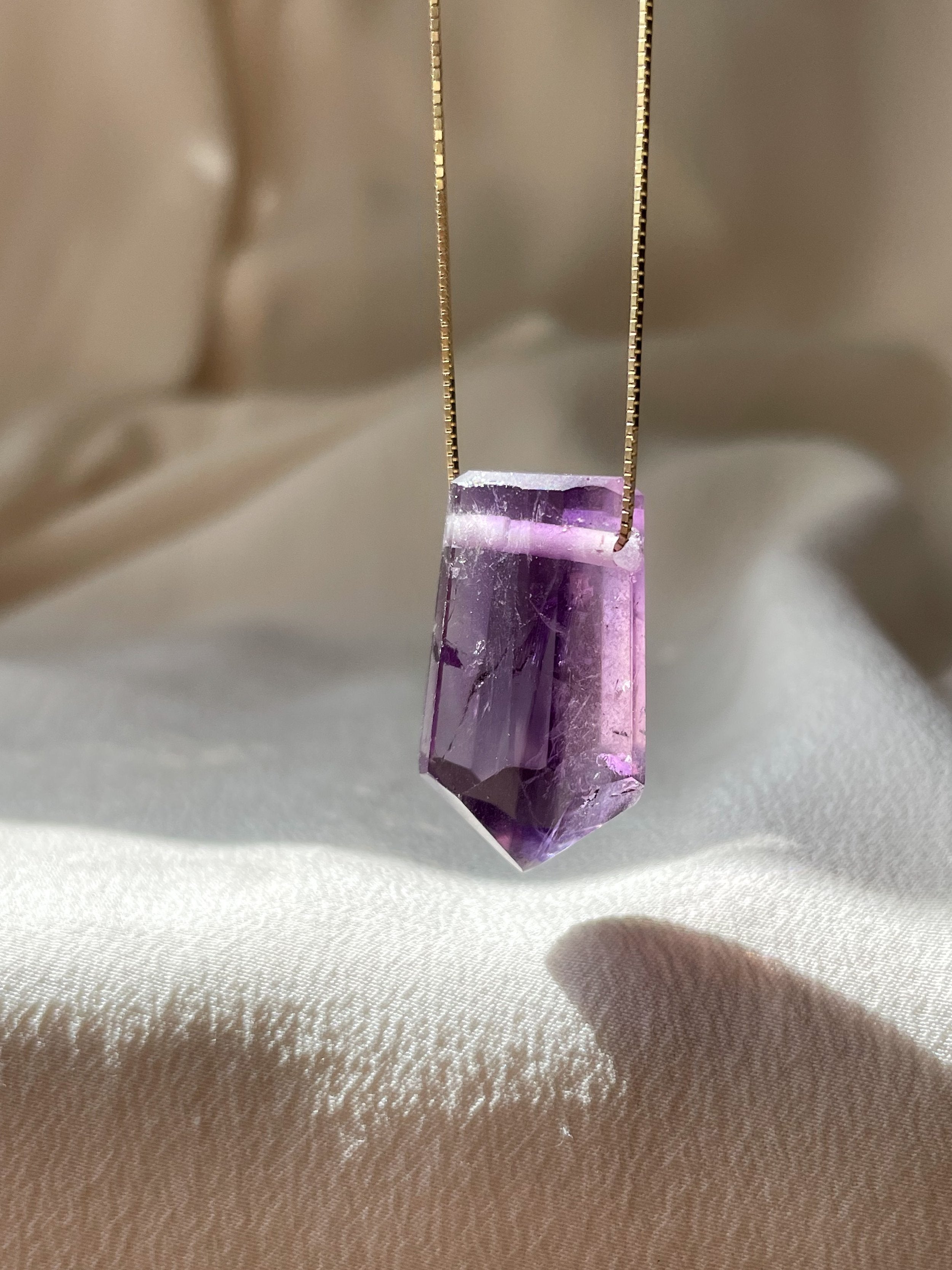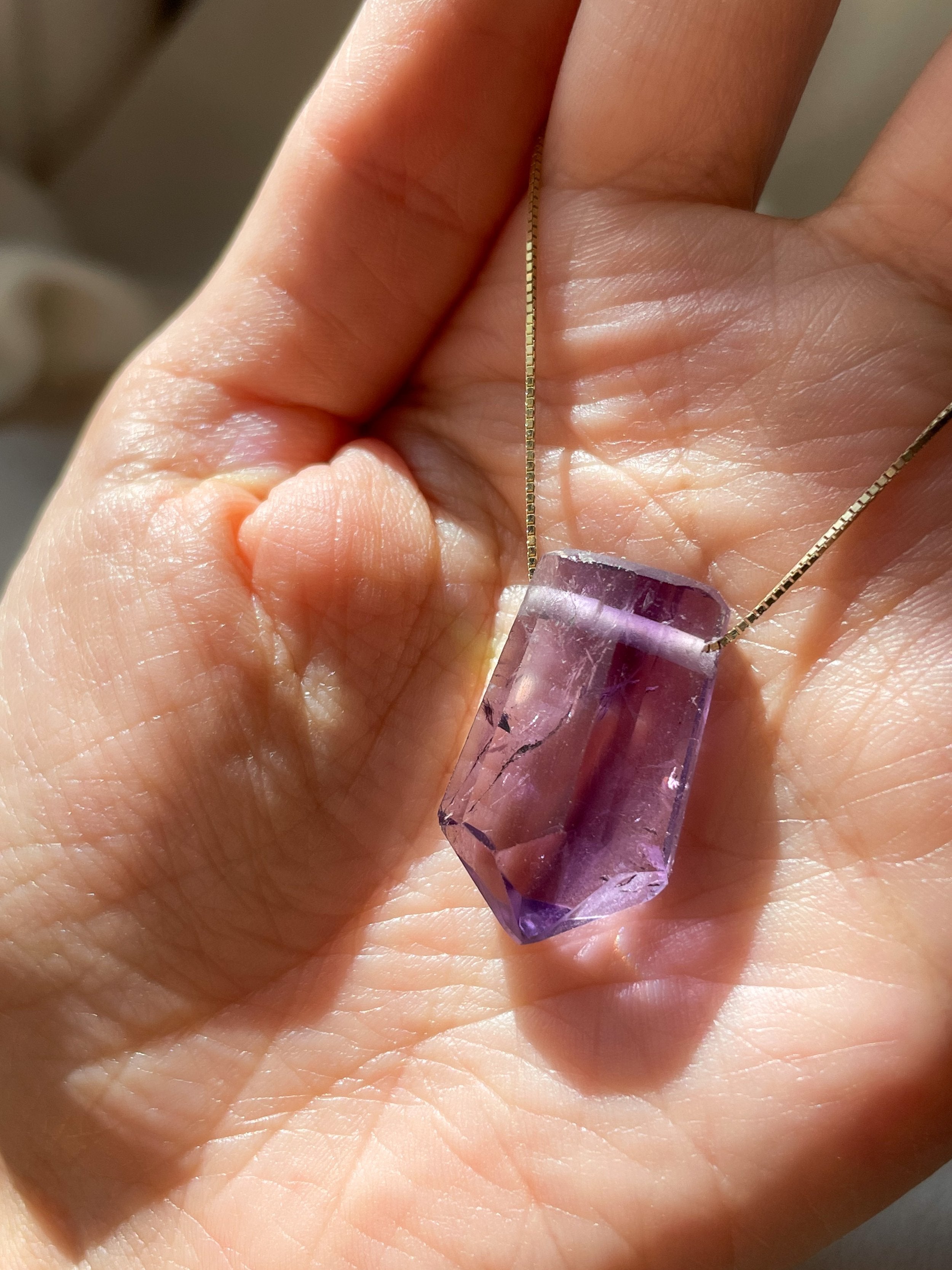 *Please note: Amethyst is considered a photosensitive stone, which means it is sensitive to light - over time, if it is in direct sunlight for extra prolonged periods of time, its color can fade. I recommend alternating wearing this inside of your shirt / outside of your shirt depending on the day.