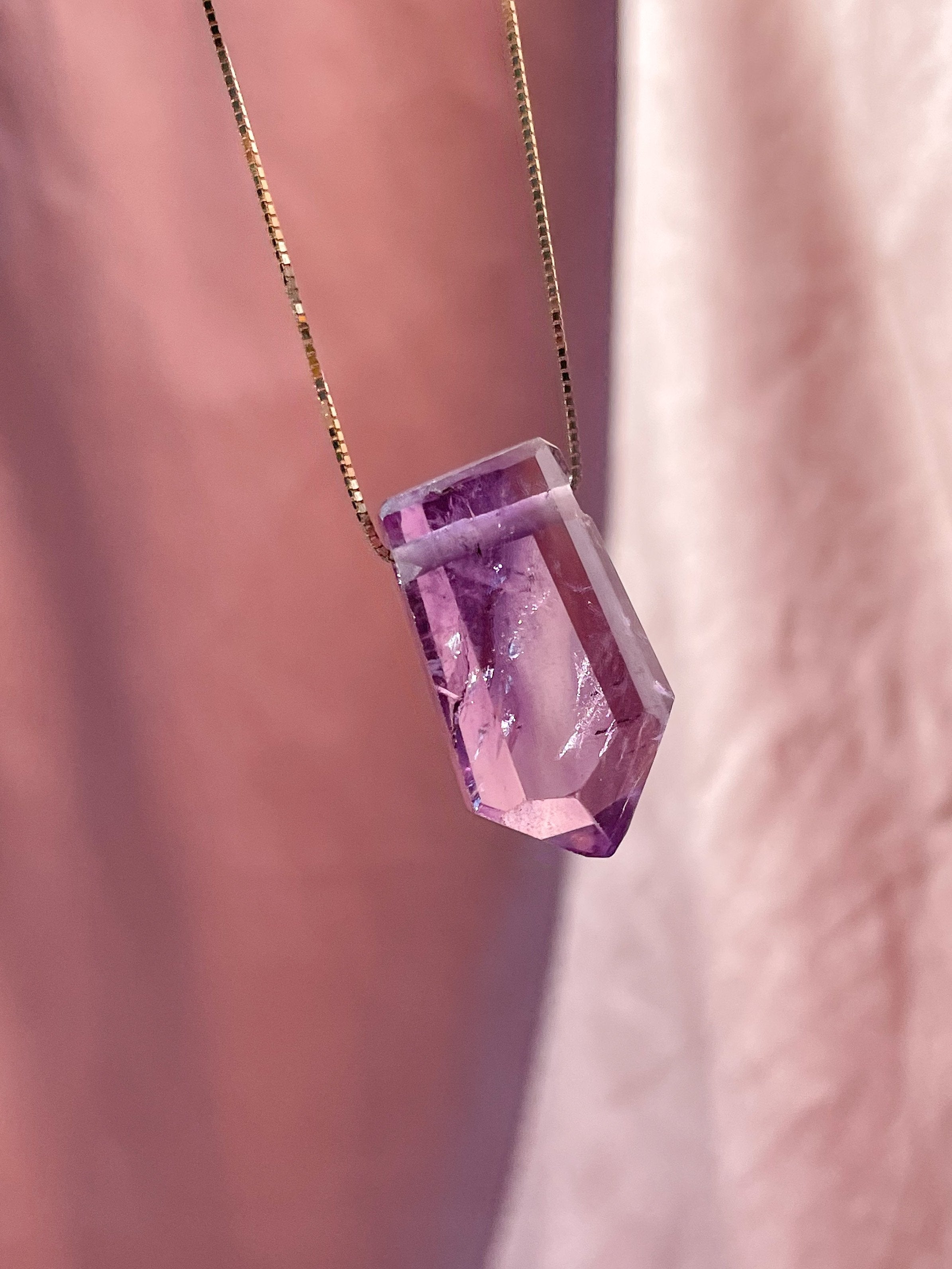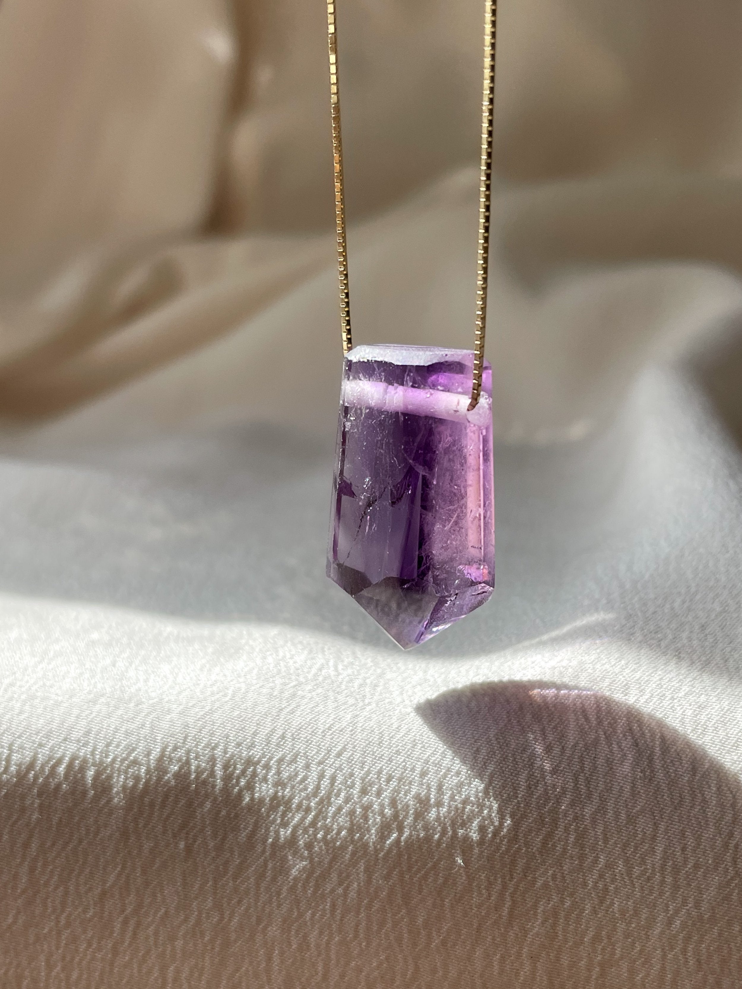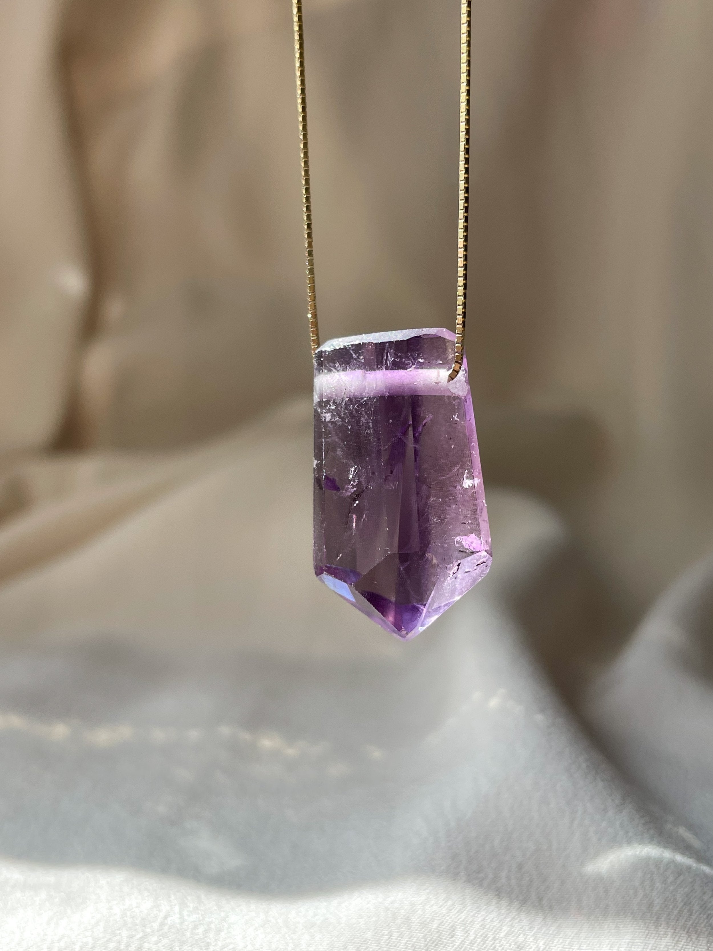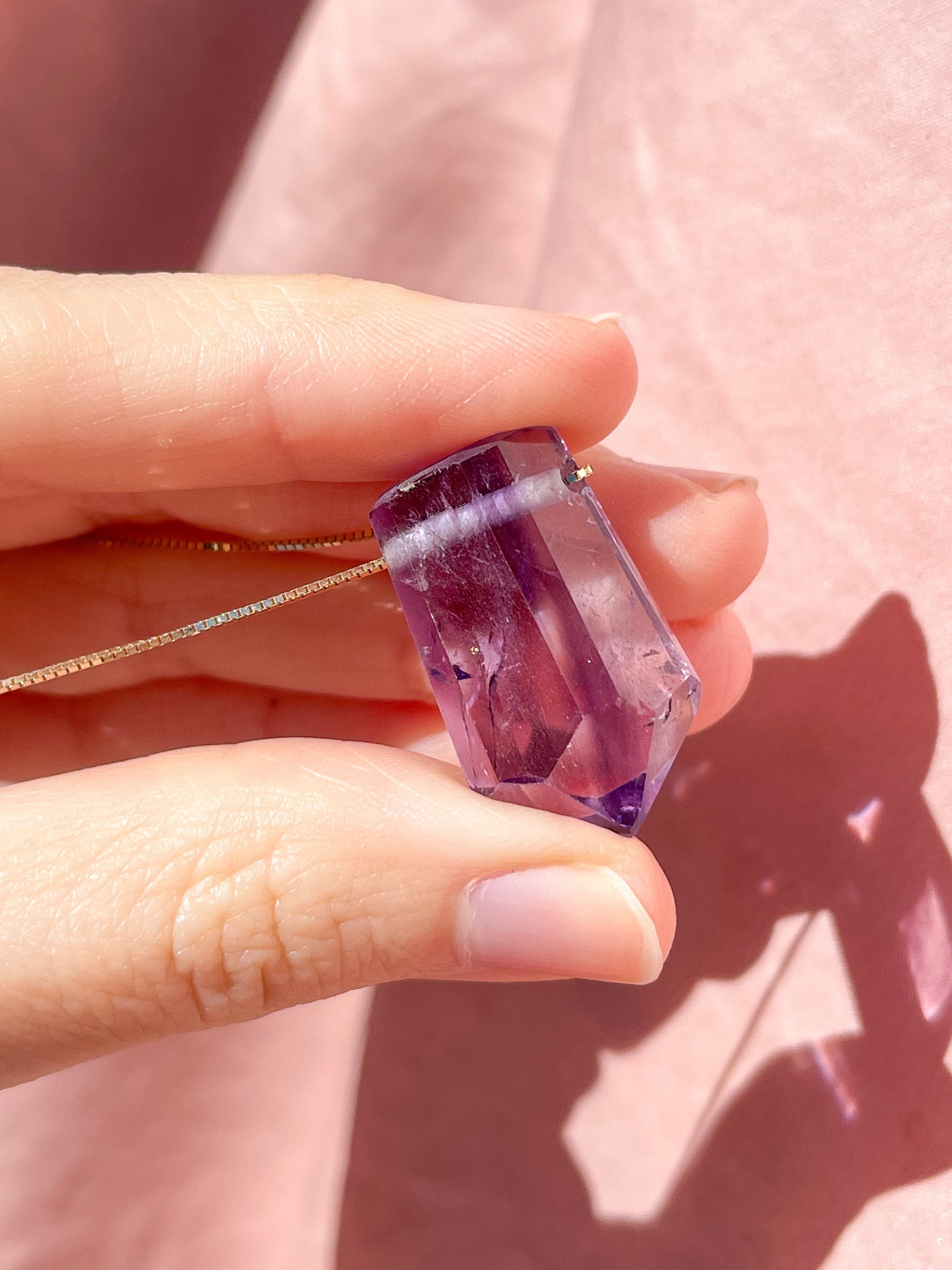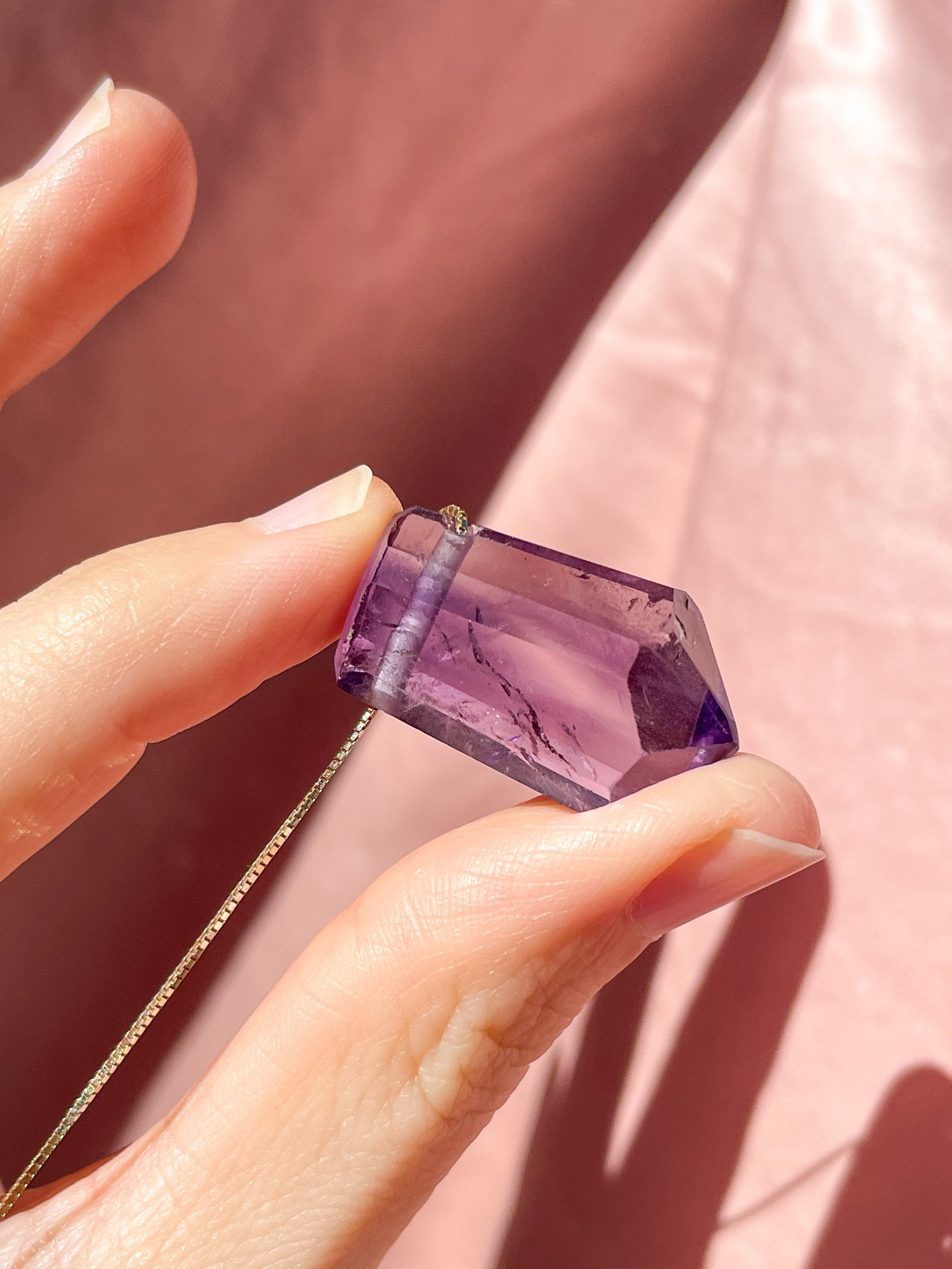 *Please note: Amethyst is considered a photosensitive stone, which means it is sensitive to light - over time, if it is in direct sunlight for extra prolonged periods of time, its color can fade. I recommend alternating wearing this inside of your shirt / outside of your shirt depending on the day.