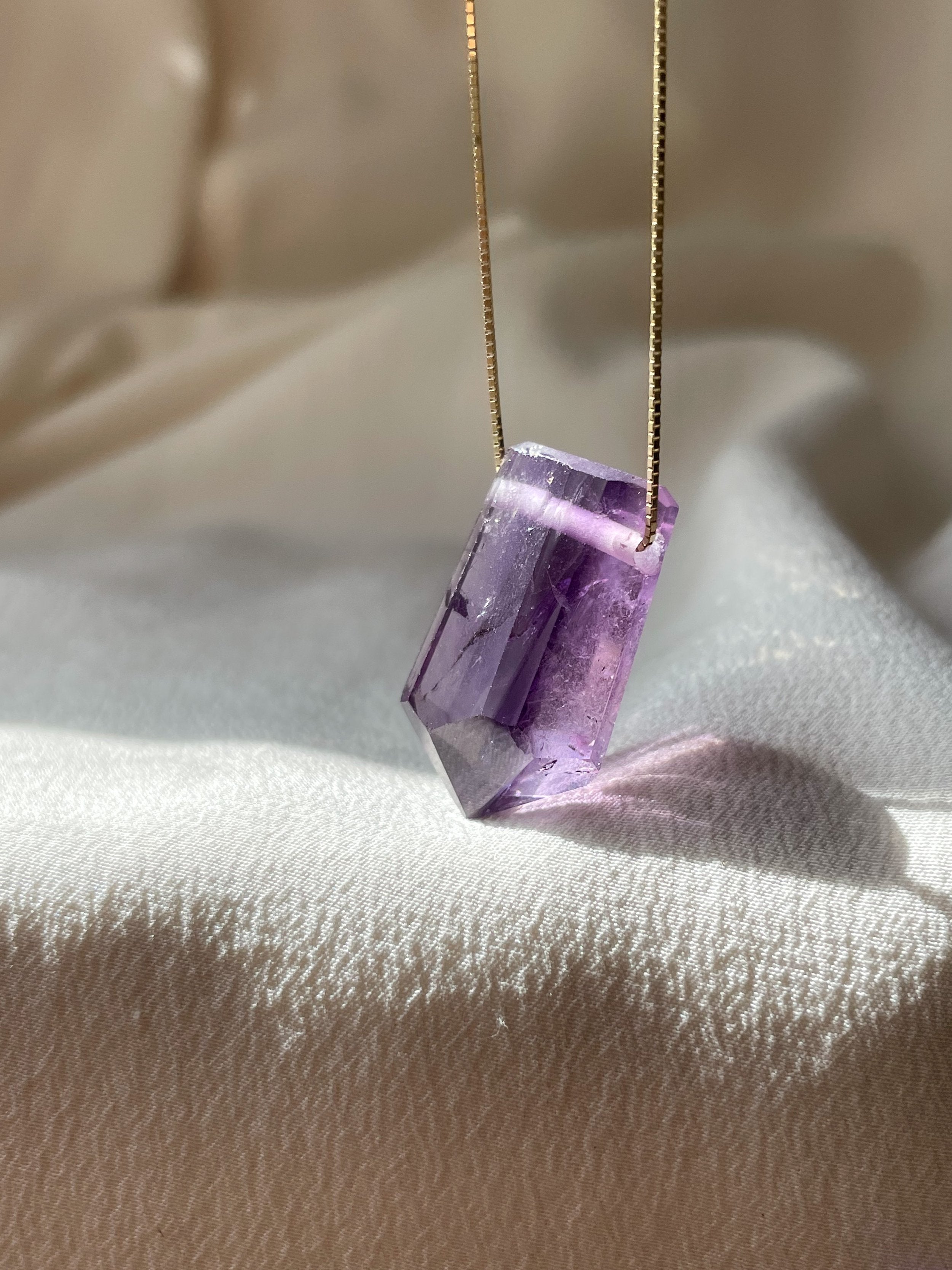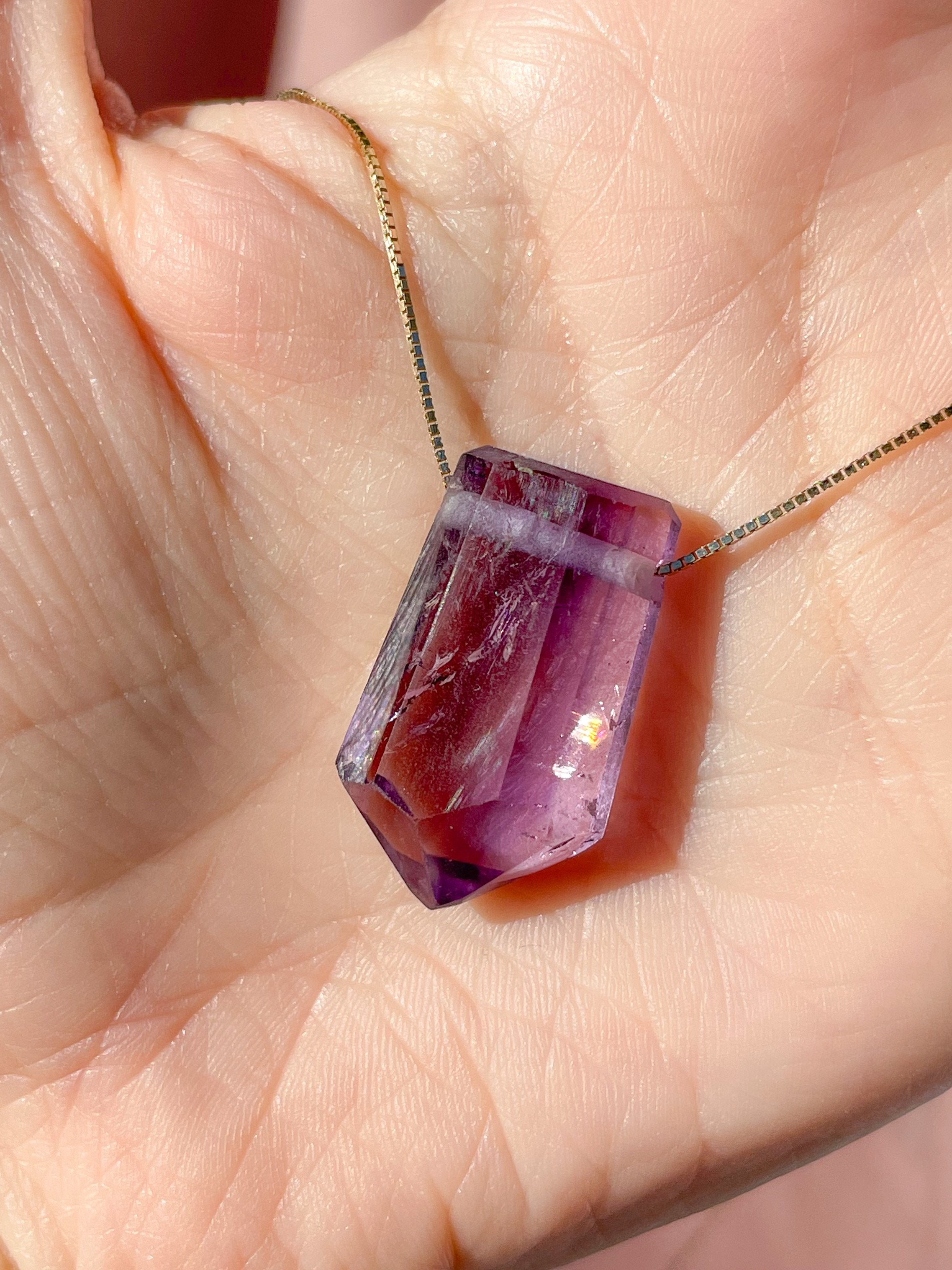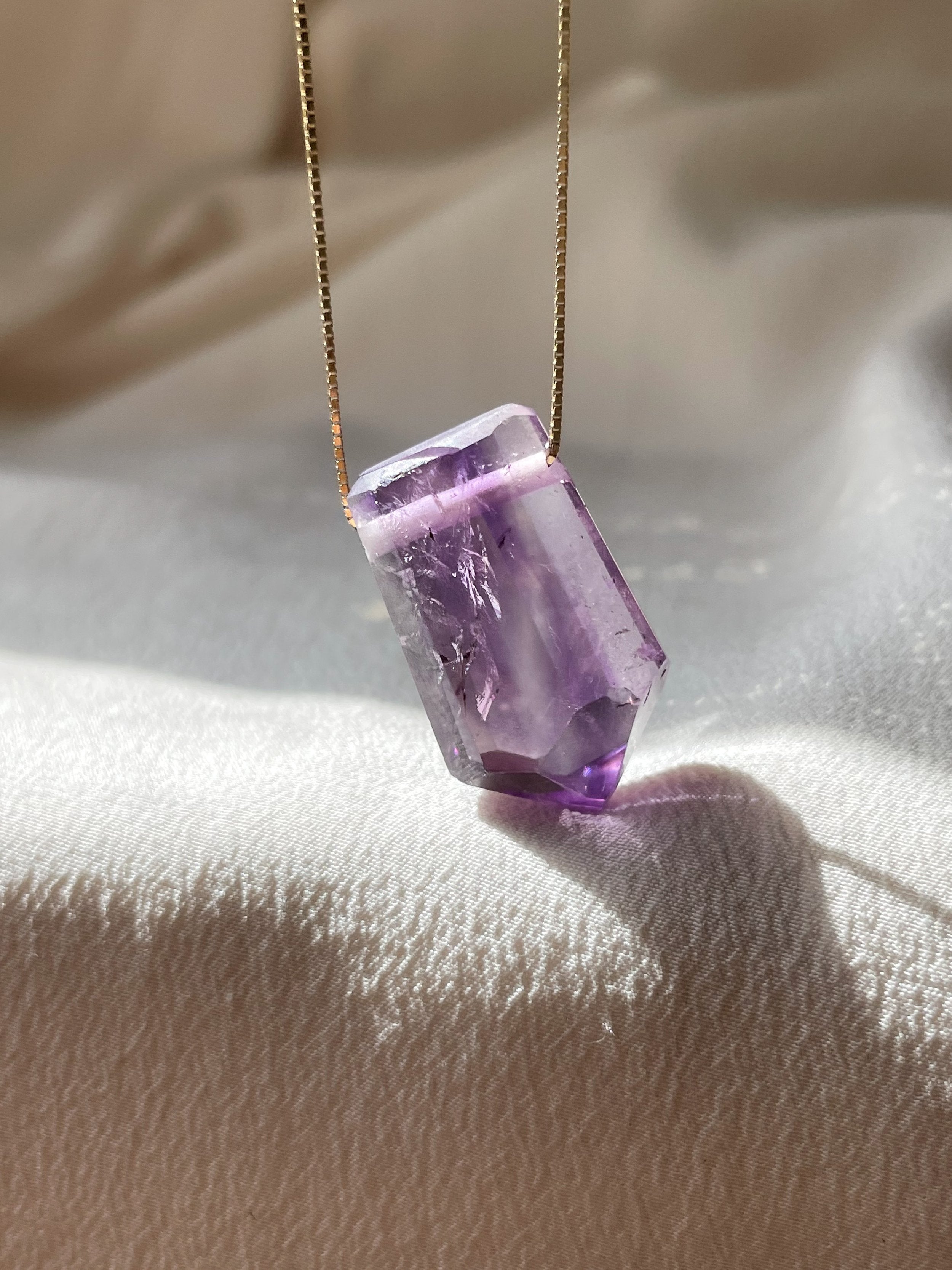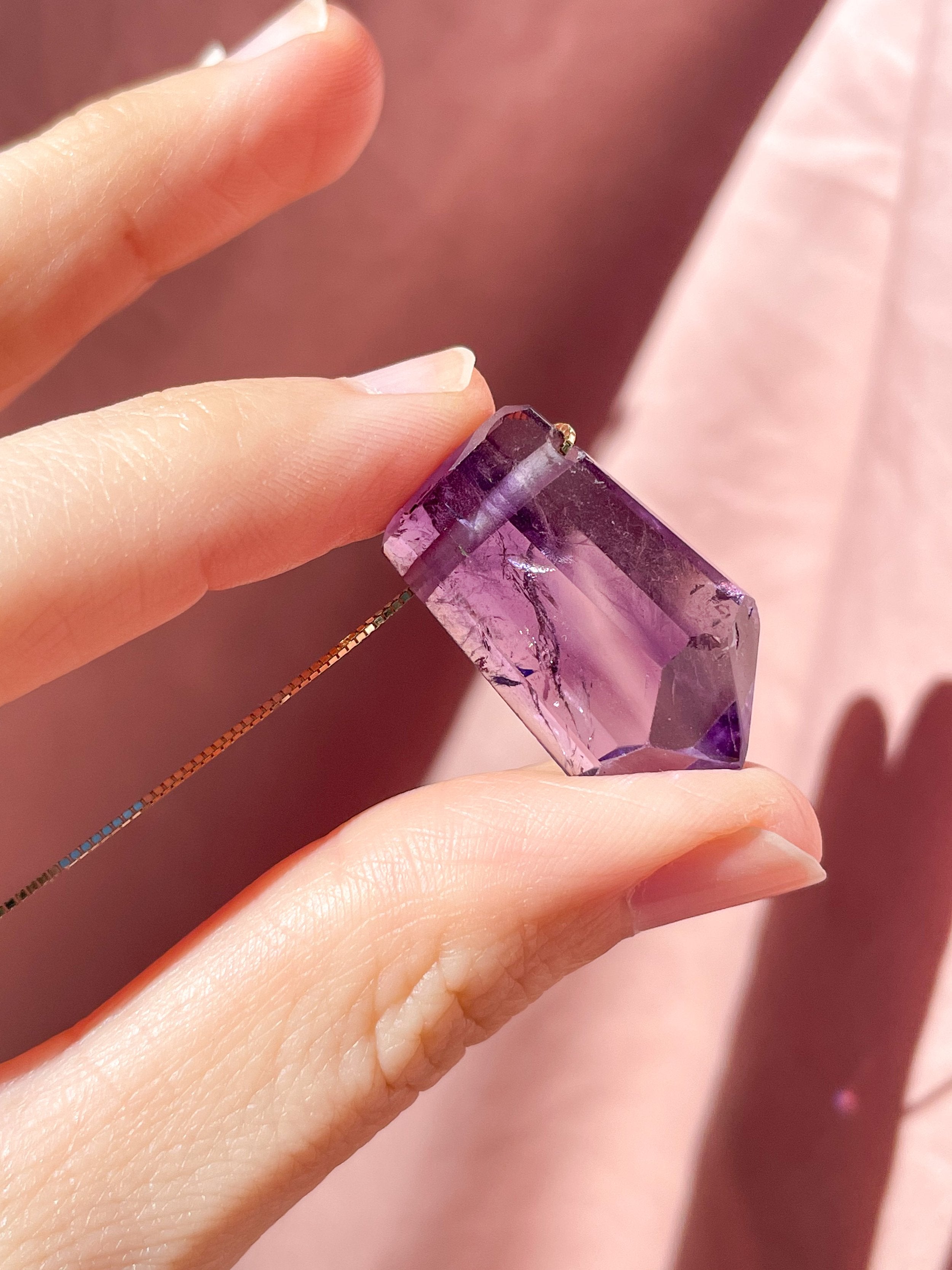 *Please note: Amethyst is considered a photosensitive stone, which means it is sensitive to light - over time, if it is in direct sunlight for extra prolonged periods of time, its color can fade. I recommend alternating wearing this inside of your shirt / outside of your shirt depending on the day.