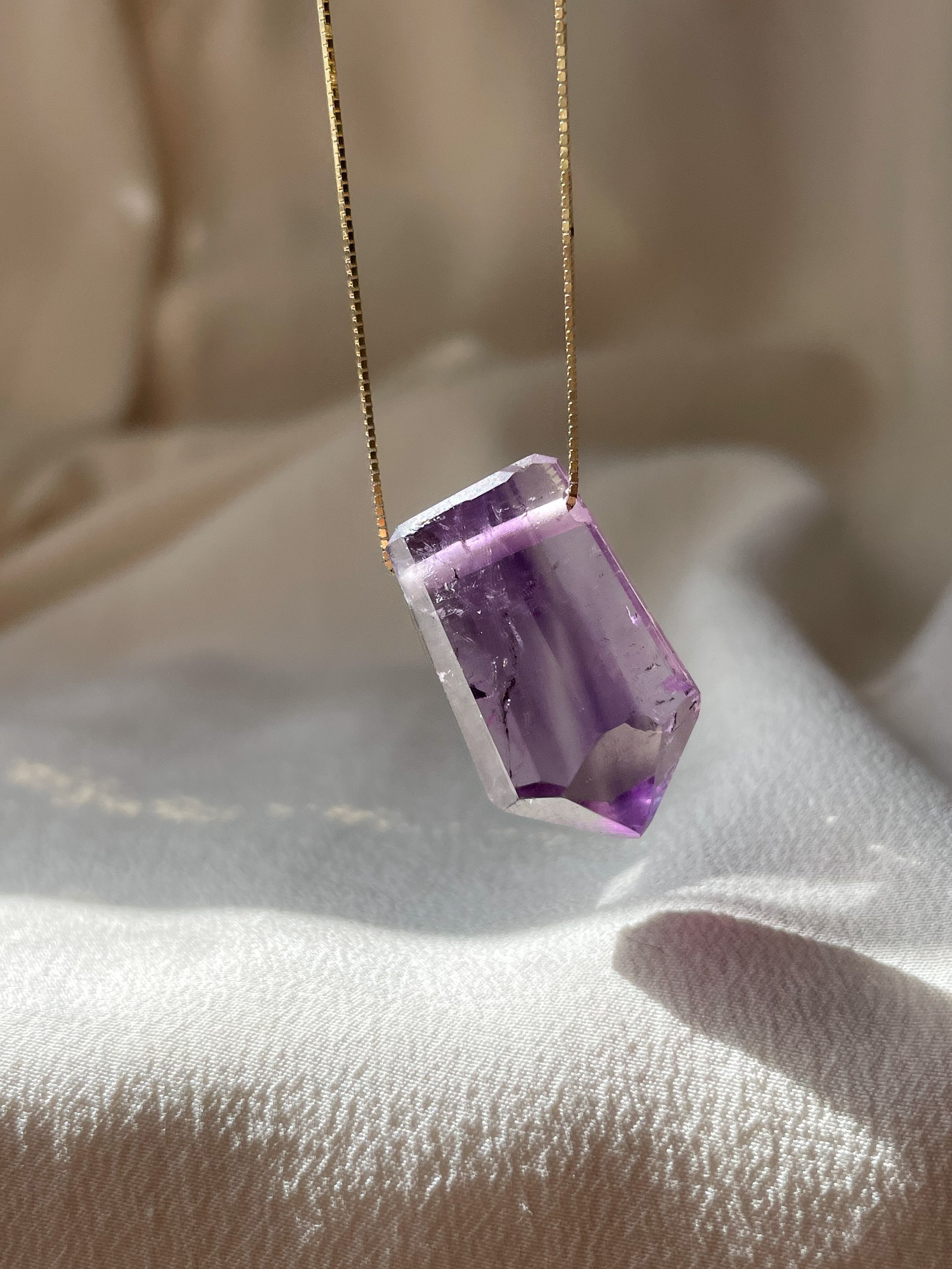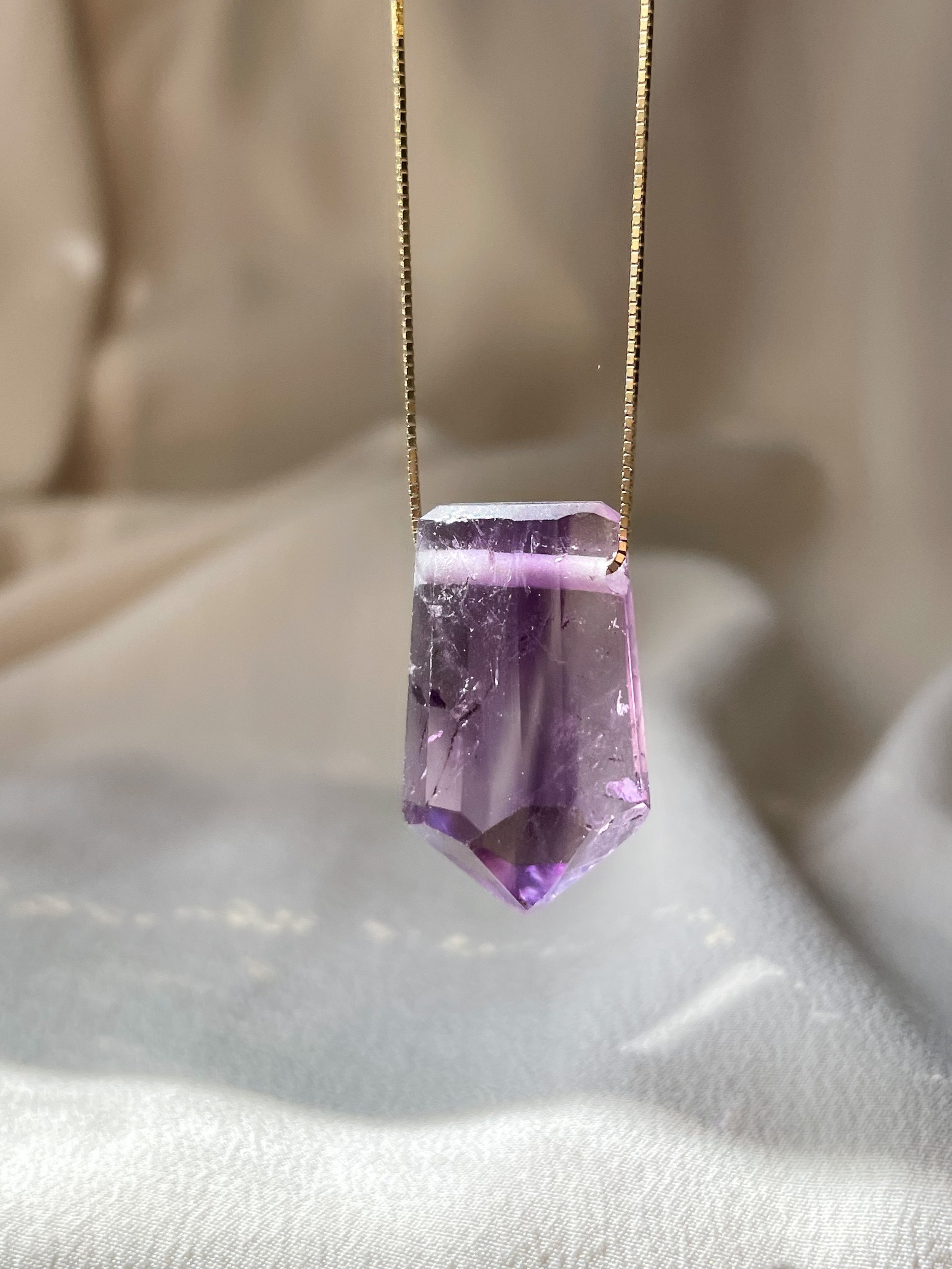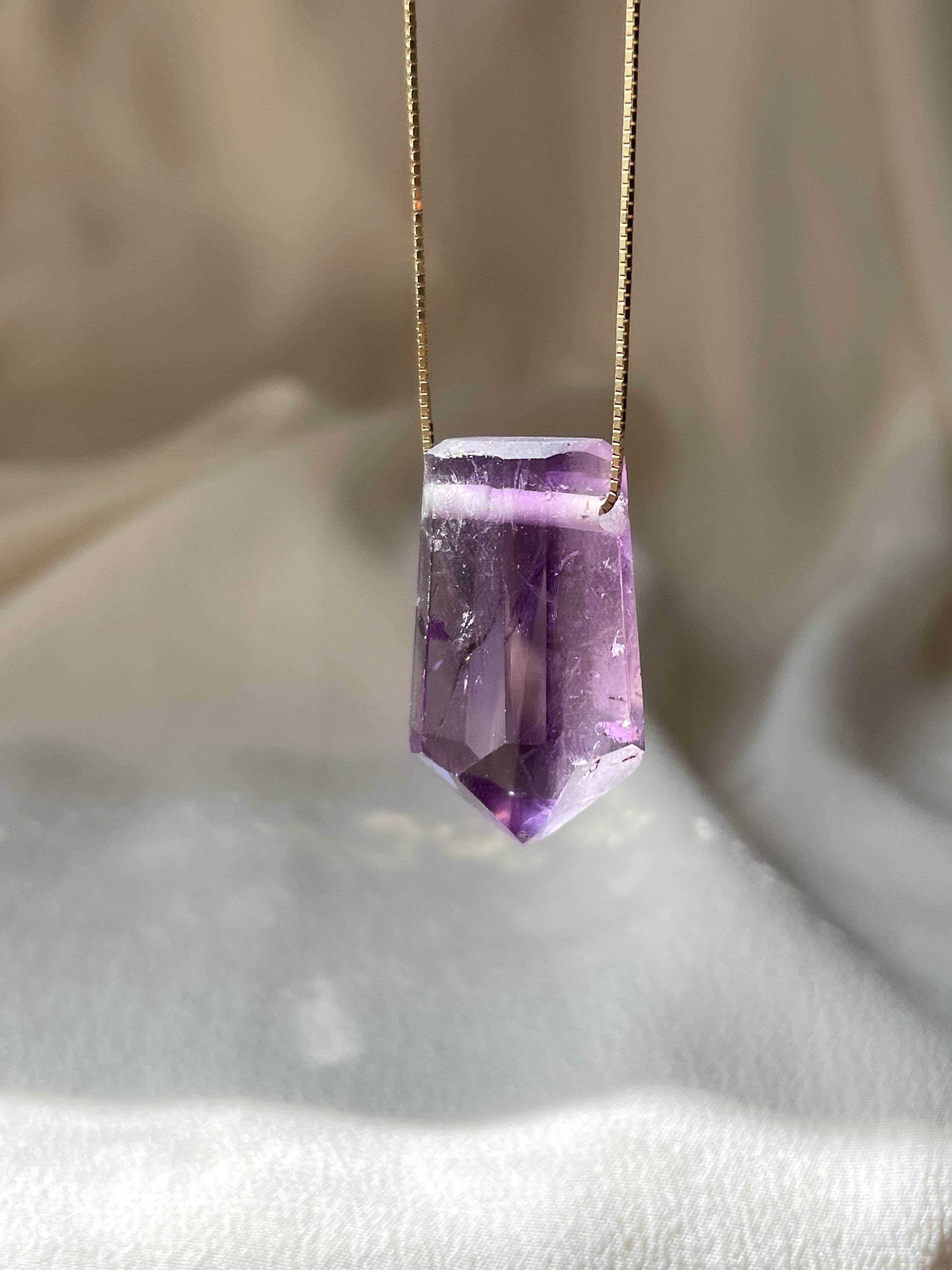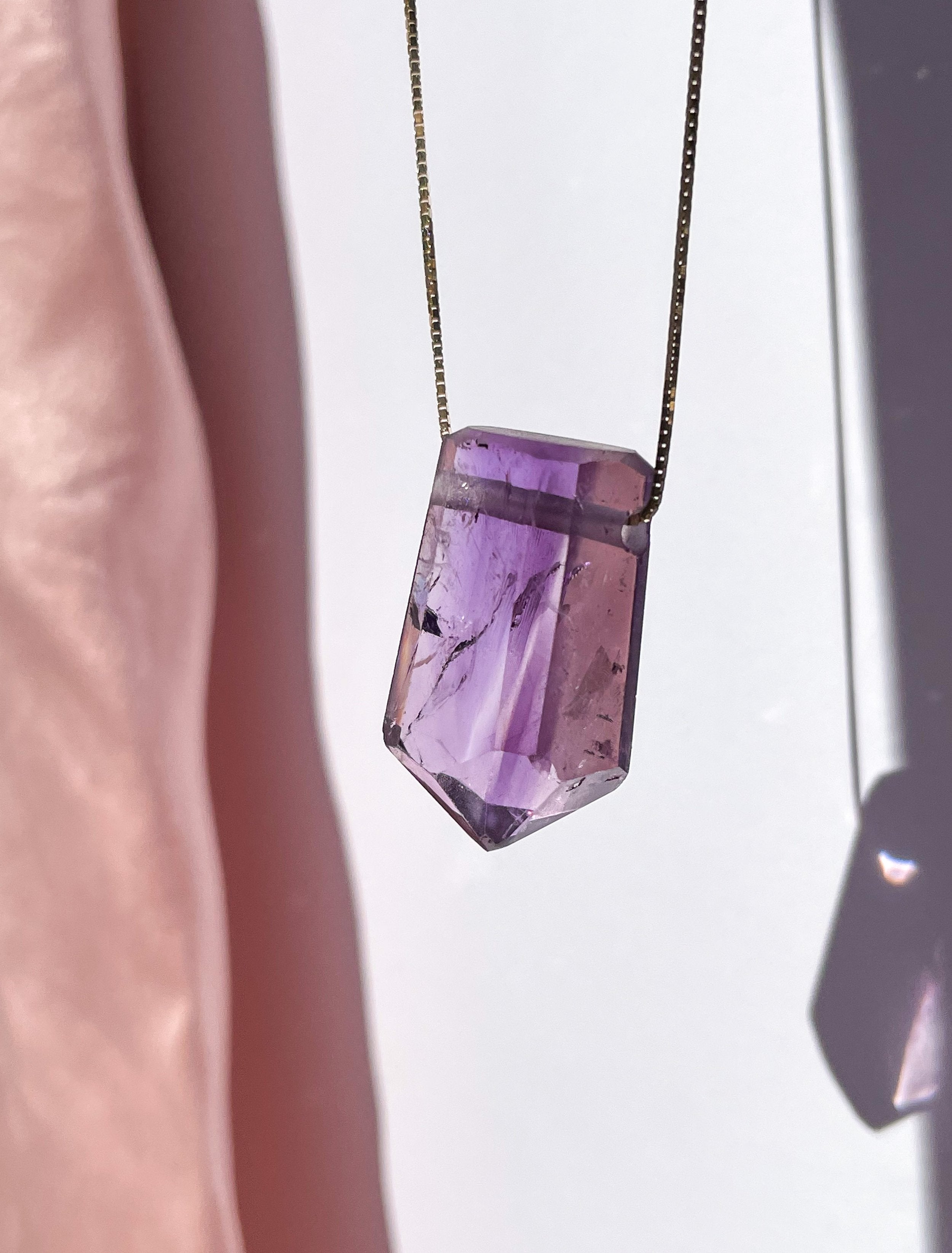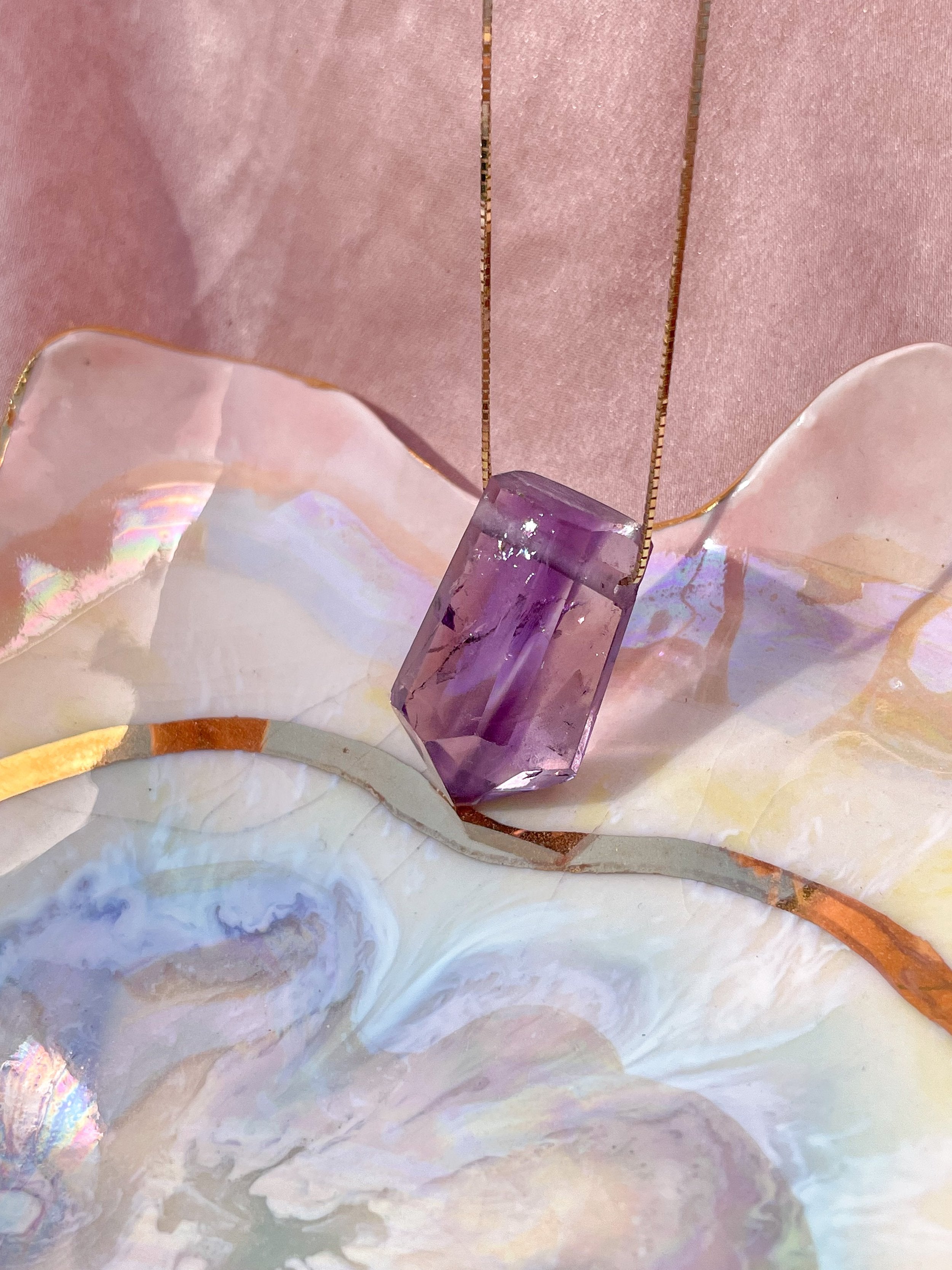 *Please note: Amethyst is considered a photosensitive stone, which means it is sensitive to light - over time, if it is in direct sunlight for extra prolonged periods of time, its color can fade. I recommend alternating wearing this inside of your shirt / outside of your shirt depending on the day.
