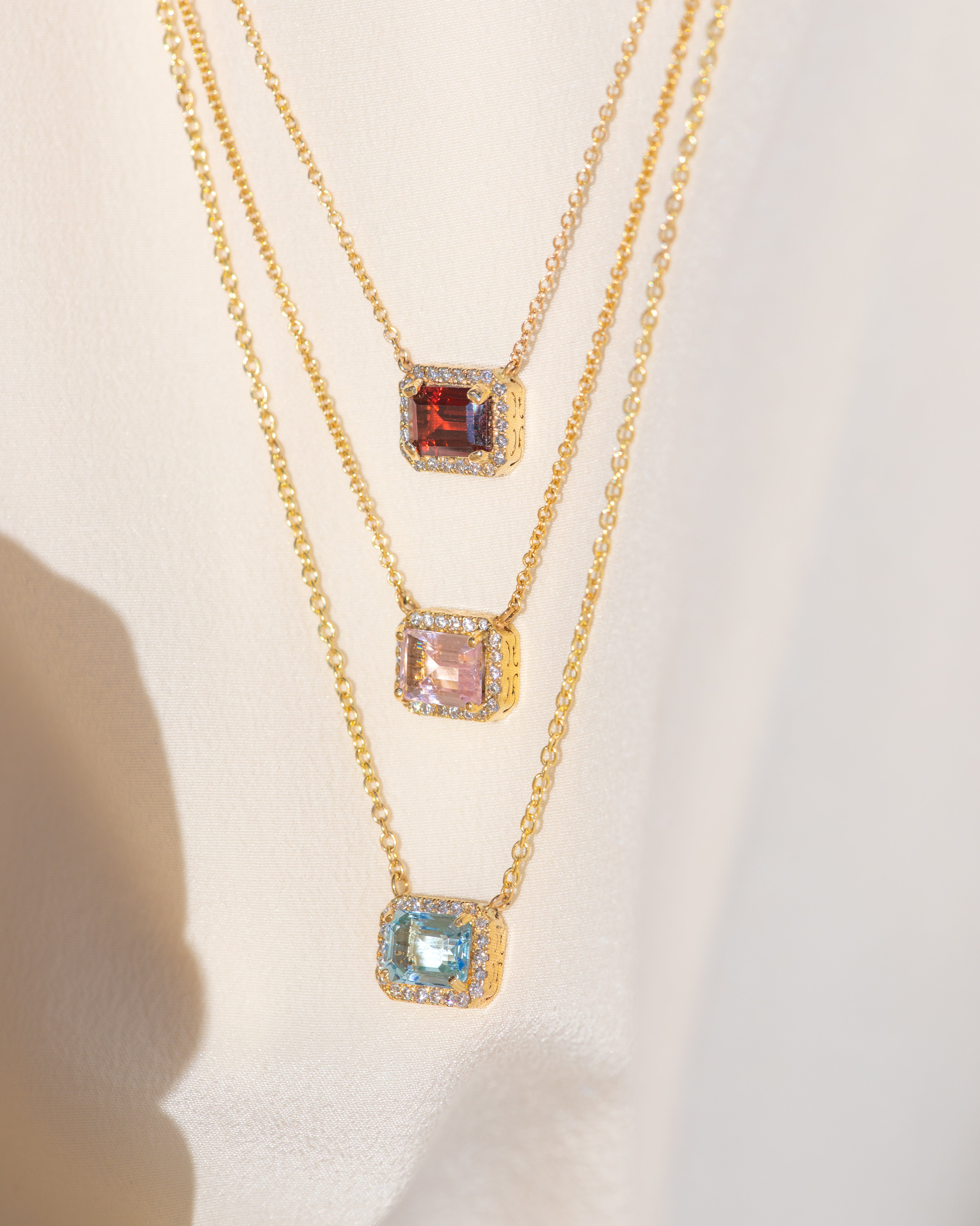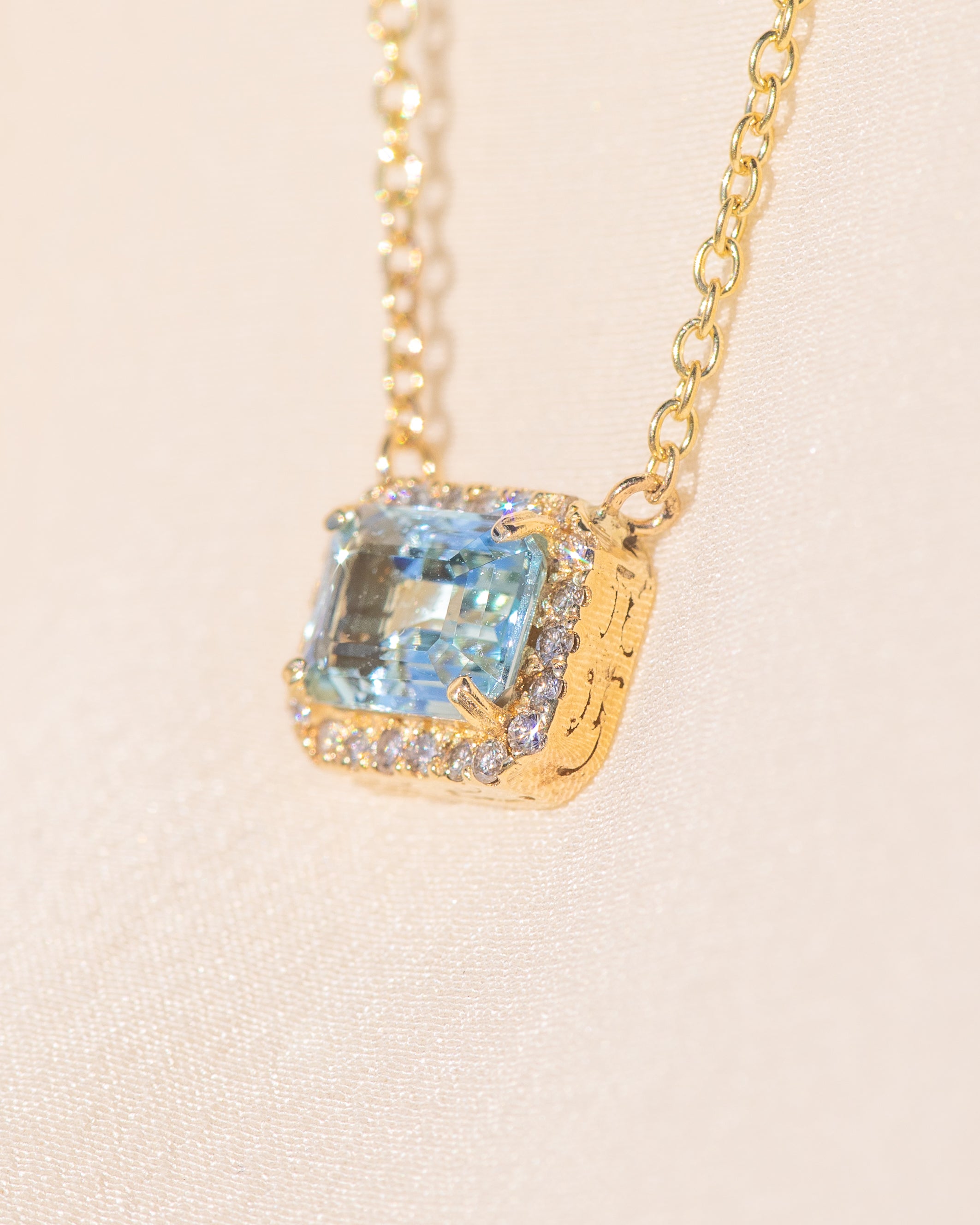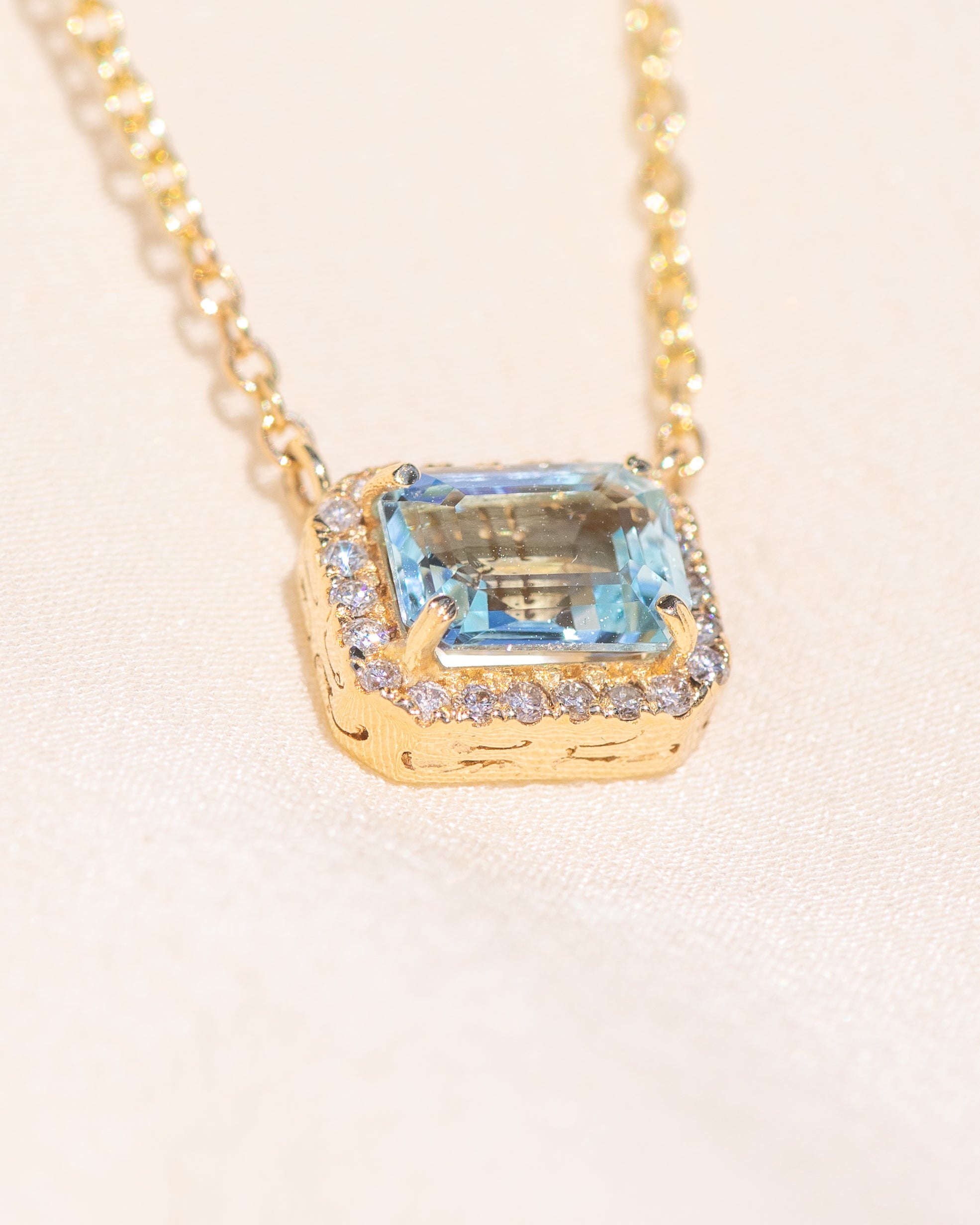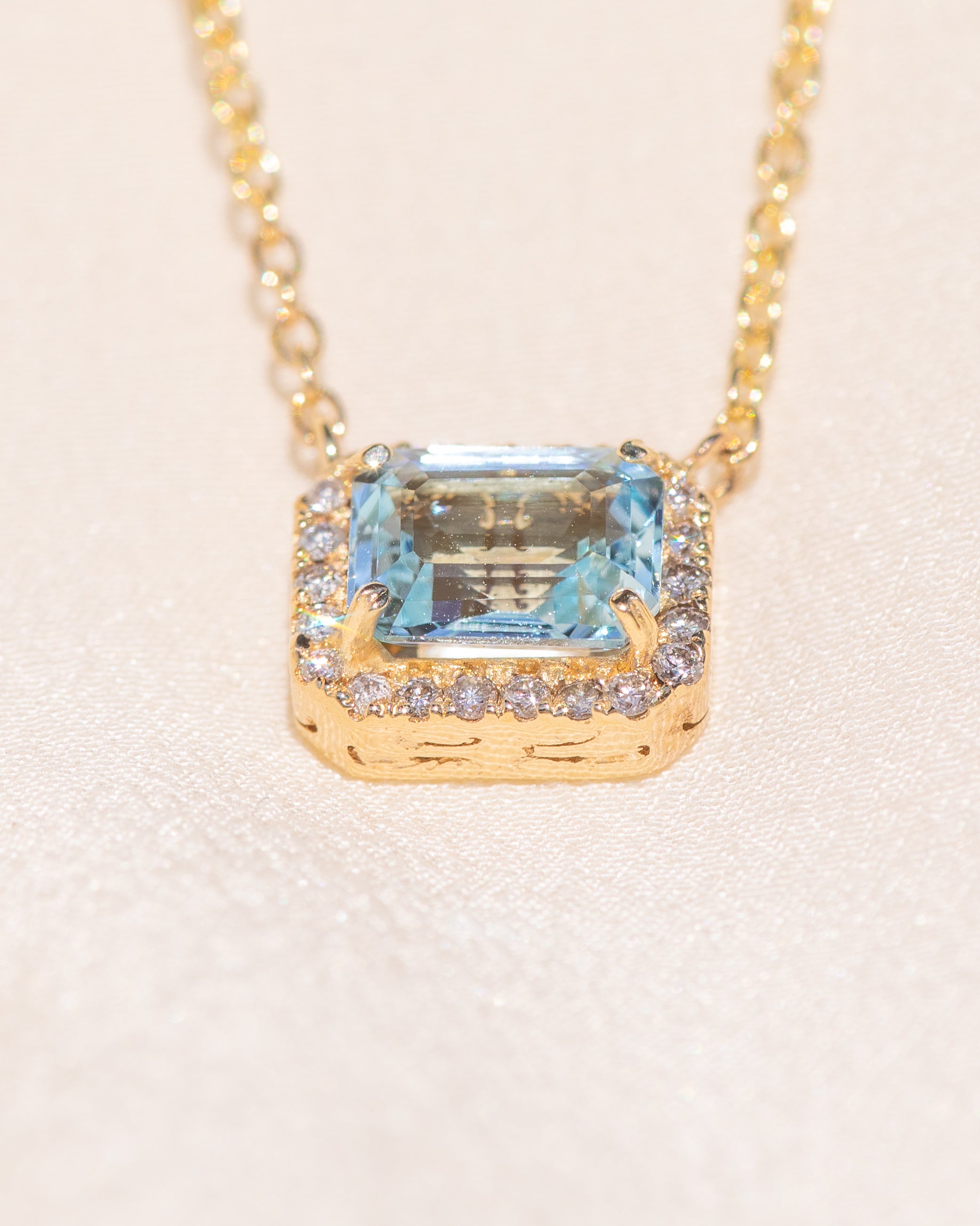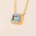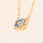 Features a stunning 8x6mm Aquamarine surrounded by a halo of White Diamonds, cast in 14k yellow gold. Set on a 16" delicate oval chain - can be made shorter, please reach out for desired length adjustments.