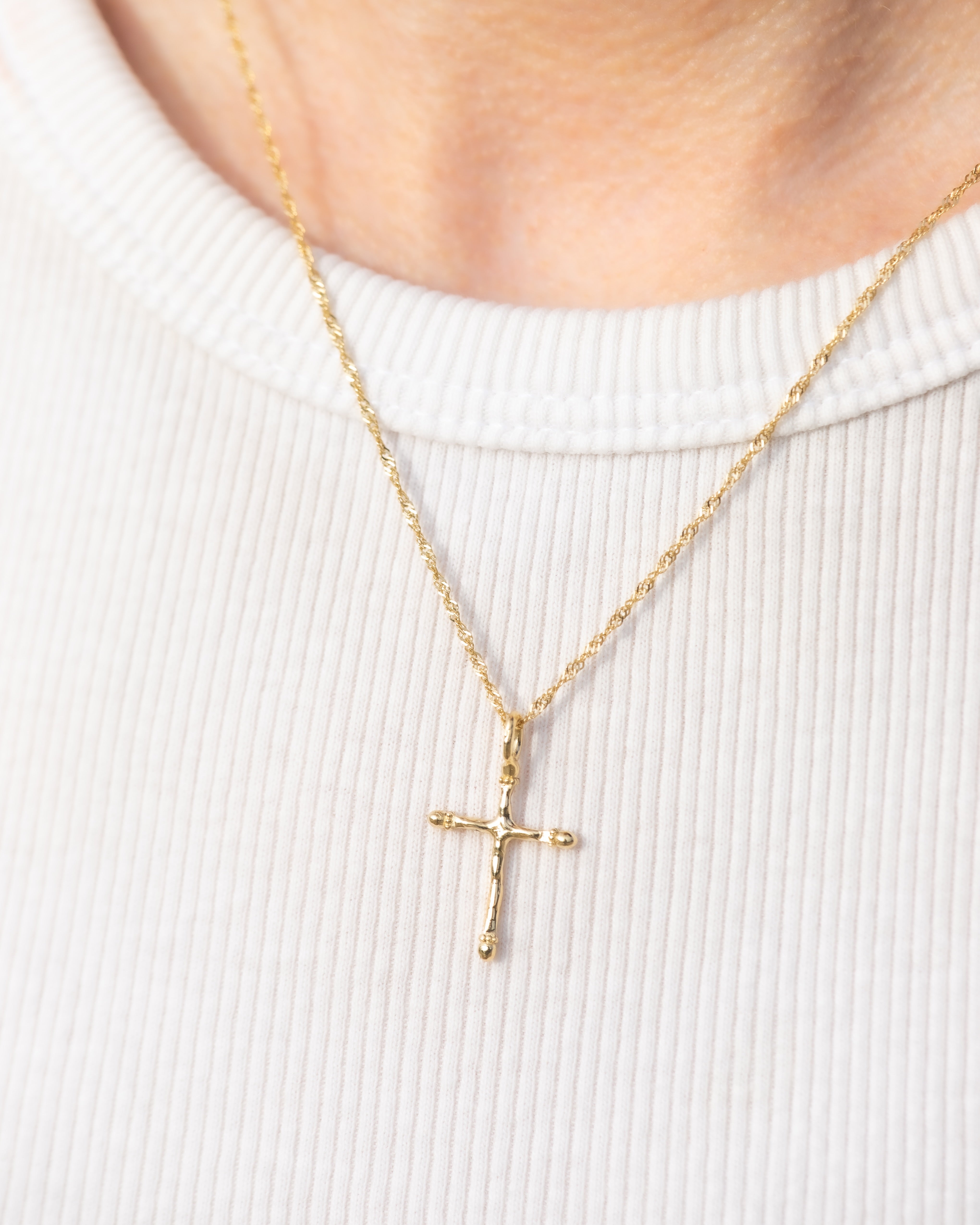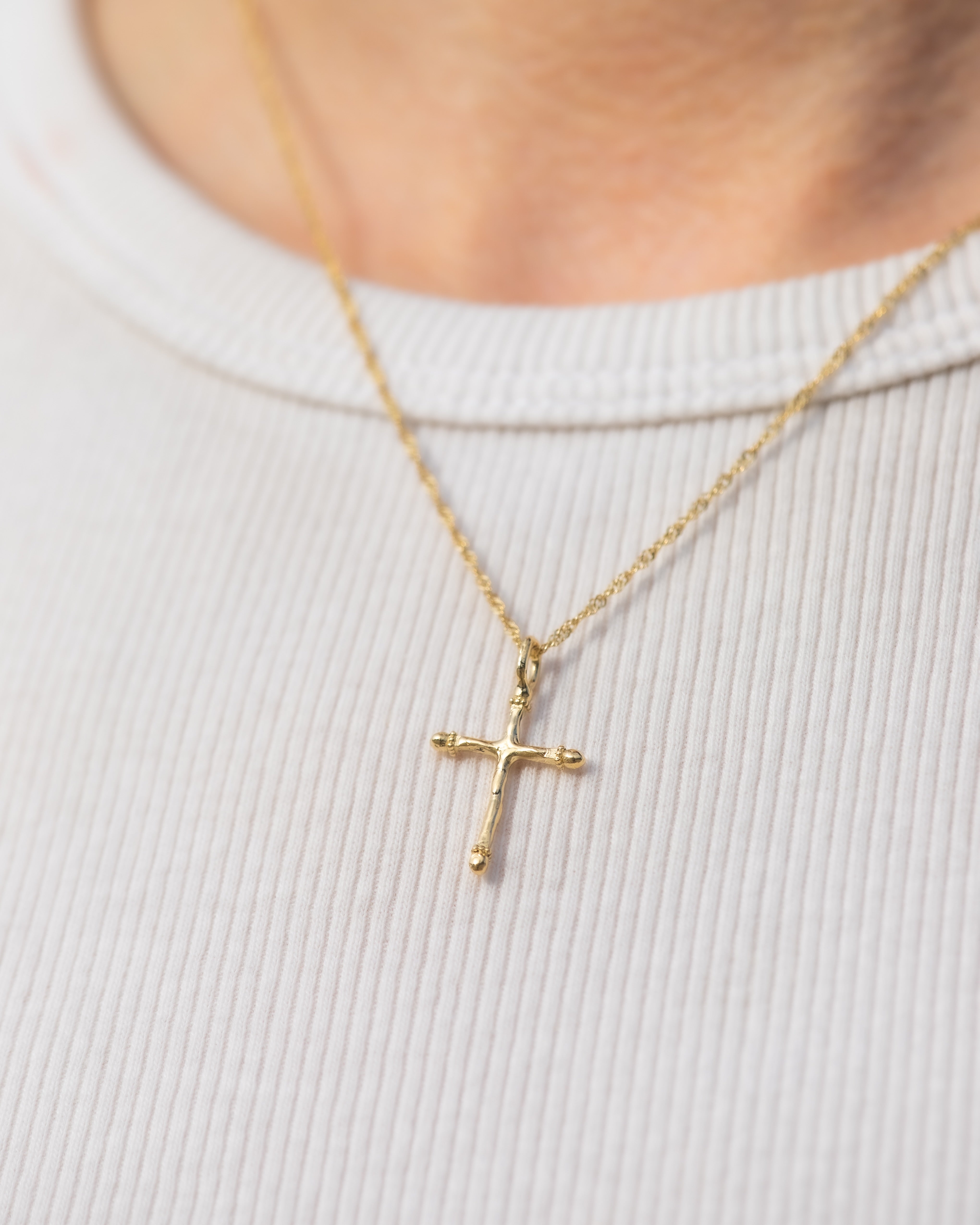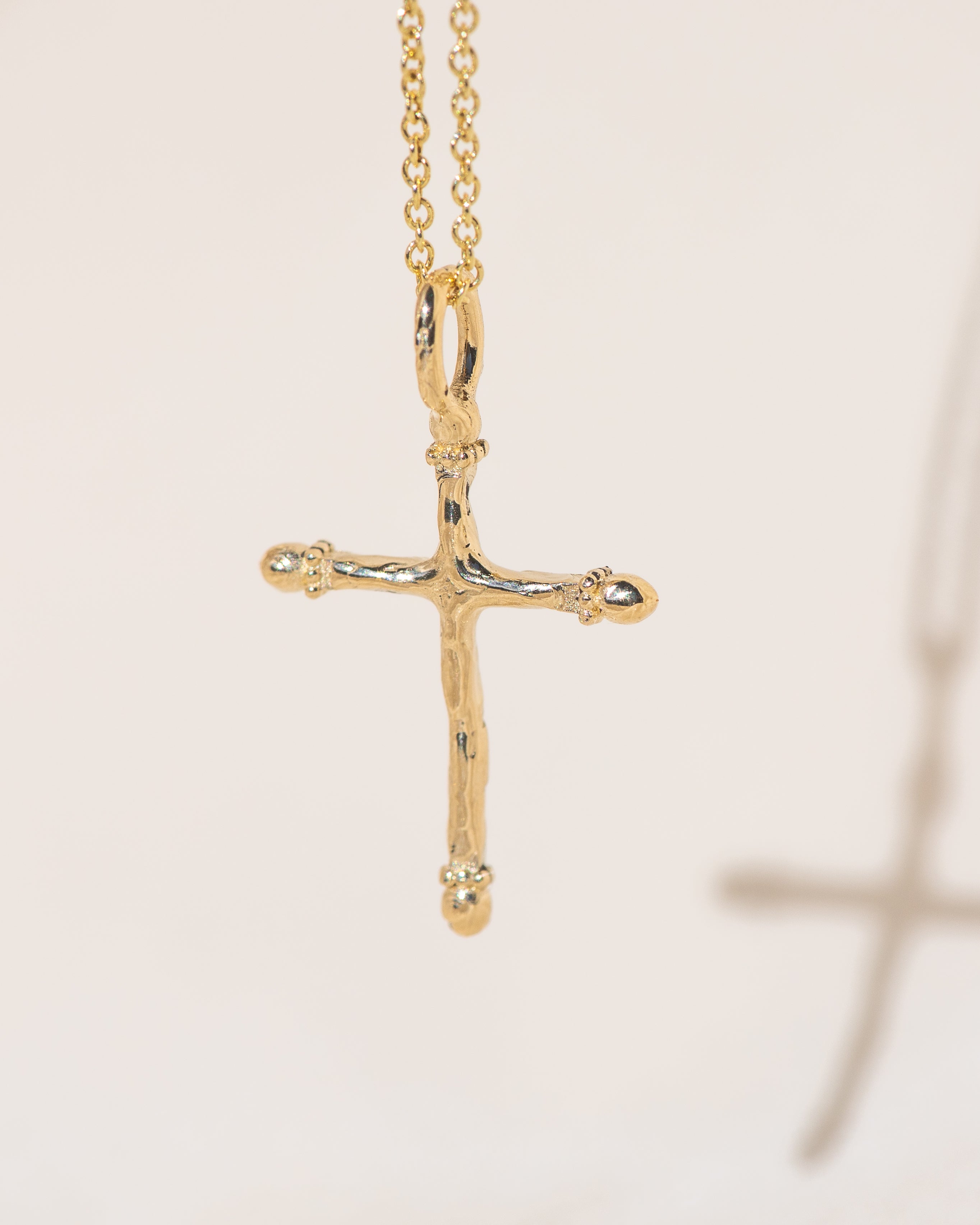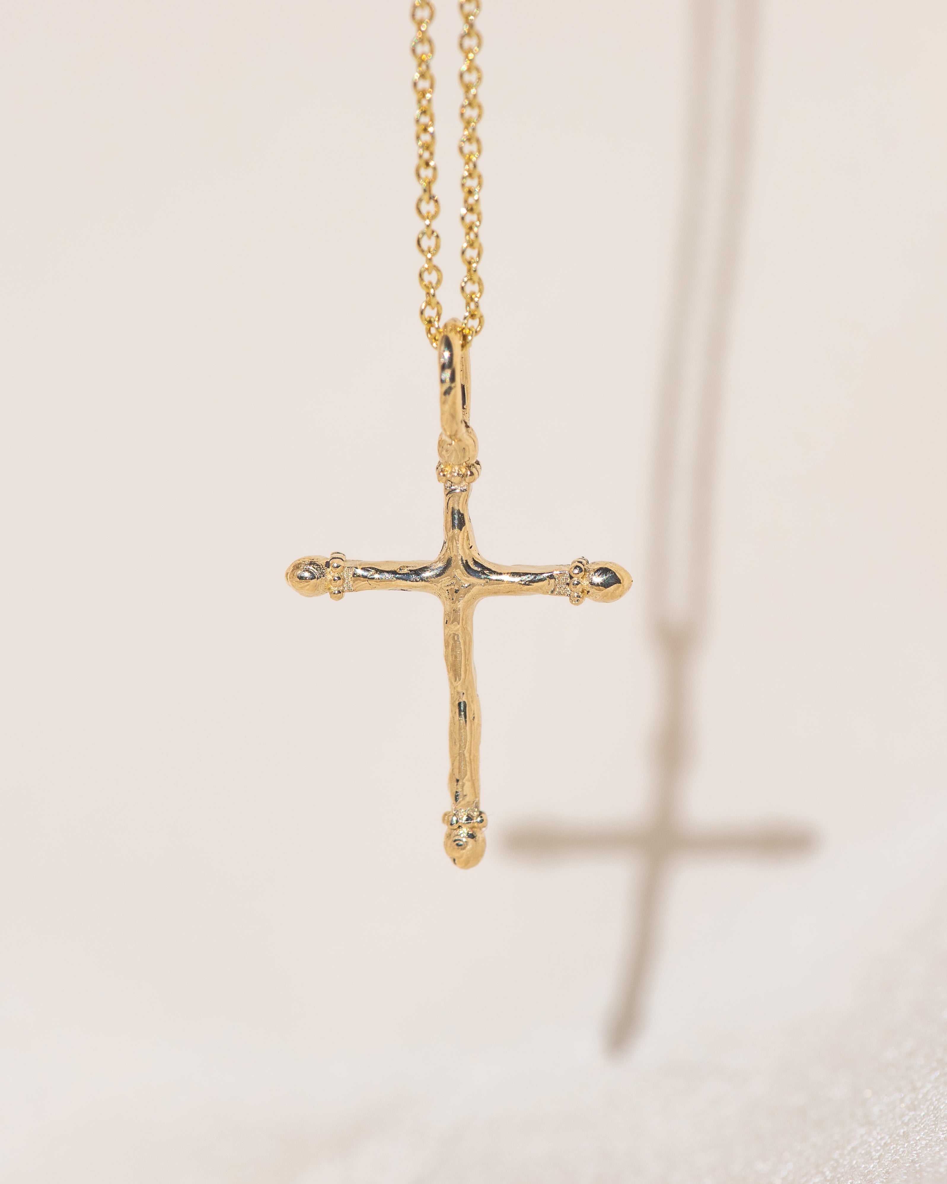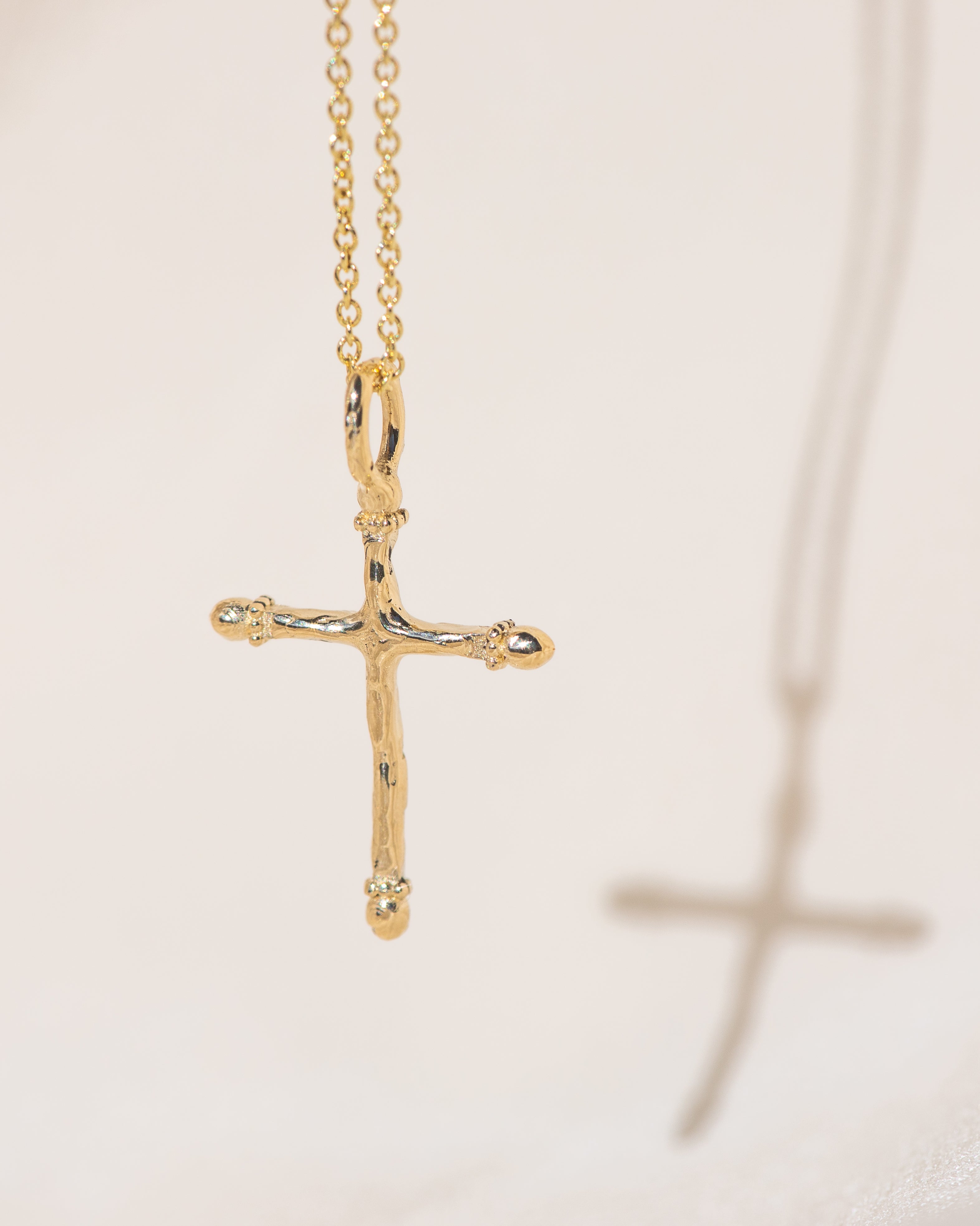 Inspired by an antique 18th century French amulet, the Cross of Revelation was designed to draw on the devotional crosses worn in France in a time when faith, symbolism and artistry were interwoven. Its delicate silhouette nestles into the historic family of the Croix Bourgeonnante {the Budding Cross}, a style that was extremely common in French devotional jewelry from the medieval era through the 1700s. Its small budded terminals embody the blossoming of faith, resurrection, the unfolding of Divine knowledge, and the spiritual awakening that occurs when we turn towards the Divine. It represents the blossoming of inner truth, guiding us towards clarity, devotion, and spiritual revelation.