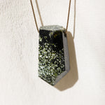 Each necklace features a one-of-a-kind stone on a 14 karat gold filled chain, and has been cleansed with selenite, lavender and sage under a full moon.