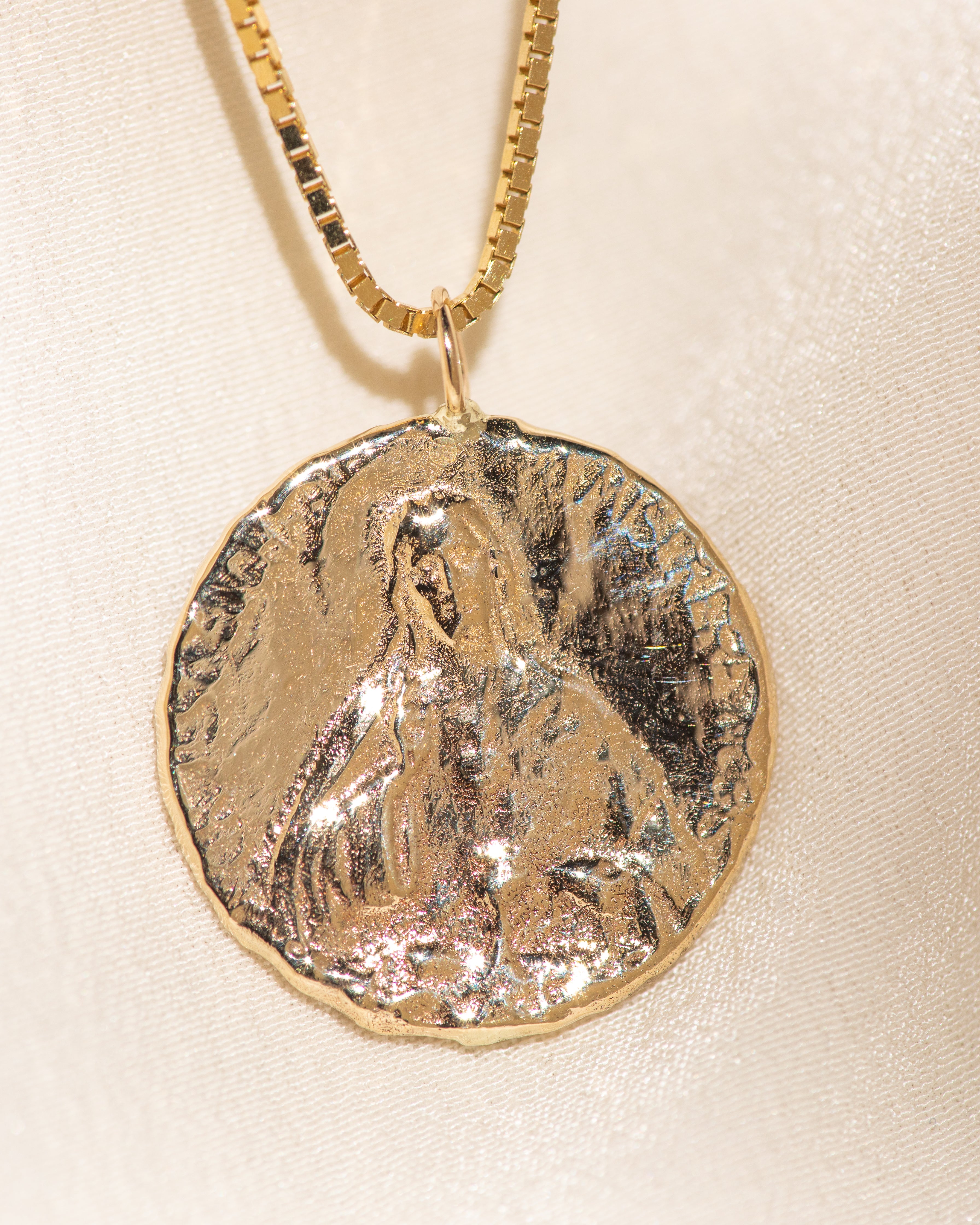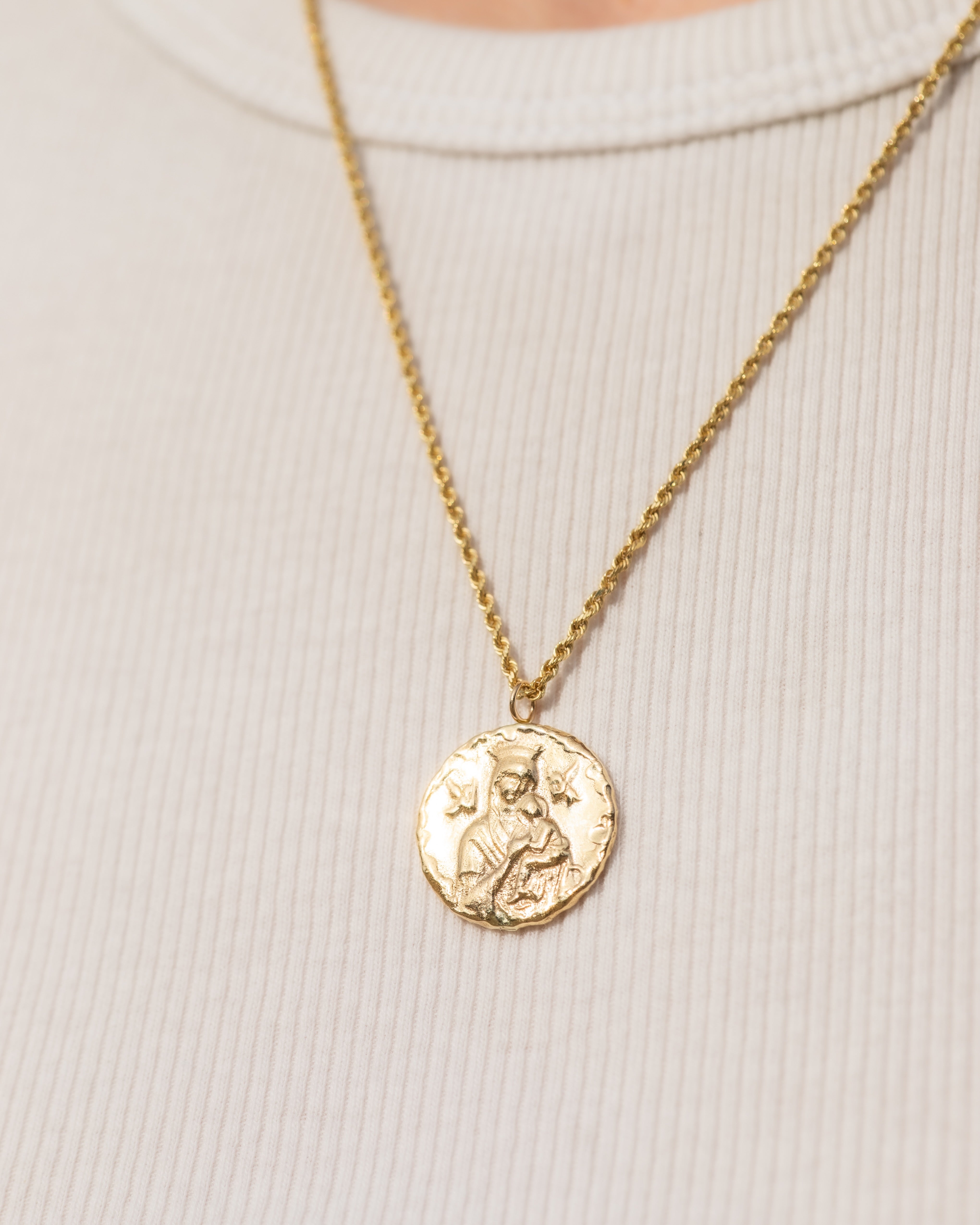 Inspired by an antique 18th-century French amulet, this is the kind of sacred medallion people wore over their hearts for blessing, protection, and maternal guidance. The archetype of the Holy Mother - nurturing, guiding the soul back to its innocence, healing childhood wounds, and restoring trust in the Divine - emulate an ever-present reminder that you are held and watched over.
