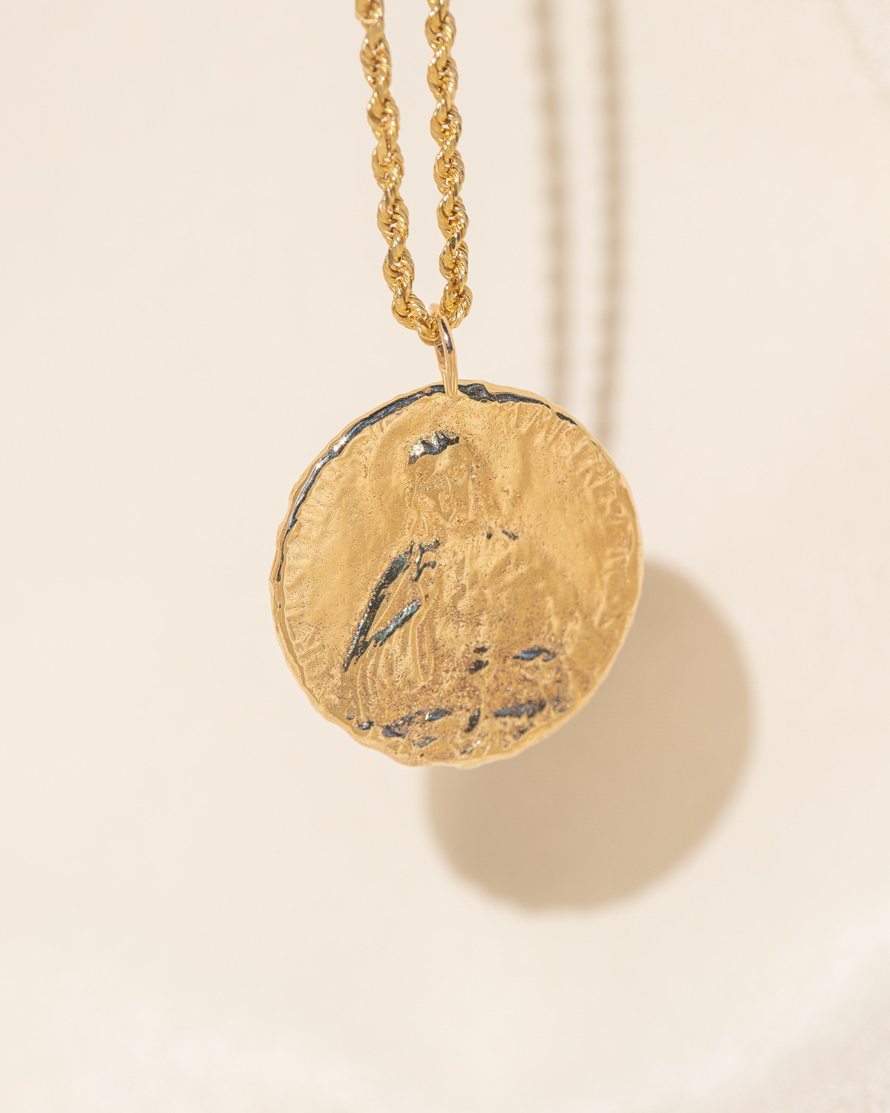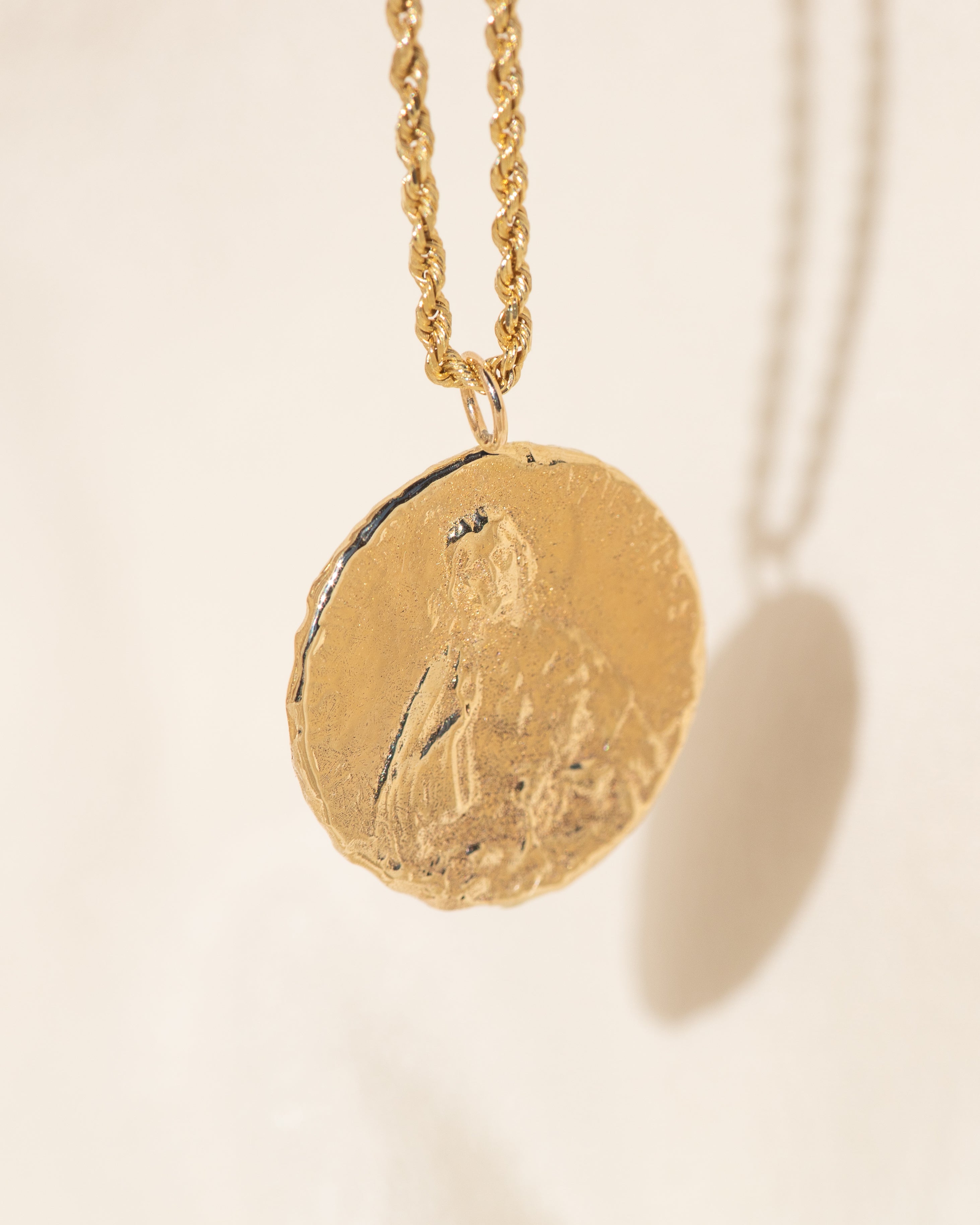 Solid 14k yellow gold on your choice of box chain or 1.5mm diamond cut rope chain, available in 16" or 18"