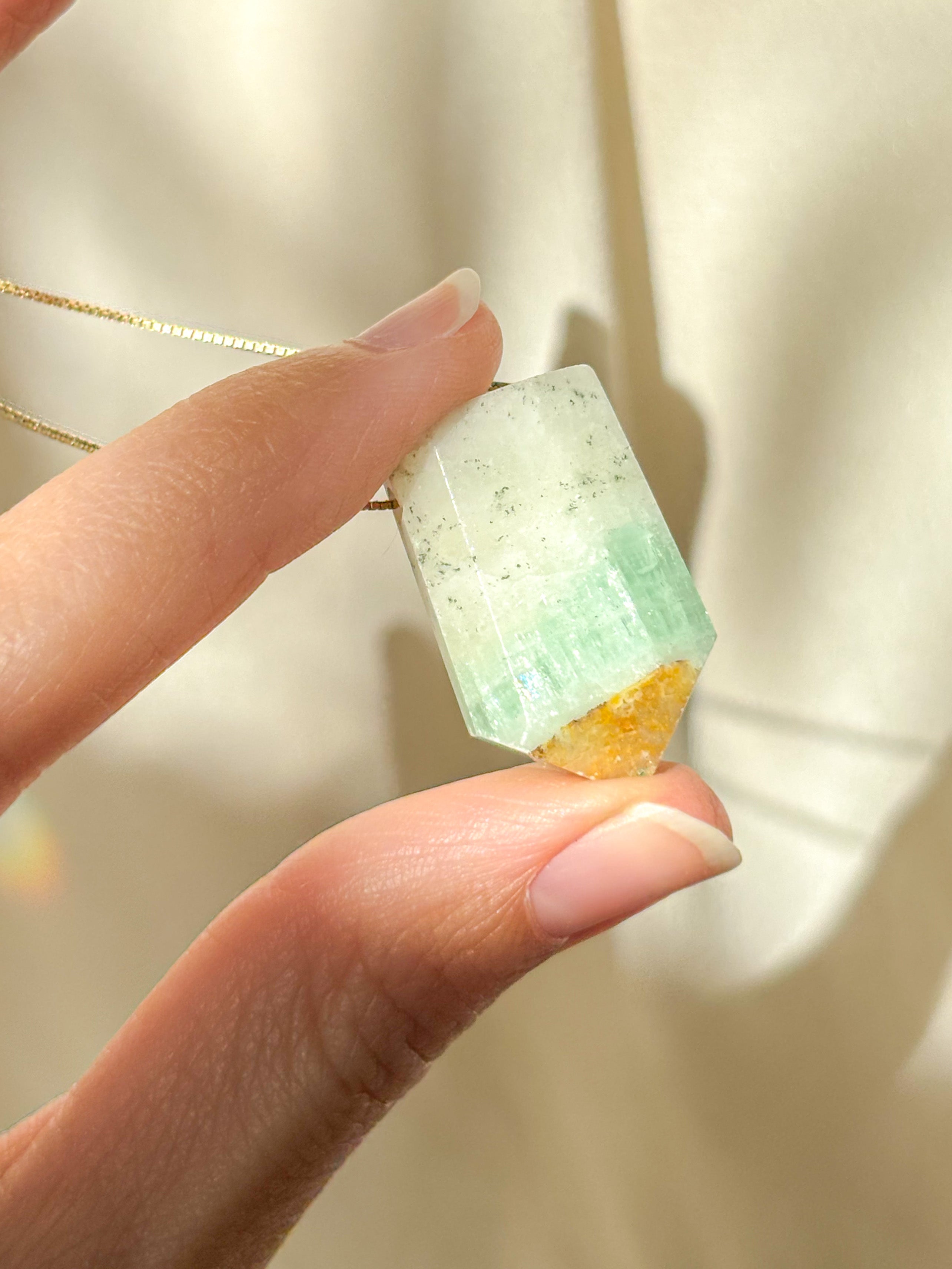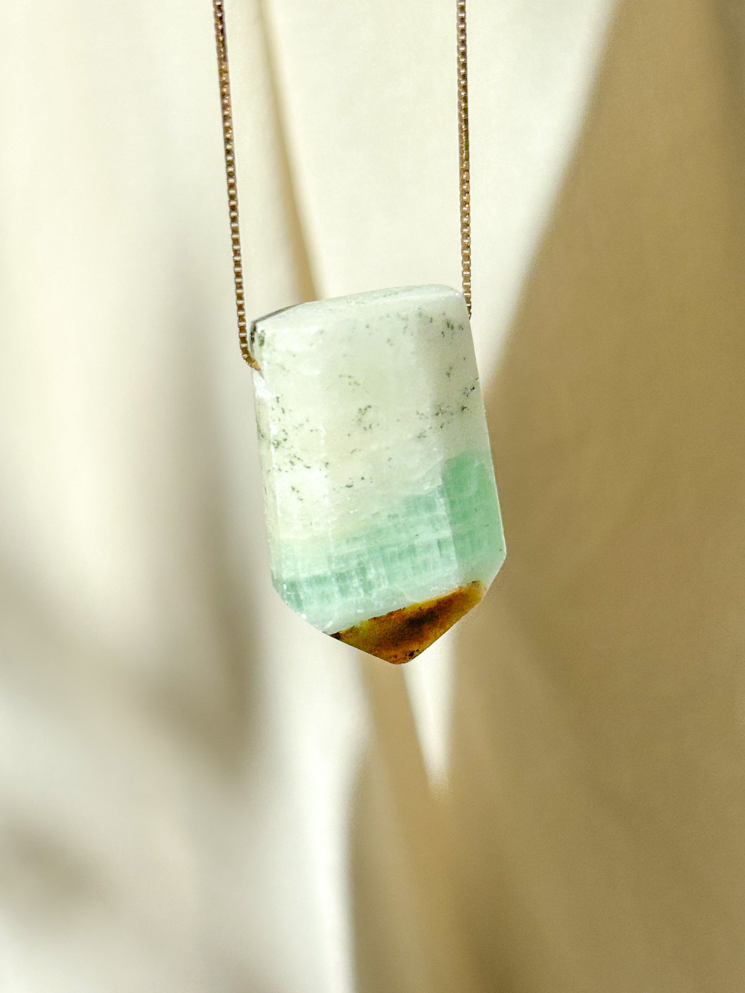 Each necklace features a one-of-a-kind stone on a 14 karat gold filled chain, and has been cleansed with selenite, lavender and sage under a full moon.