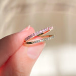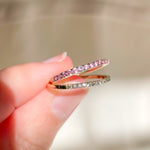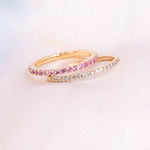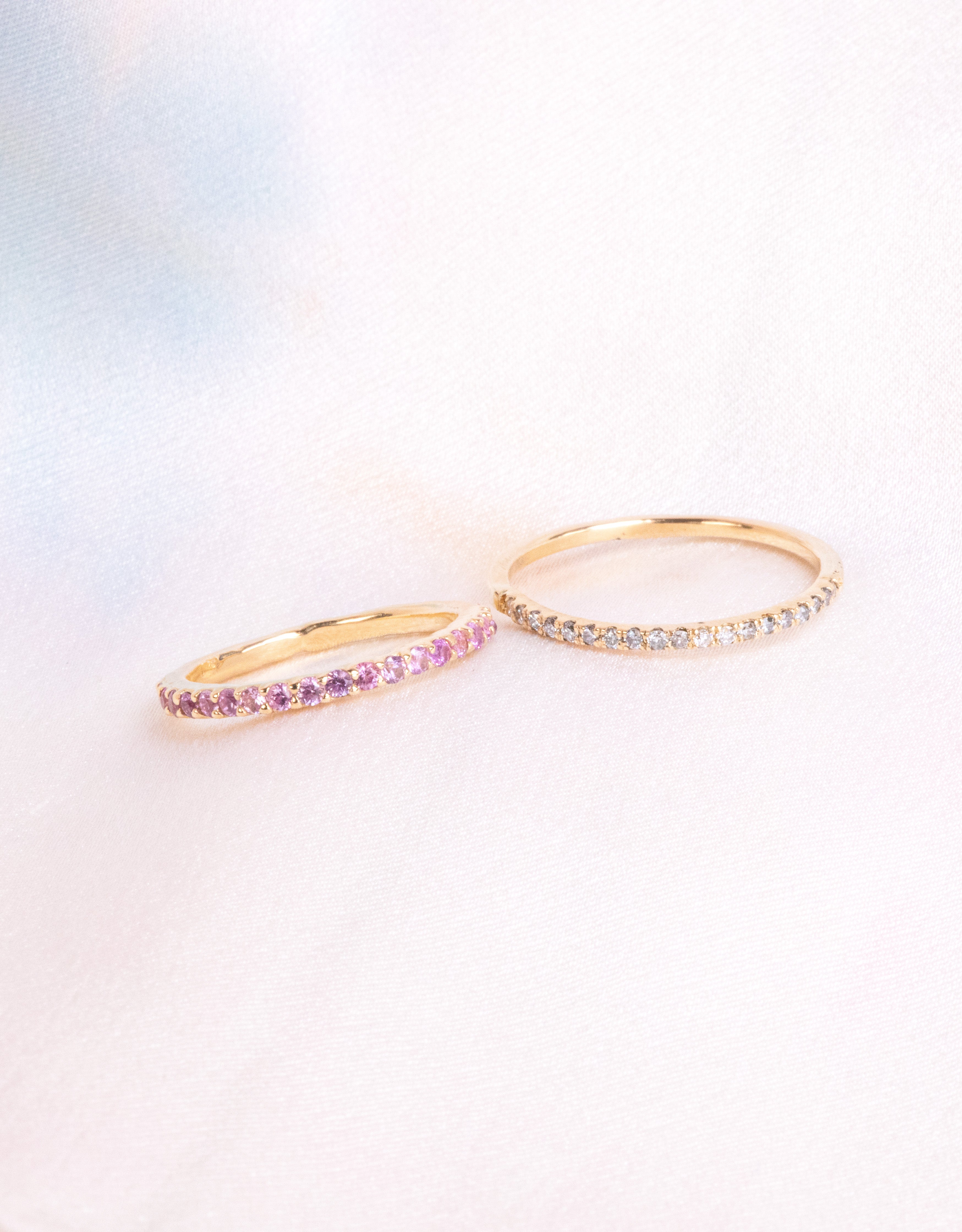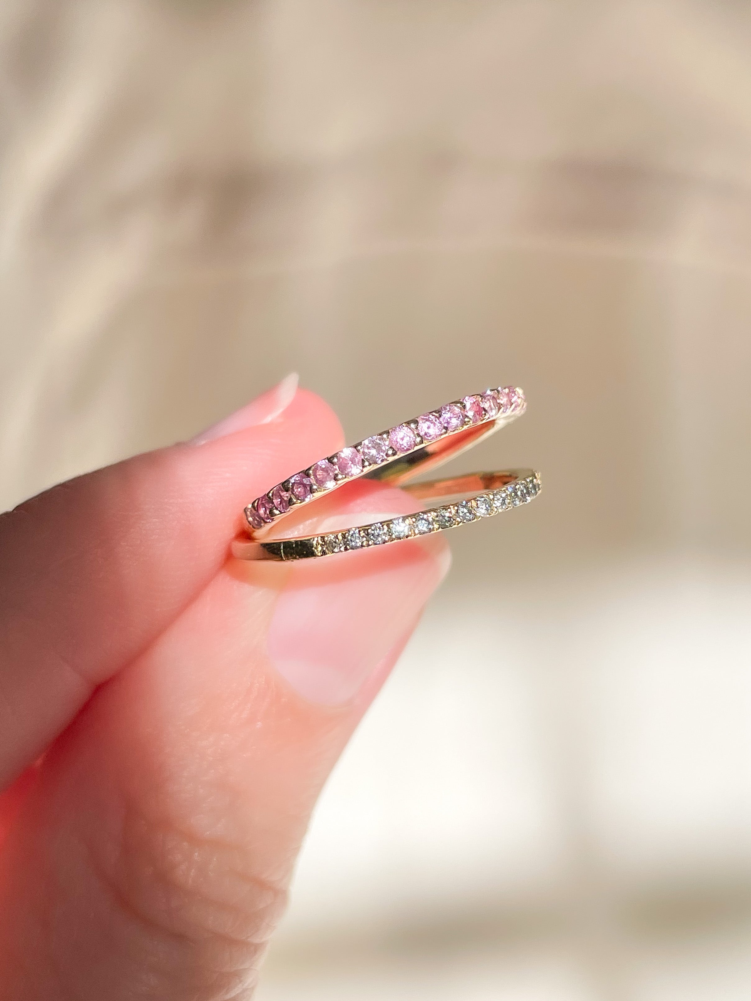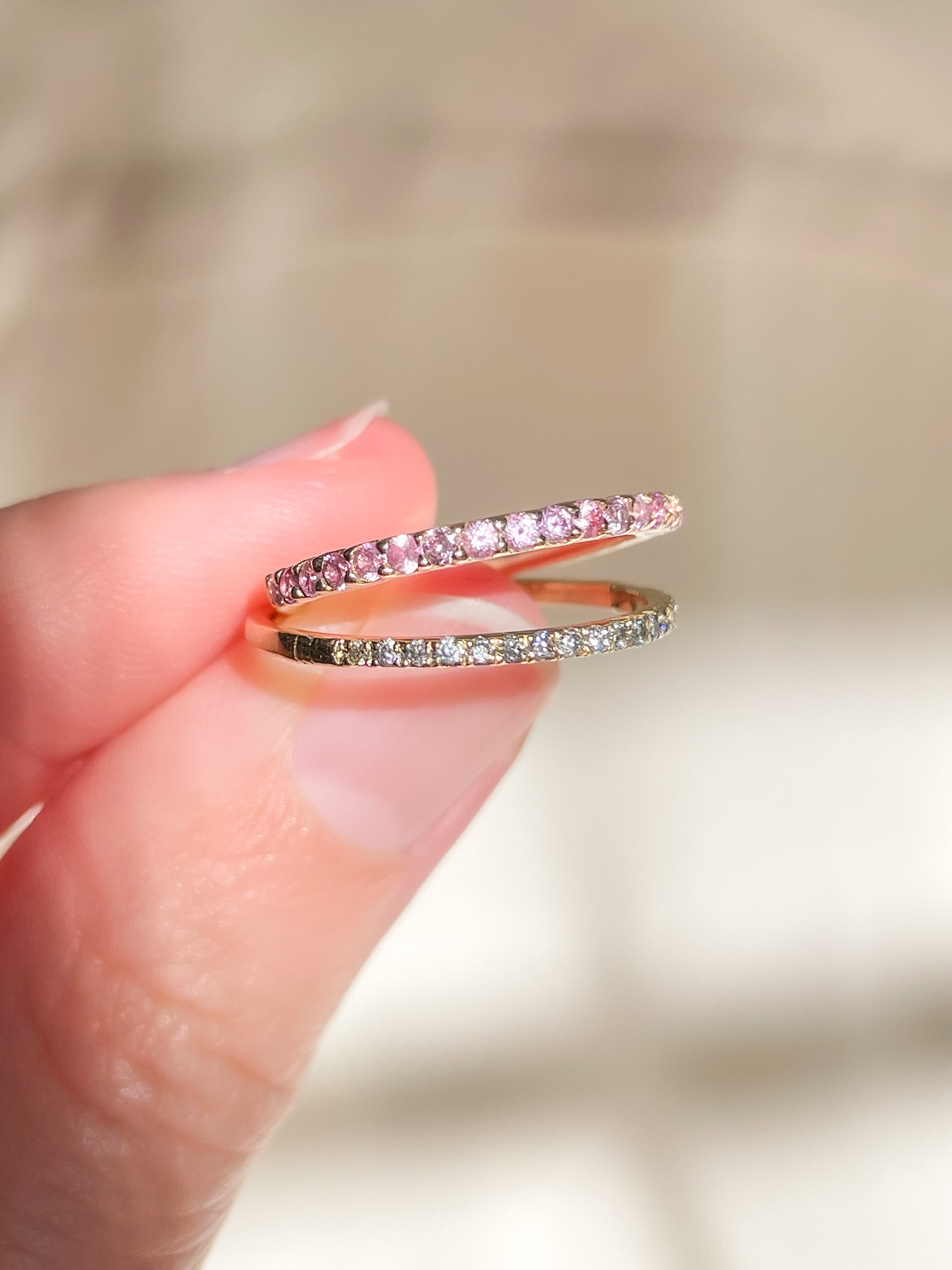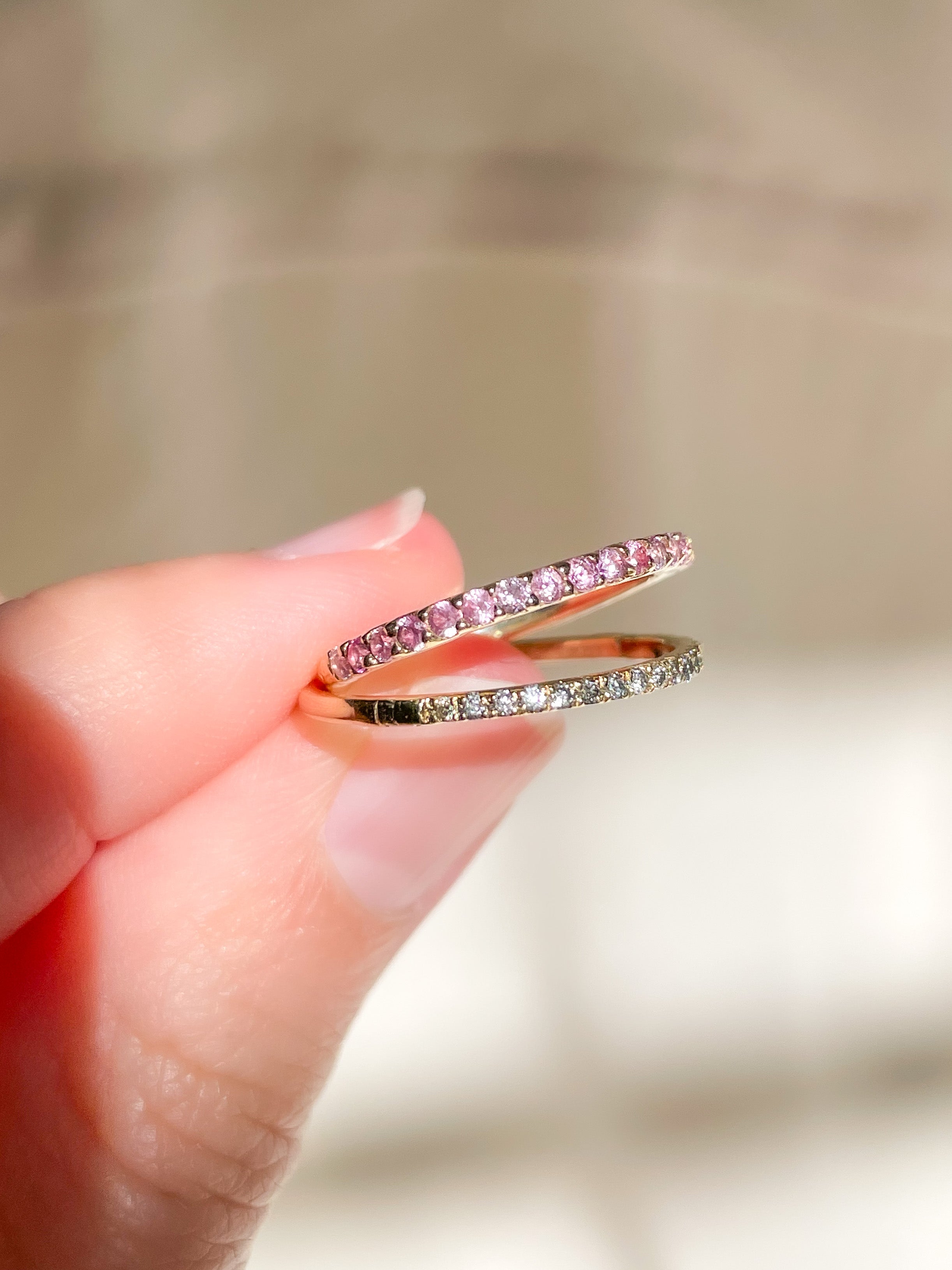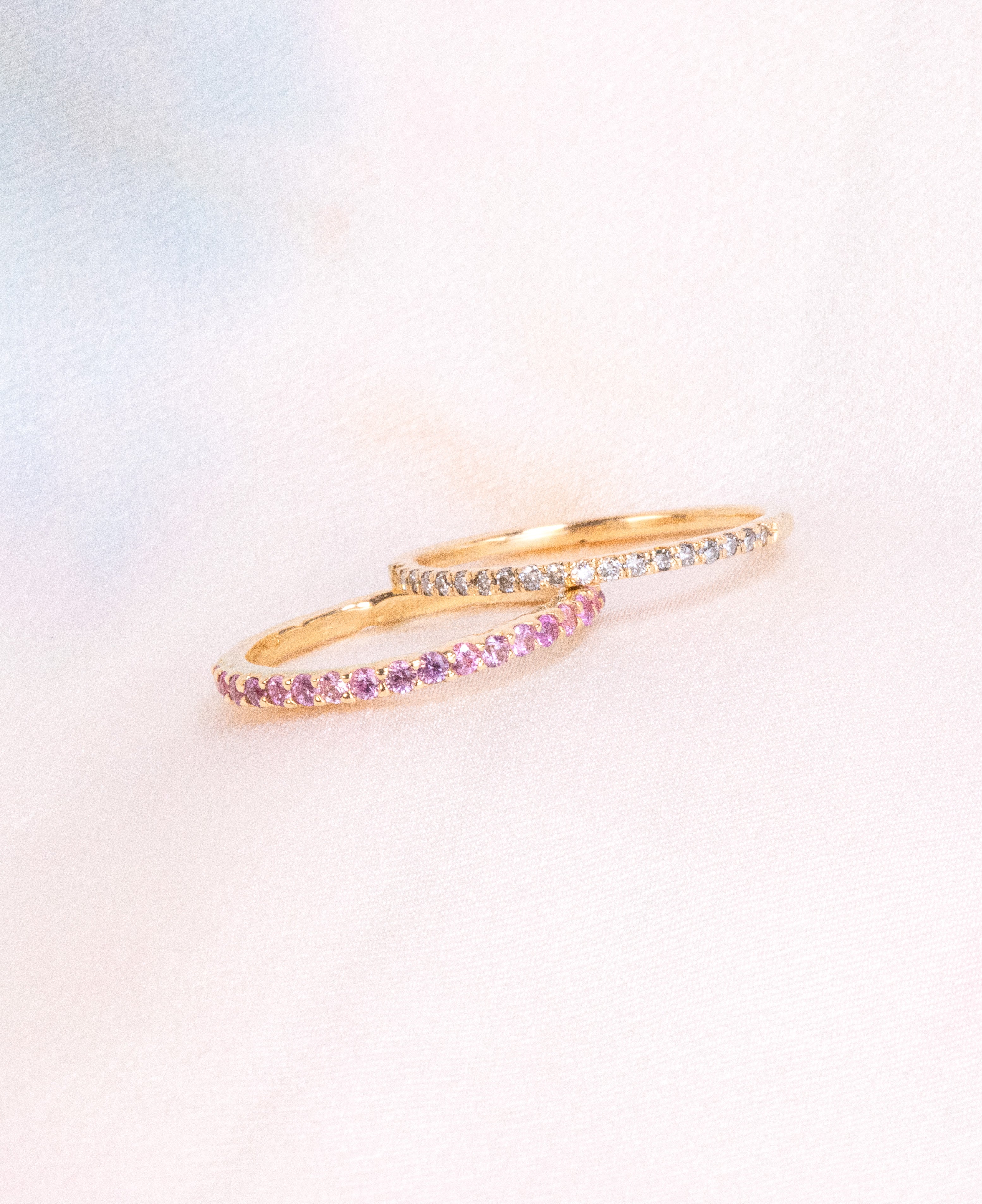 A delicate halo of light, embodying Divine spirituality and all that is holy in sacred union with yourself and your beloved. This thin 1.1mm 14k Gold band features a setting of 20 White Diamonds.