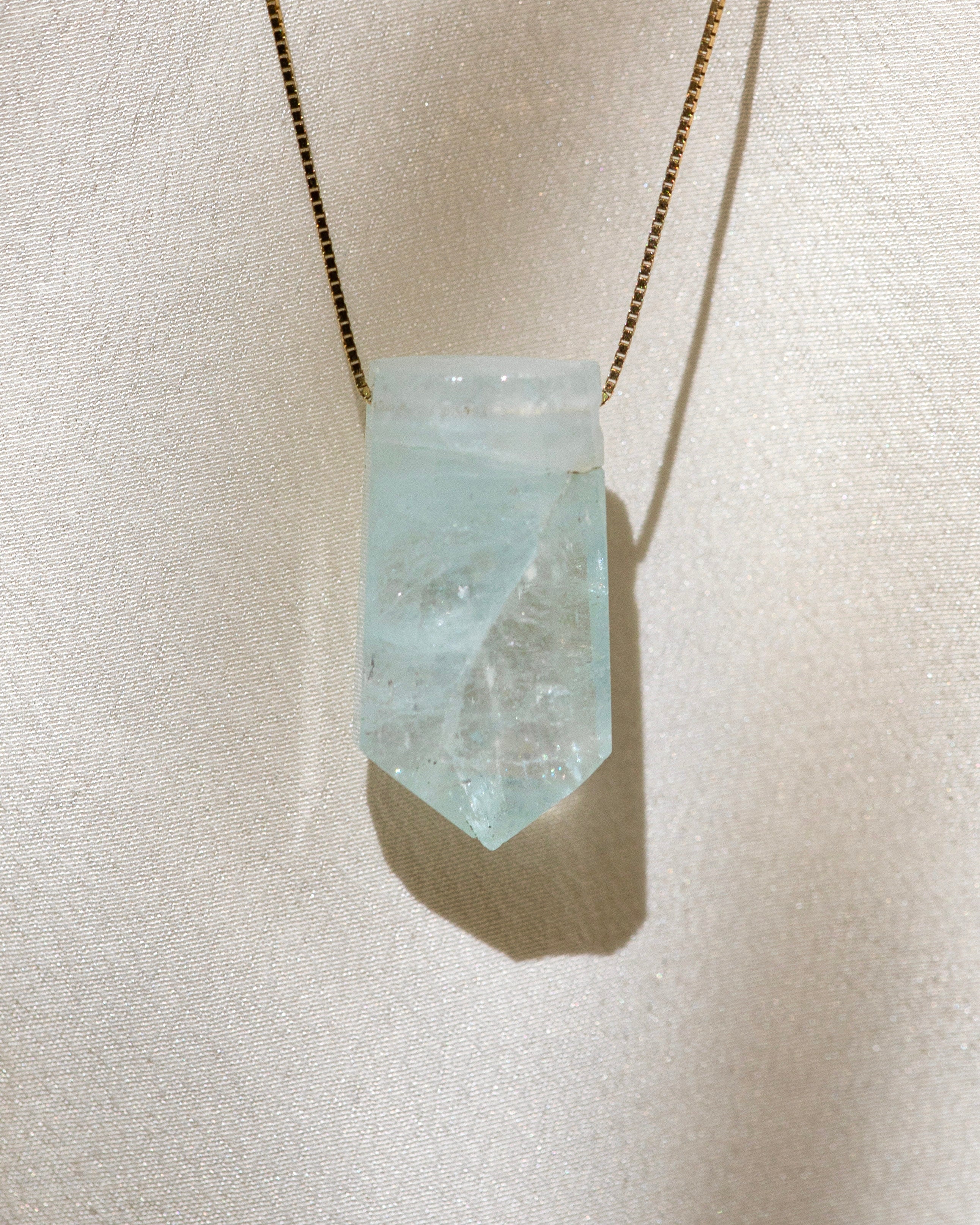 Aquamarine embodies the Divine Feminine energy which fills our oceans, its Latin name translating to water of the sea. It is calming and opens the platform for a truthful, cool, and calm way of communicating, and is empowering to those who are more sensitive and empathic. Aquamarine is a comforting stone, as it implores you to use your voice with confidence, while releasing stress or fear to create positive changes in your life and let go of what no longer belongs to you. According to ancient lore, Aquamarine was believed to be the treasure of the mermaids, and was used by sailors for good luck, fearlessness and protection. Aquamarine lends you feelings of courage during times that require you to challenge yourself from shying away from your dreams, assisting you to channel your inner Goddess to understand yourself on a deeper level and relate to those around you more intuitively.