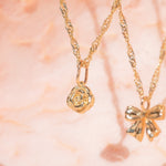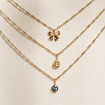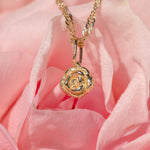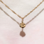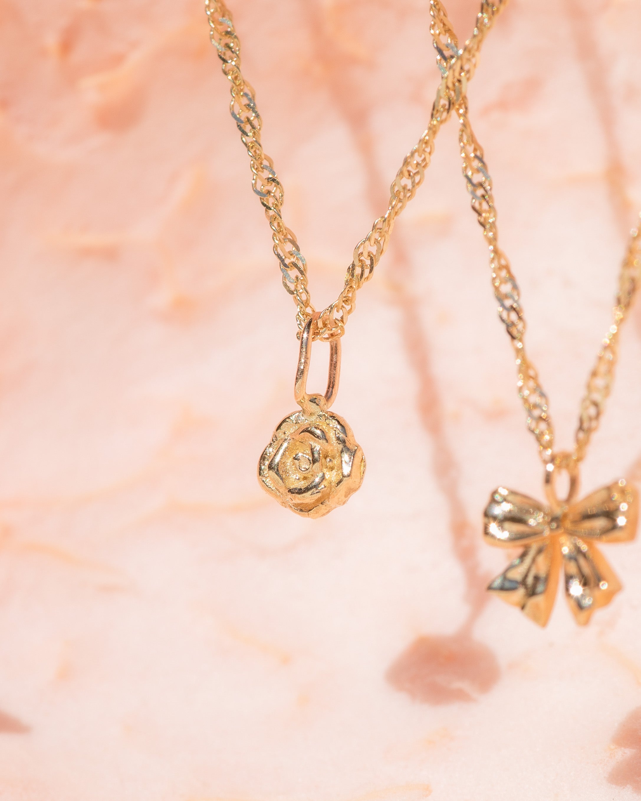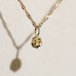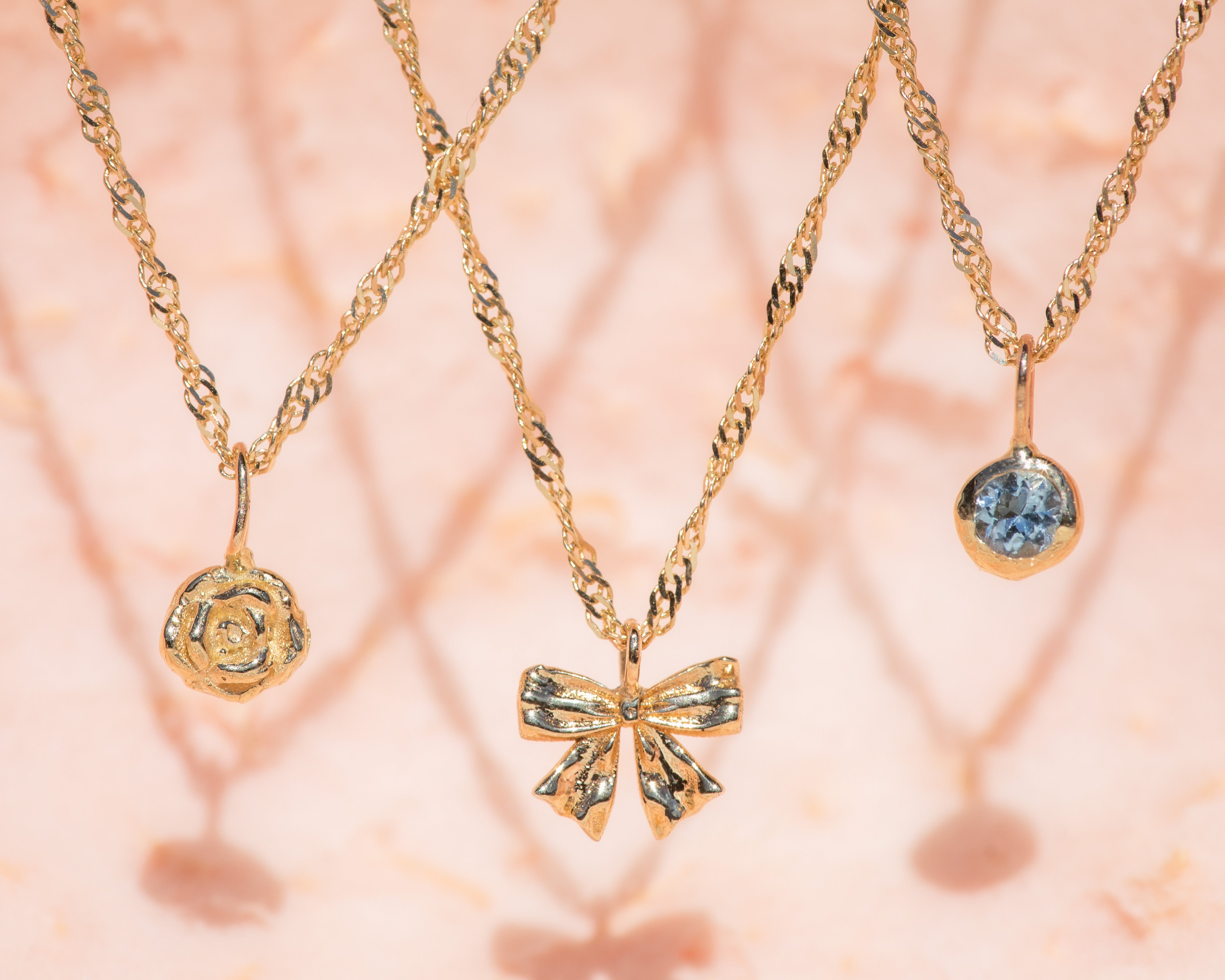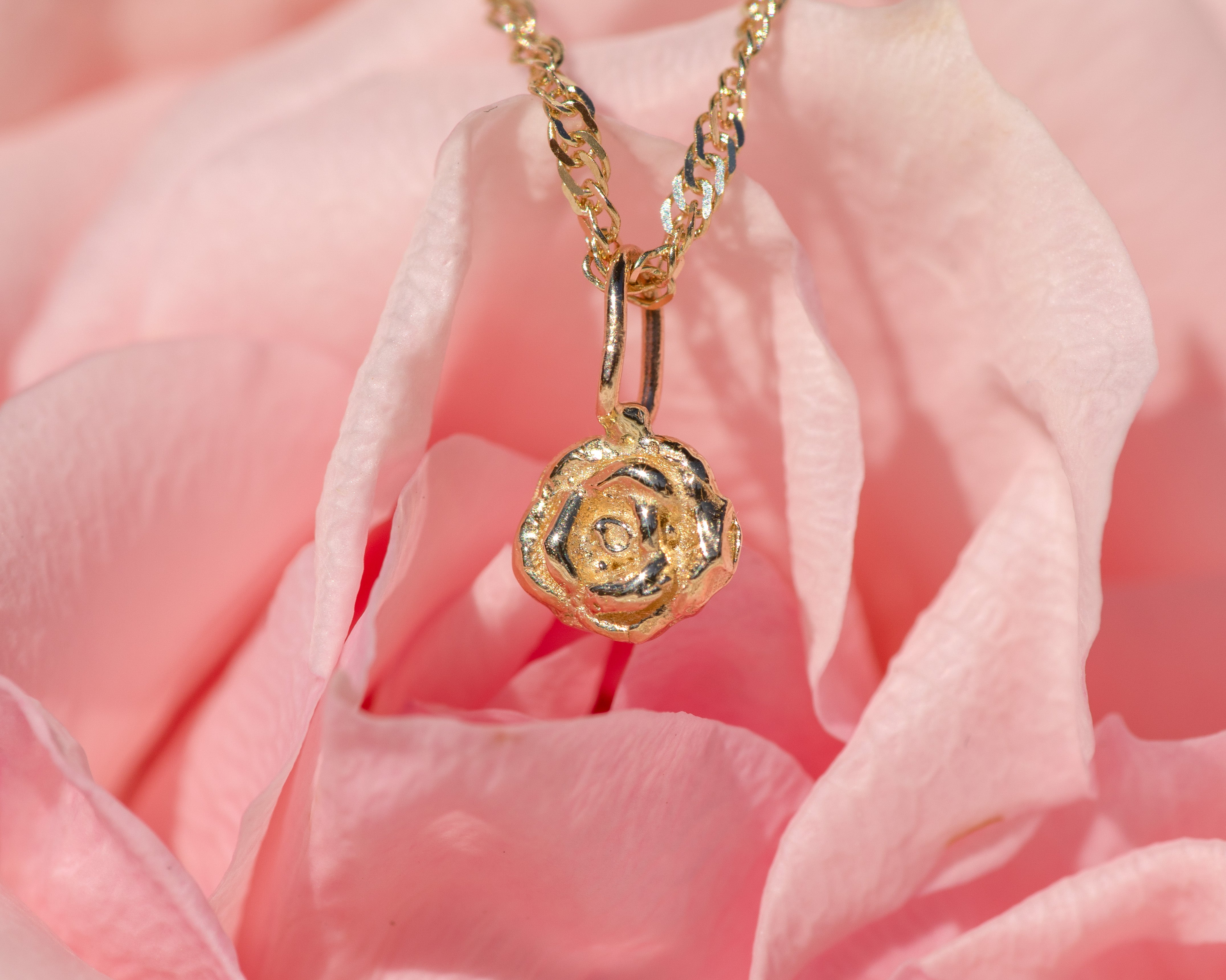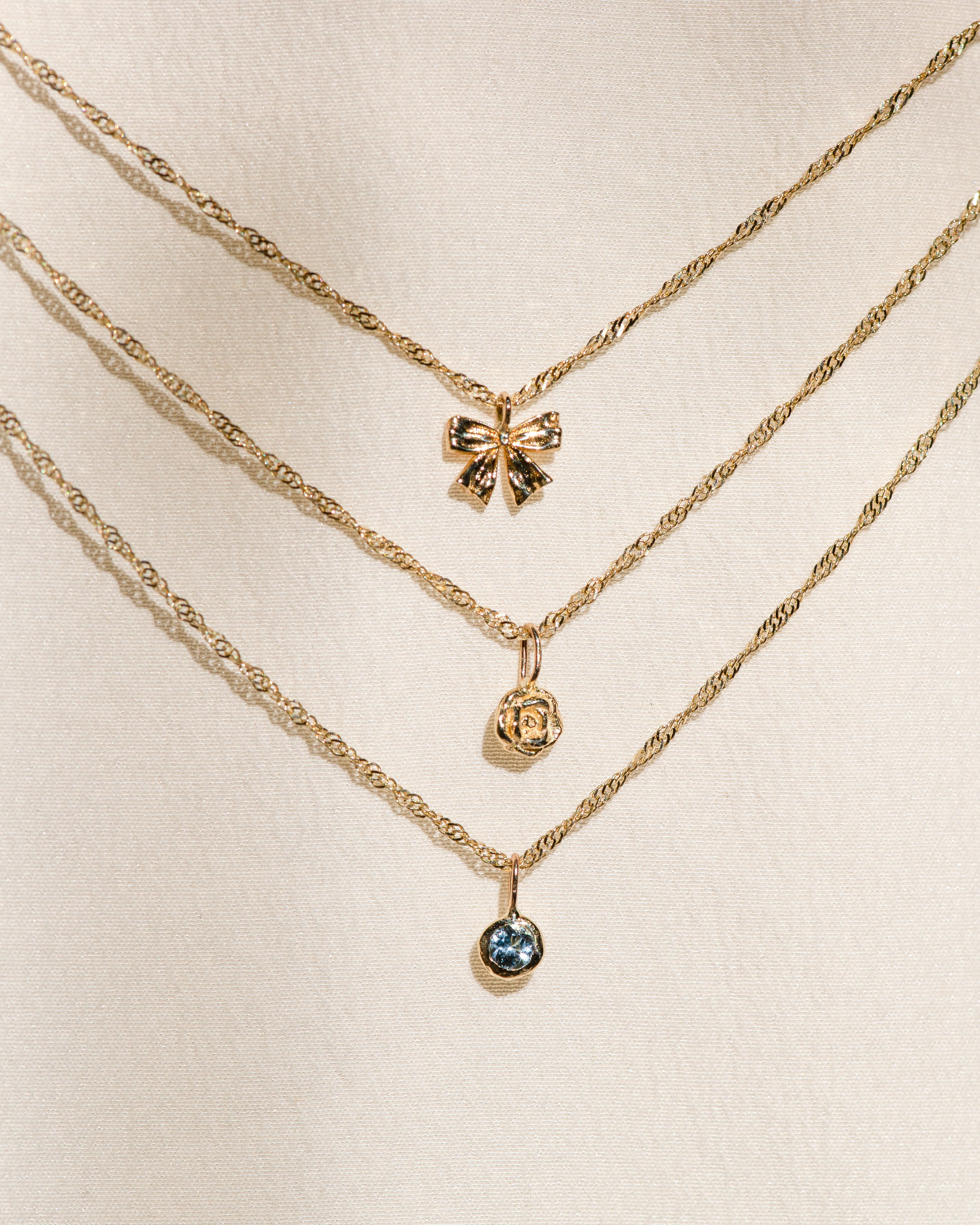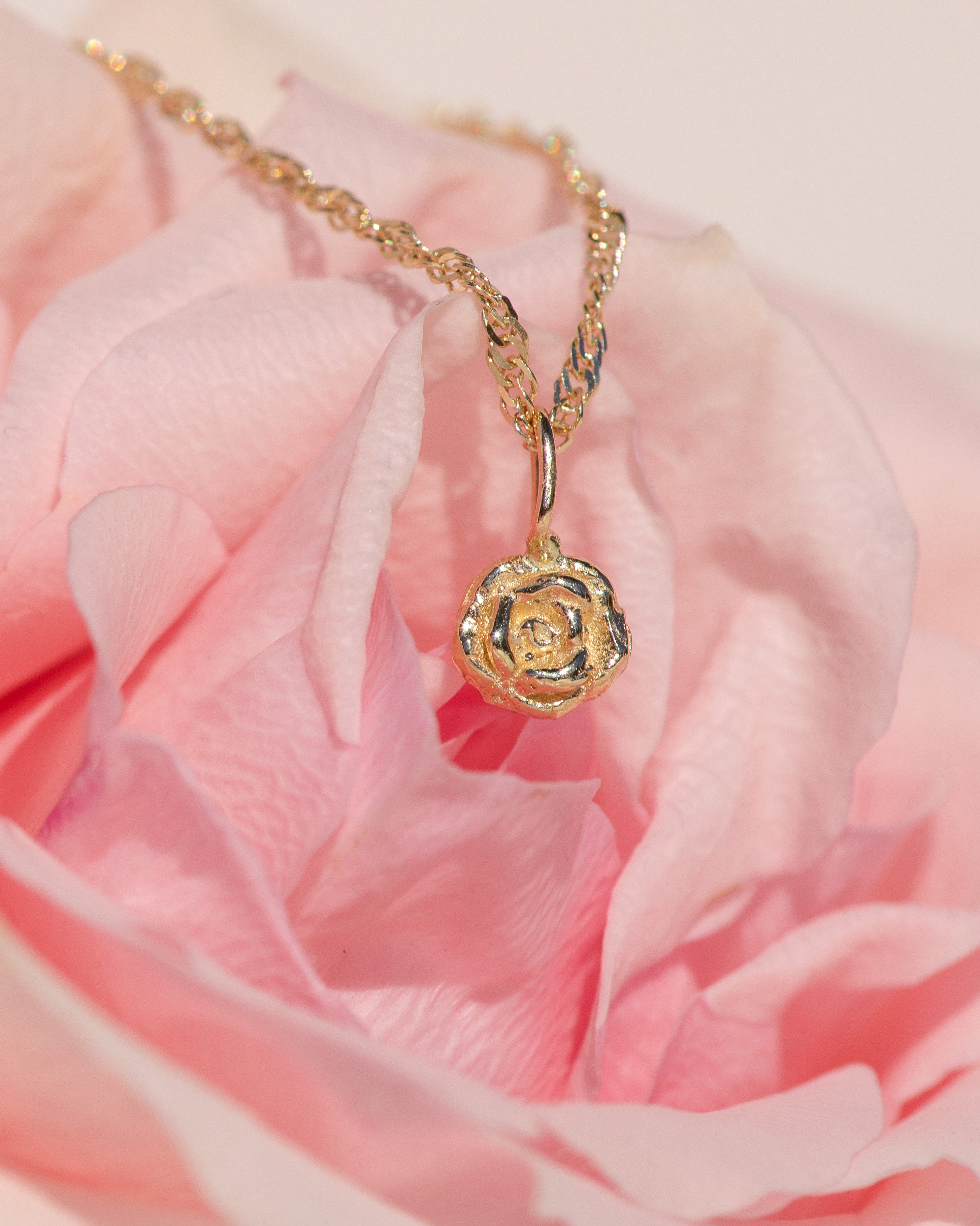I am infatuated with the sweetness within this little bud pendant, strung on a delicate, shimmering Singapore chain.