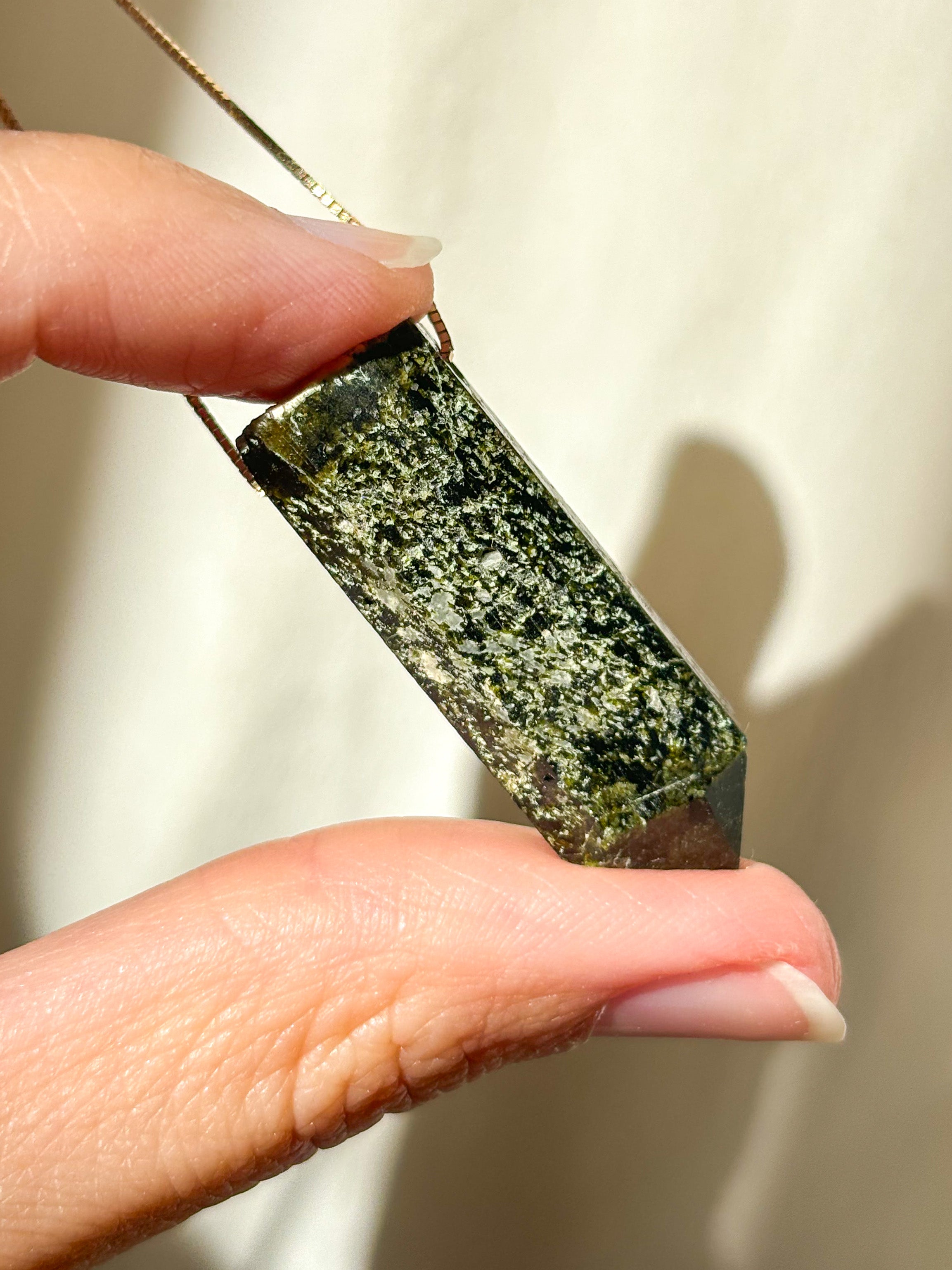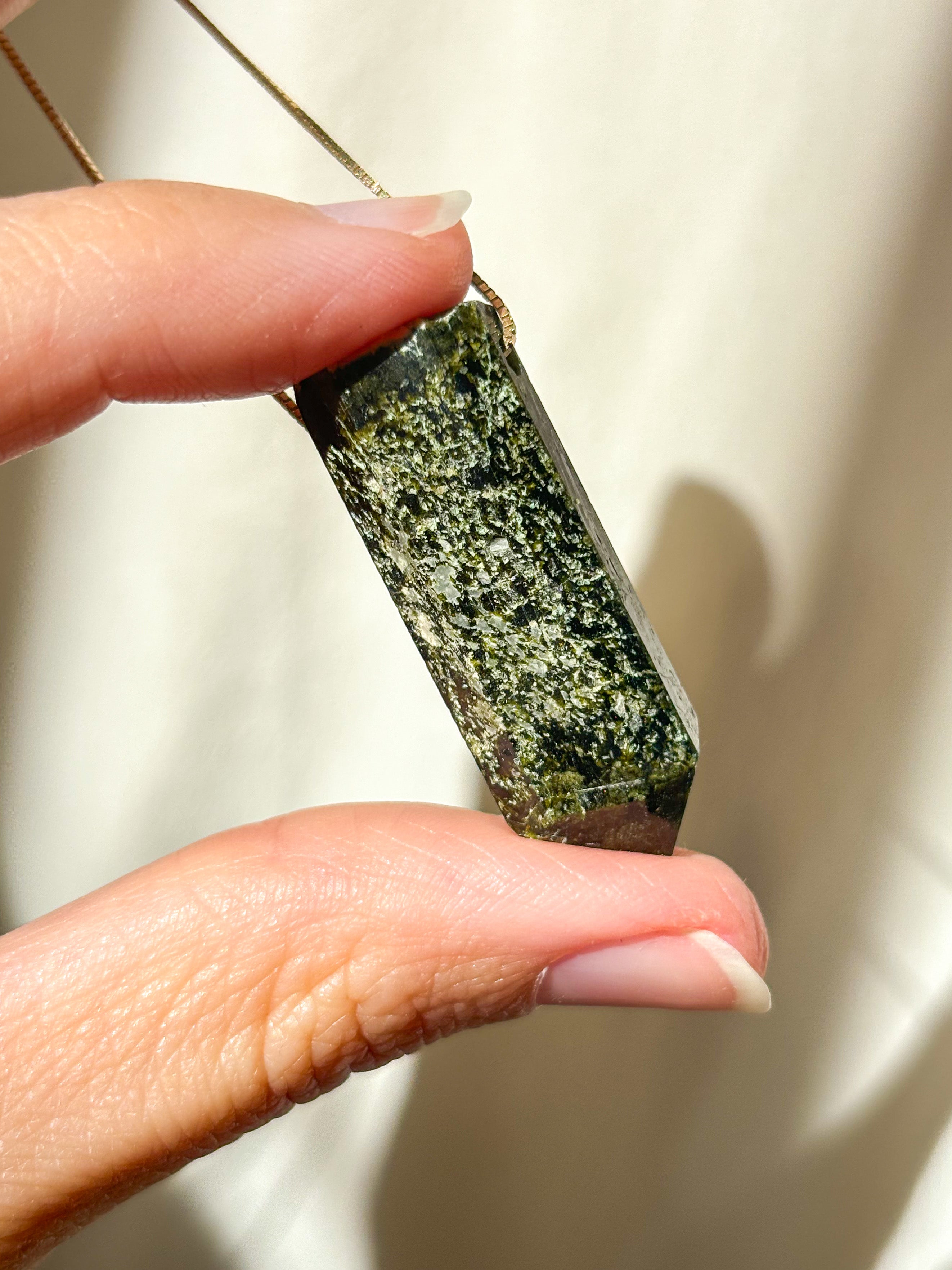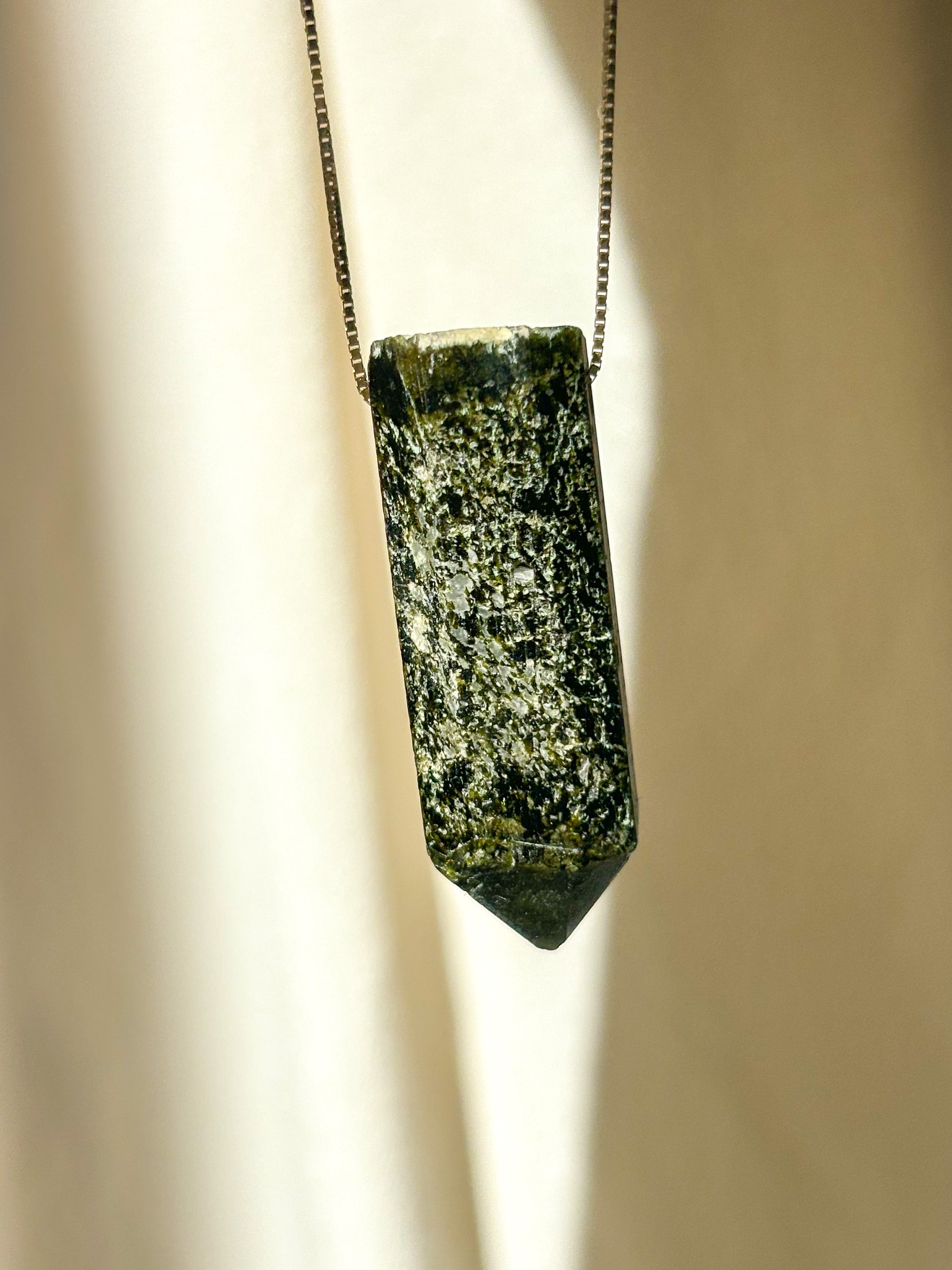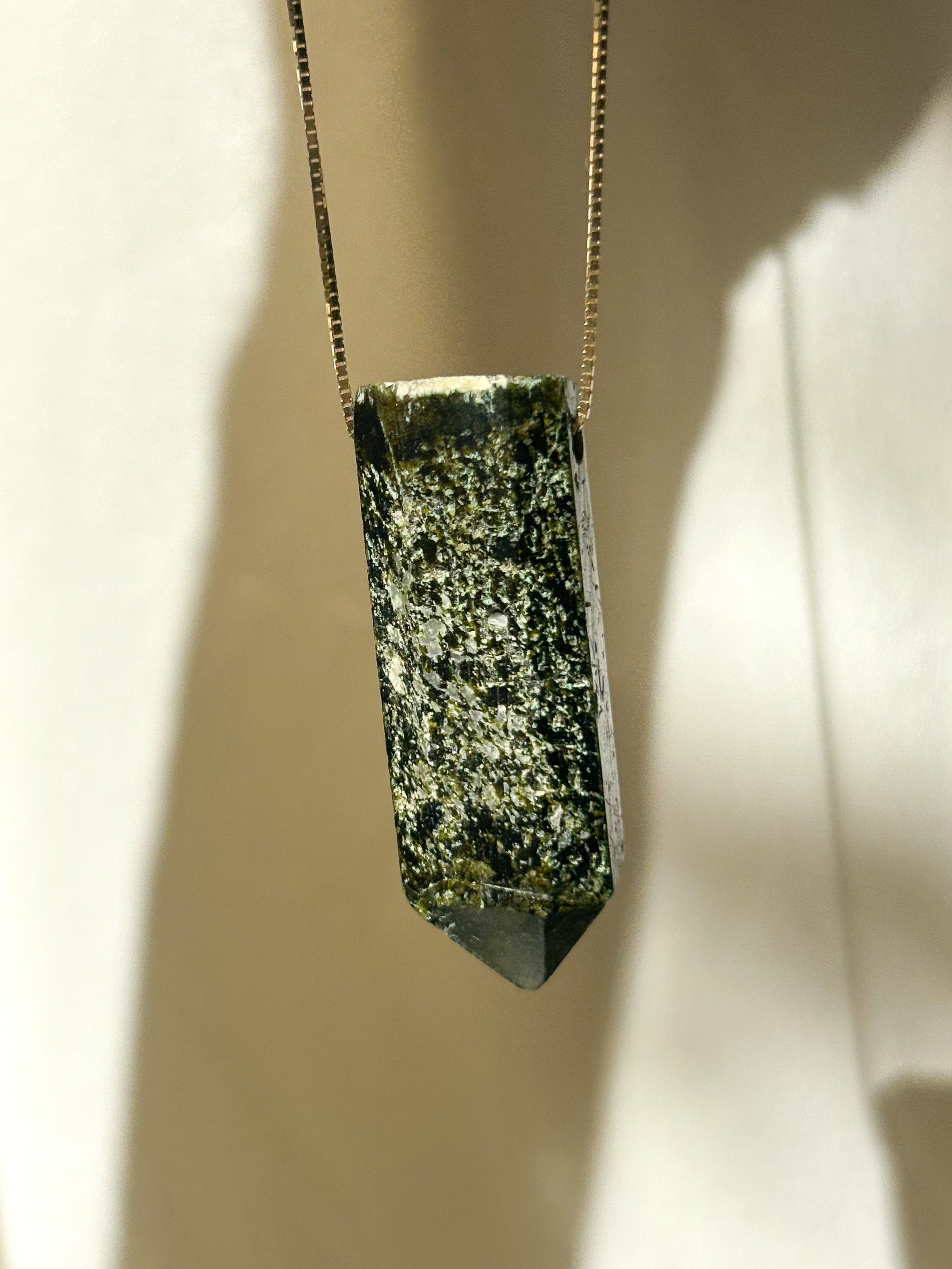 Epidote invites you to step into your personal power, lifting the veil to provide objective perception of the self in analyzing your strengths, and your areas of opportunity for growth. It releases any resistance to spiritual awakening and expansion, clearing deeply engrained negative energy, thrusting you into intense transformation. Epidote helps you to let go of victim-beliefs or martyrdom, and instead asks you to feel inspired to take the lessons given to you in life and heal forward into positive patterns. Epidote is the ultimate teacher for “what you emanate, you will attract”, so be mindful – your focus is your greatest teacher, as what you magnify you manifest. It is a powerful catalyst for magnetizing loving relationships, creating abundance and creativity, and aids in dissolving physical manifestations of energetic density – allowing you to transform your thoughts, words and actions to reflect the positive reality you’d like to exist within.
