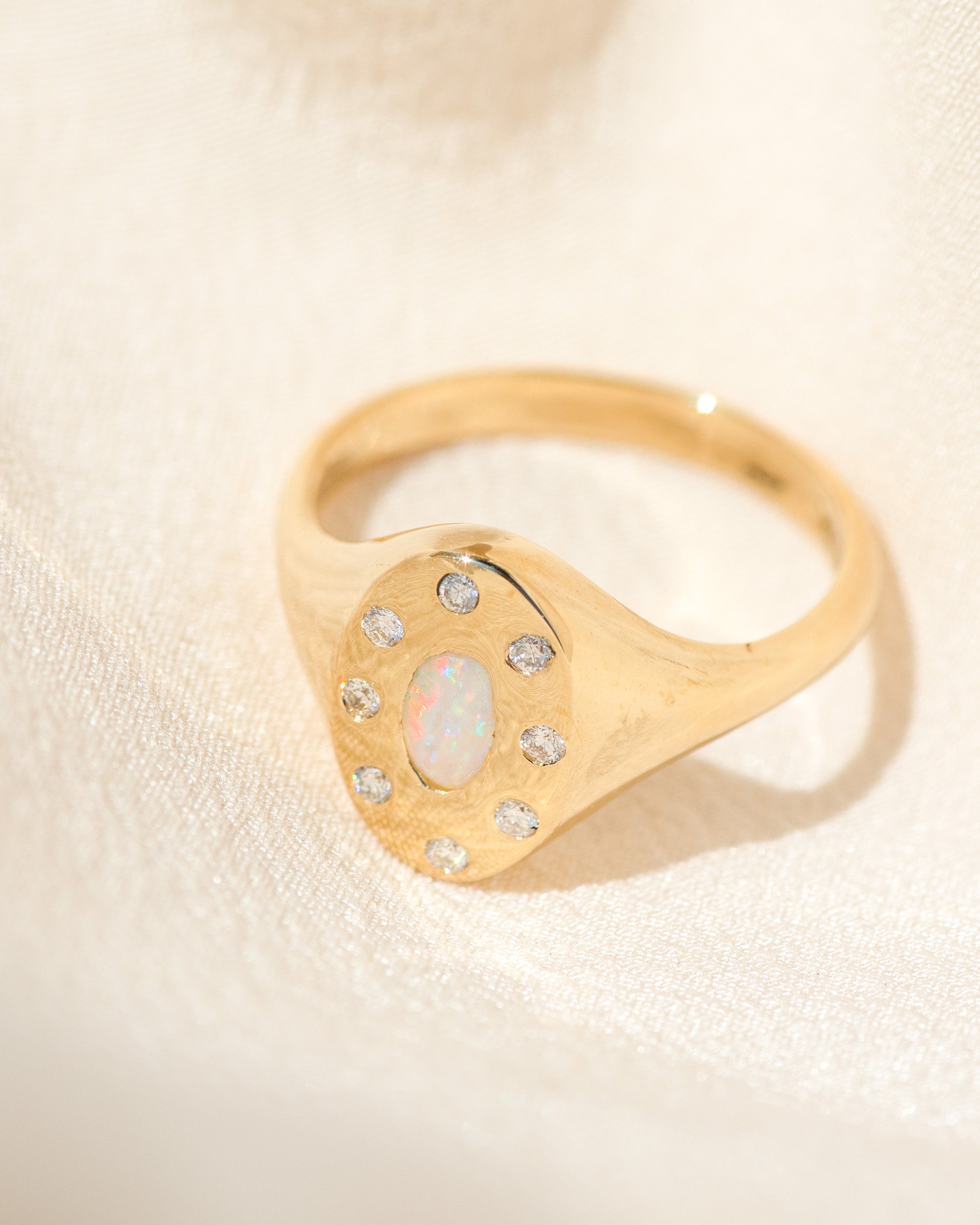 Opal Halo Signet Ring