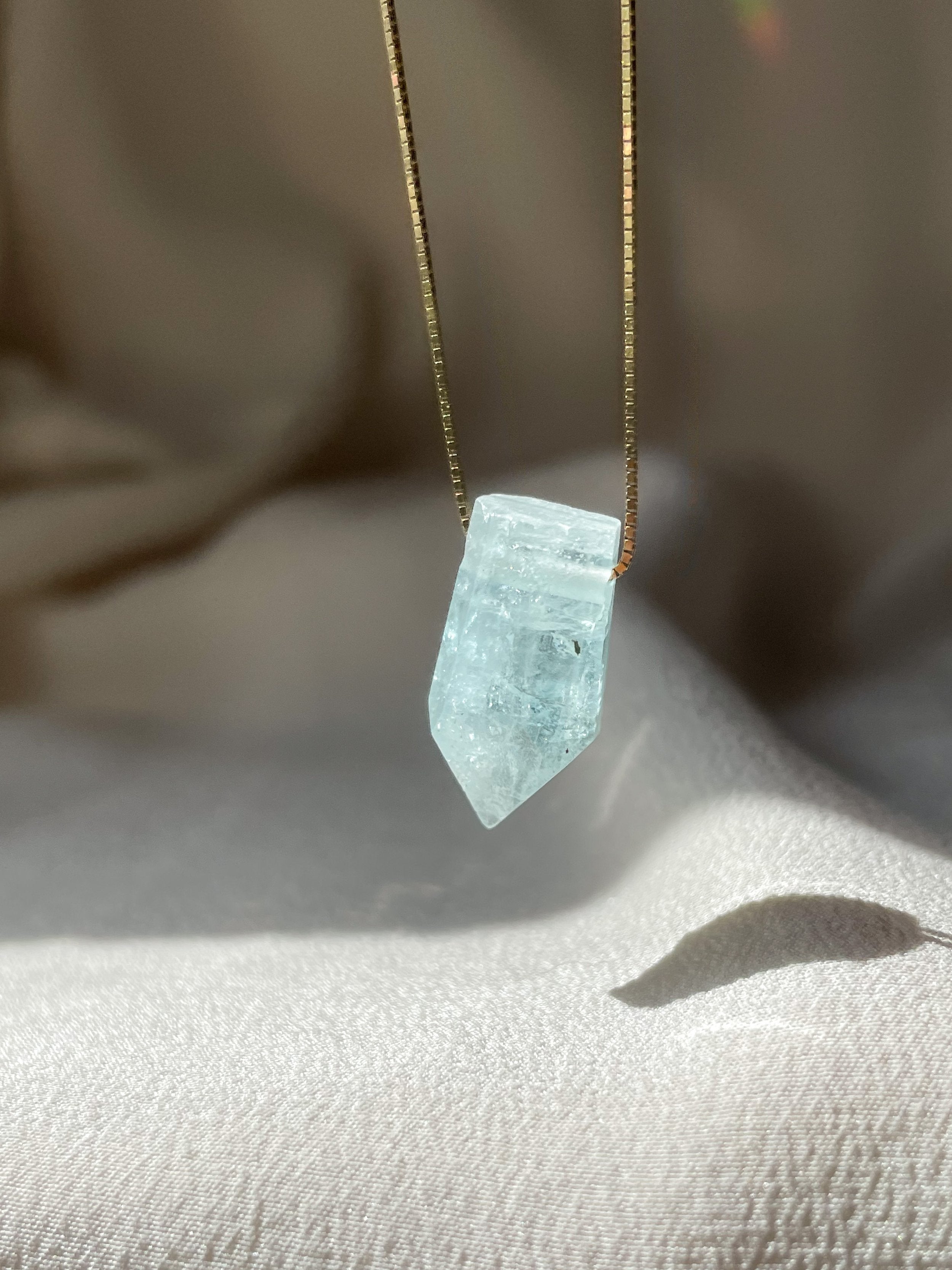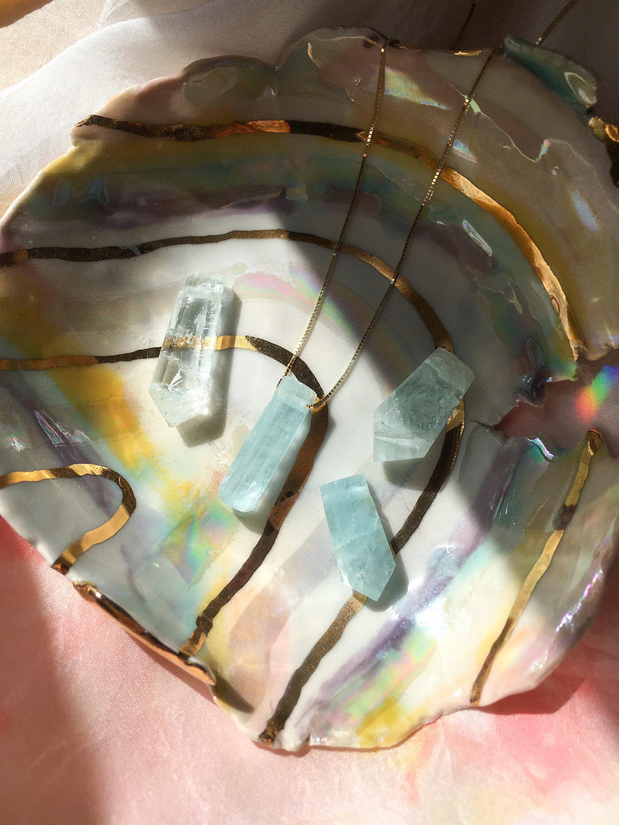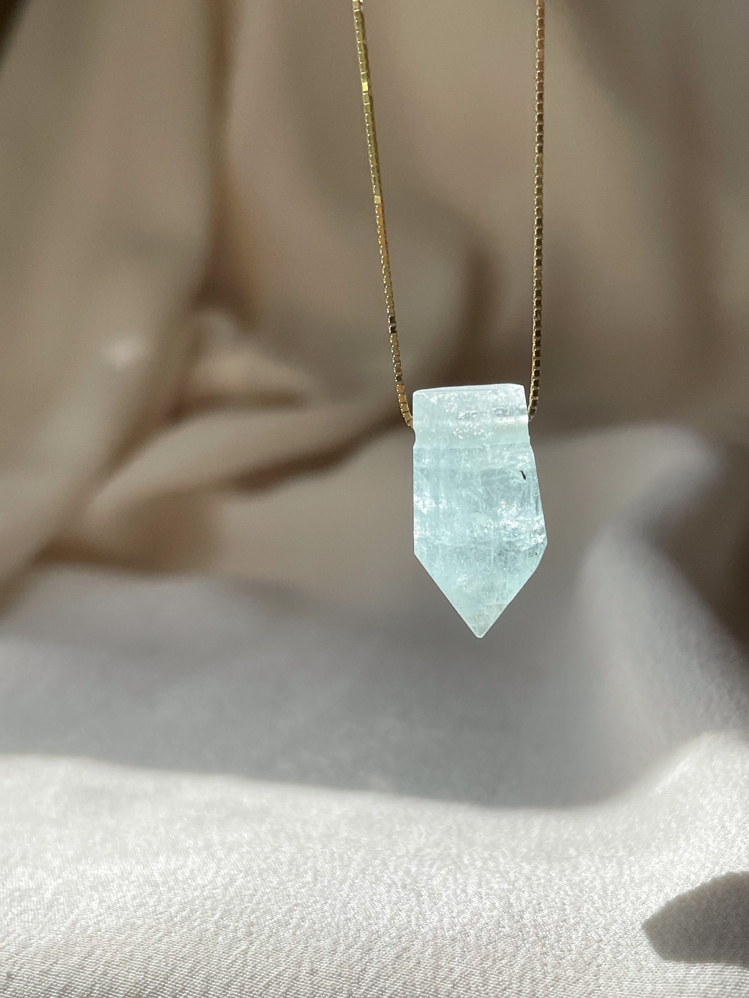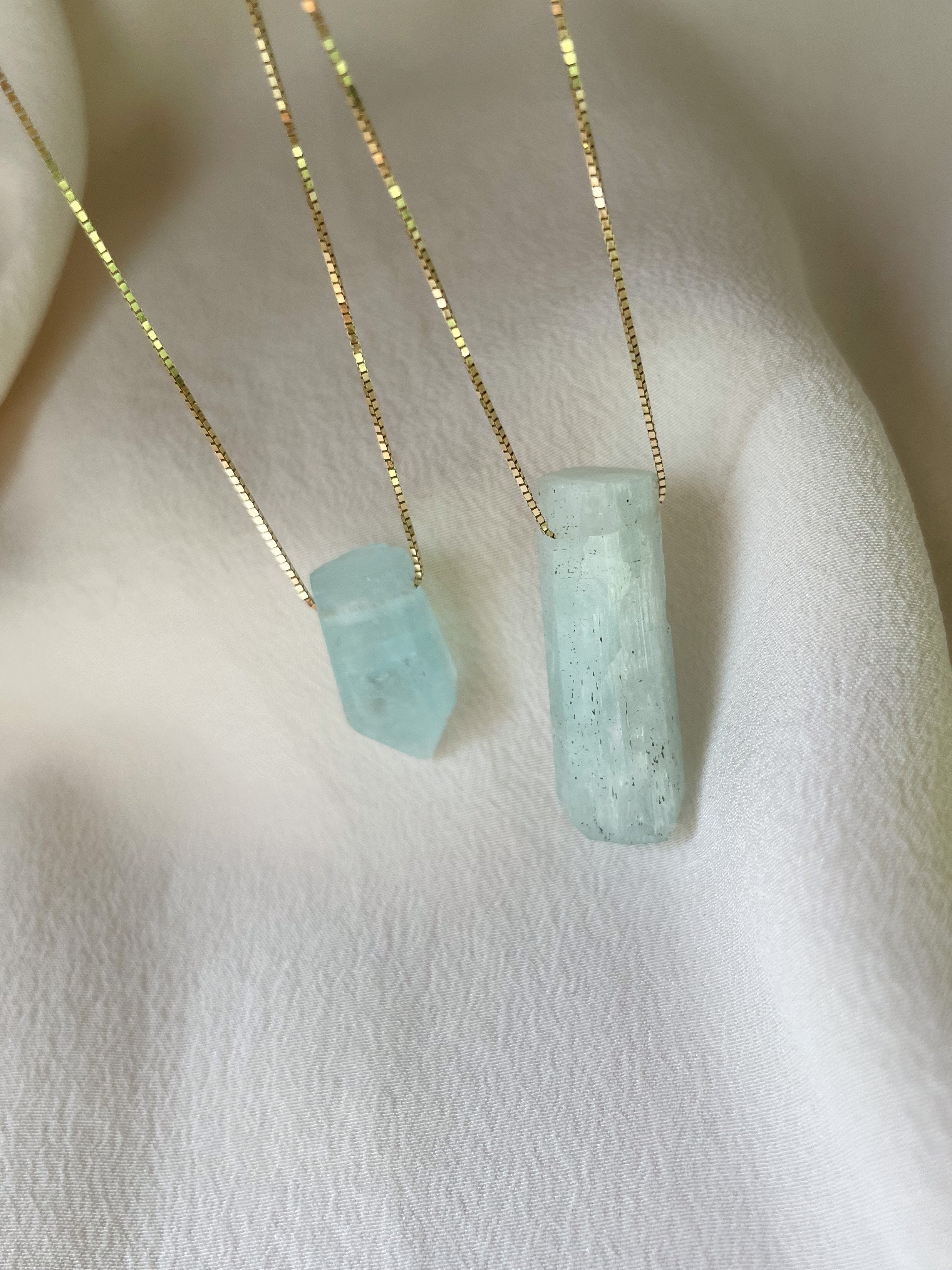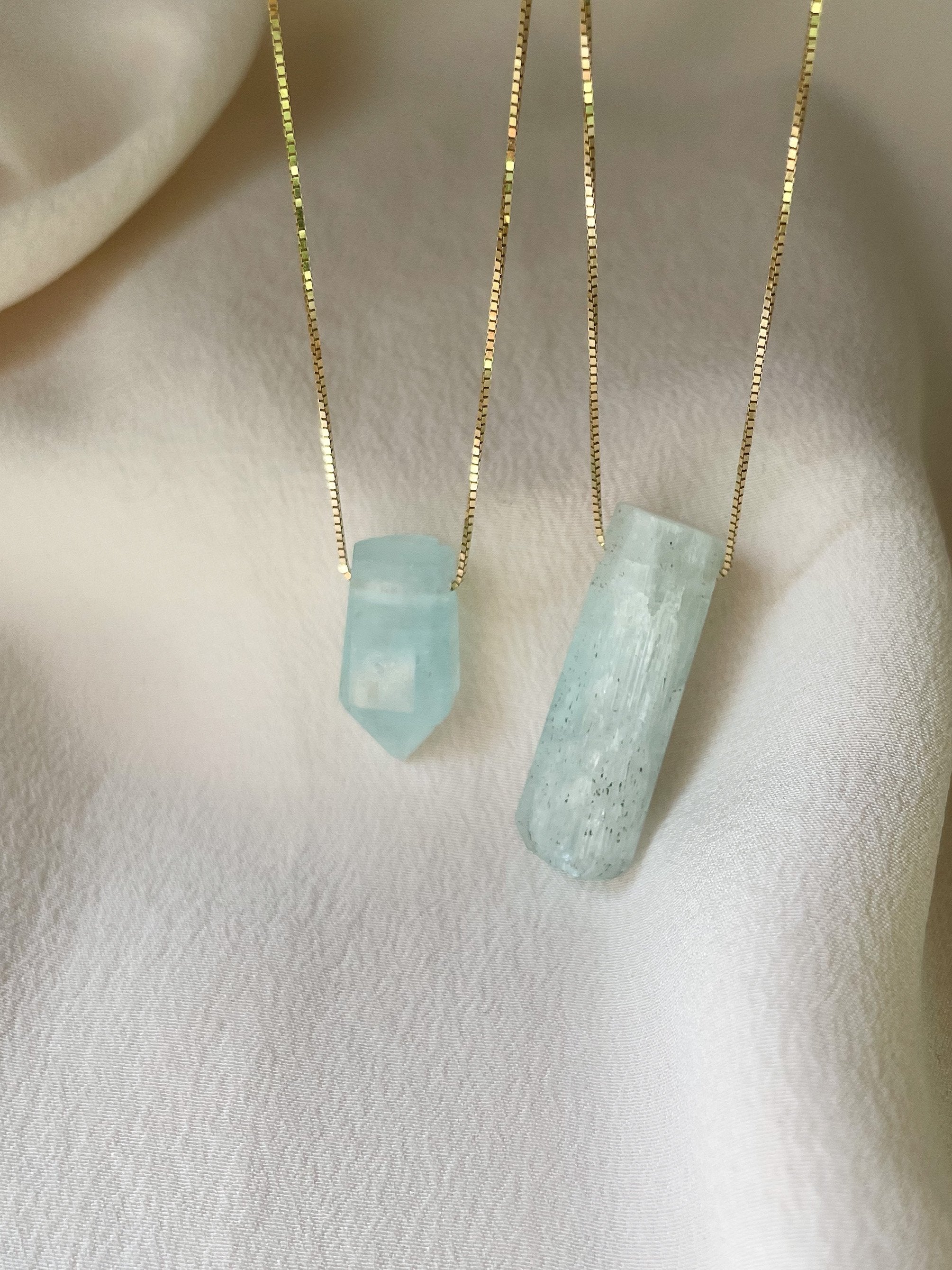 Aquamarine embodies the Divine Feminine energy which fills our oceans, its Latin name translating to water of the sea. It is calming and opens the platform for a truthful, cool, and calm way of communicating, and is empowering to those who are more sensitive and empathic. Aquamarine is a comforting stone, as it implores you to use your voice with confidence, while releasing stress or fear to create positive changes in your life and let go of what no longer belongs to you. According to ancient lore, Aquamarine was believed to be the treasure of the mermaids, and was used by sailors for good luck, fearlessness and protection. Aquamarine lends you feelings of courage during times that require you to challenge yourself from shying away from your dreams, assisting you to channel your inner Goddess to understand yourself on a deeper level and relate to those around you more intuitively.