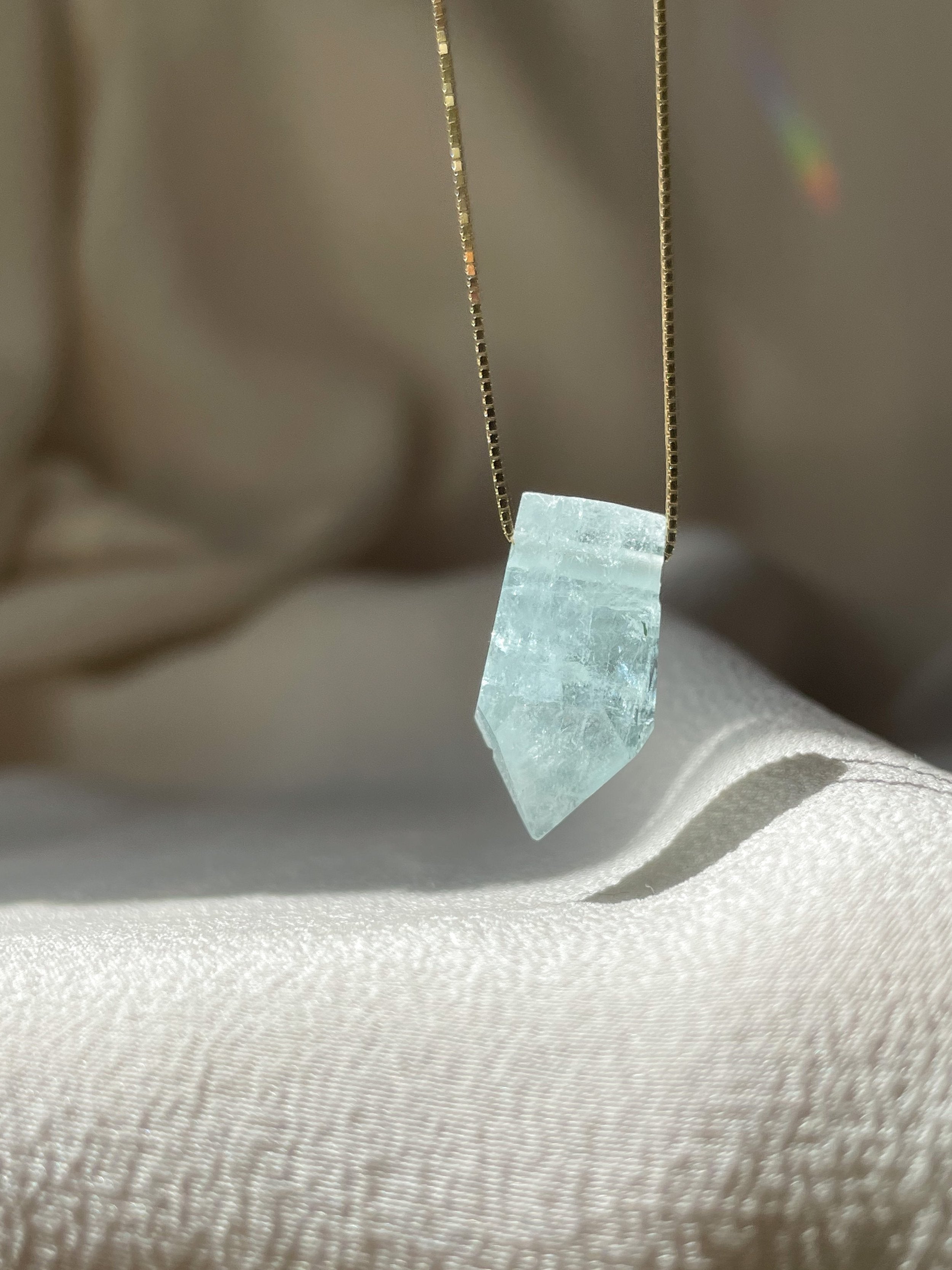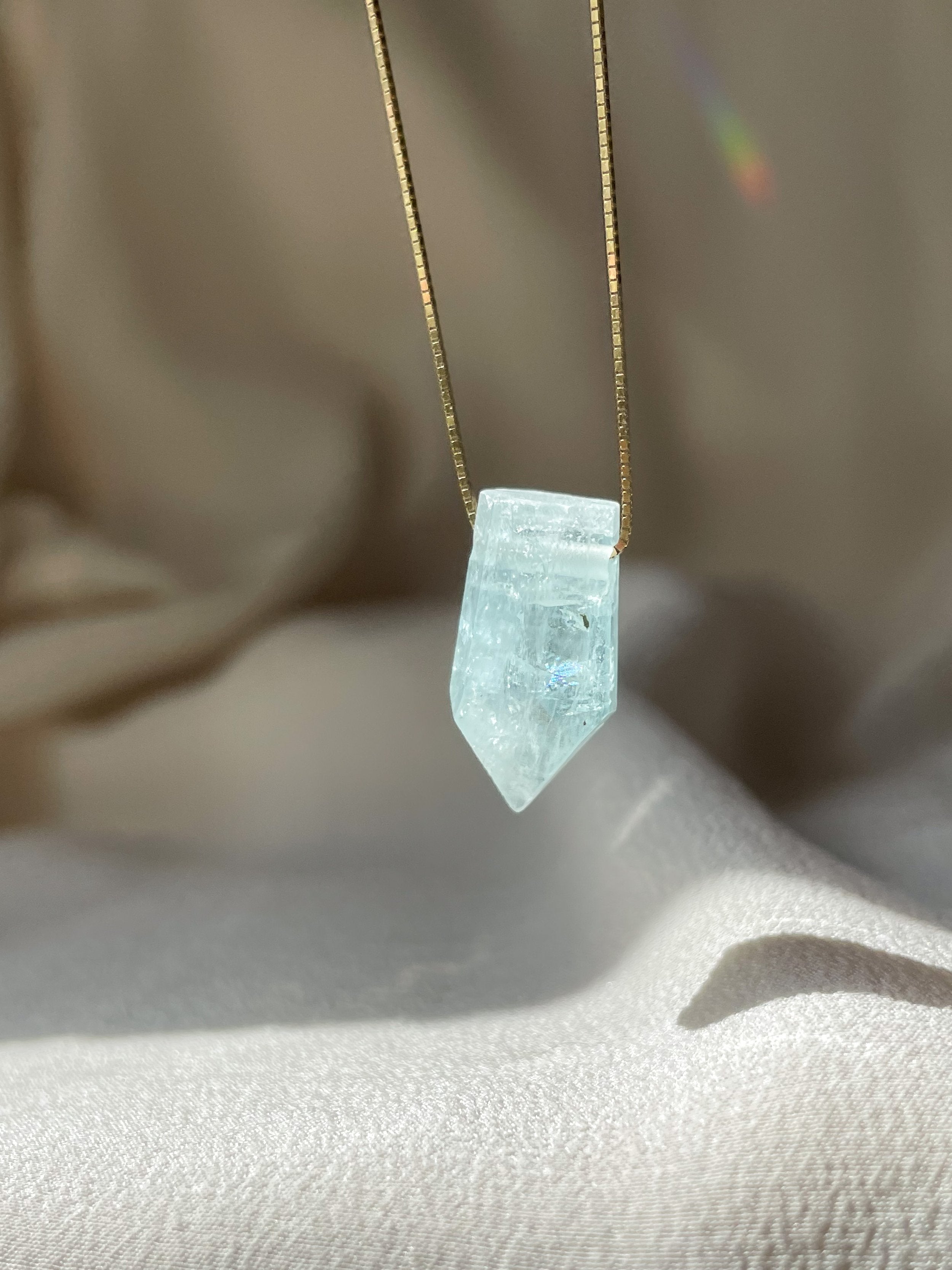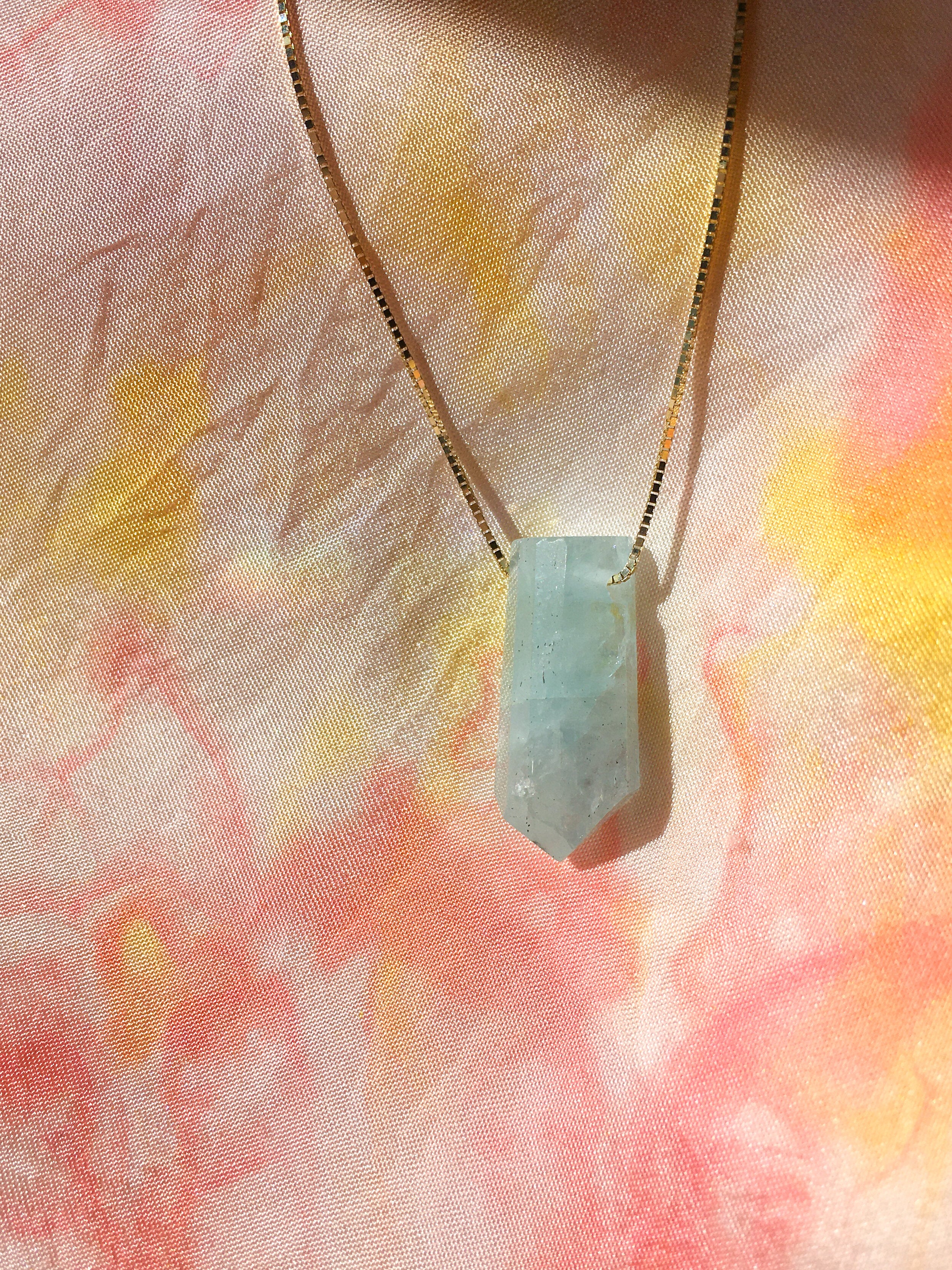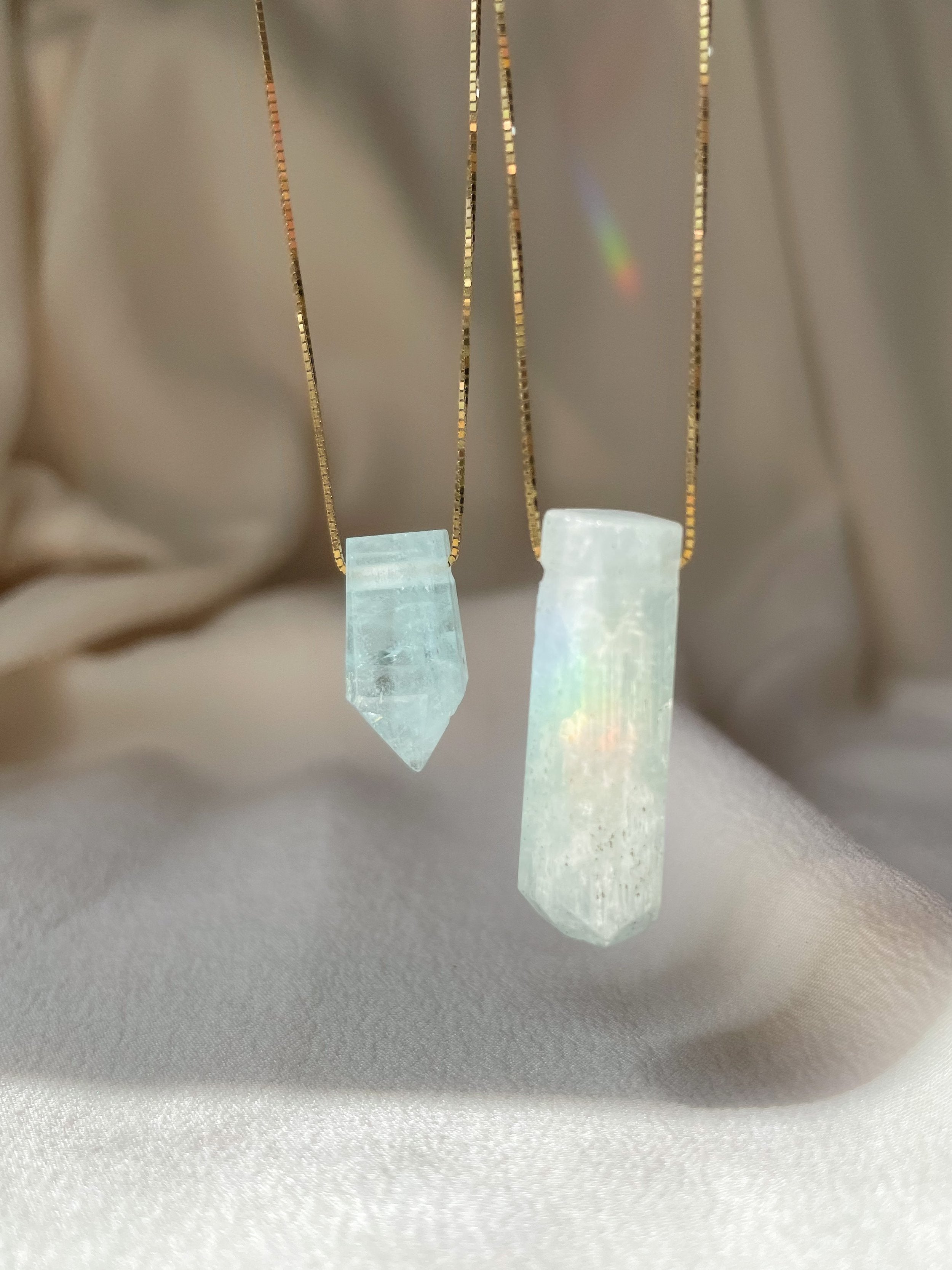 Aquamarine embodies the Divine Feminine energy which fills our oceans, its Latin name translating to water of the sea. It is calming and opens the platform for a truthful, cool, and calm way of communicating, and is empowering to those who are more sensitive and empathic. Aquamarine is a comforting stone, as it implores you to use your voice with confidence, while releasing stress or fear to create positive changes in your life and let go of what no longer belongs to you. According to ancient lore, Aquamarine was believed to be the treasure of the mermaids, and was used by sailors for good luck, fearlessness and protection. Aquamarine lends you feelings of courage during times that require you to challenge yourself from shying away from your dreams, assisting you to channel your inner Goddess to understand yourself on a deeper level and relate to those around you more intuitively.