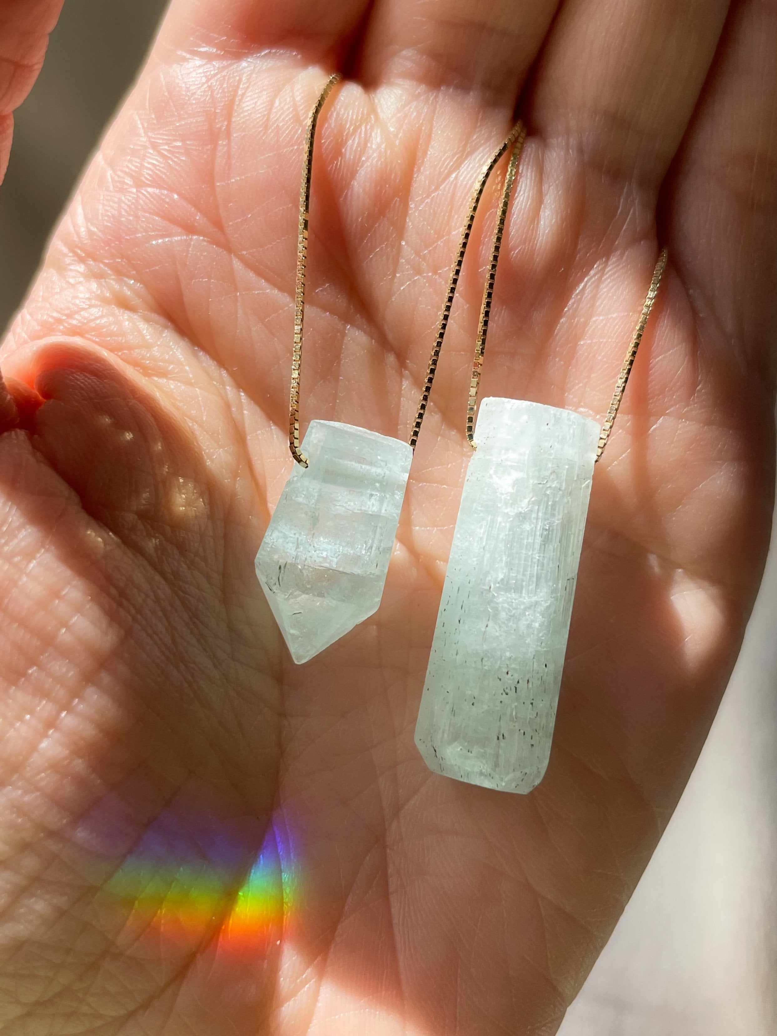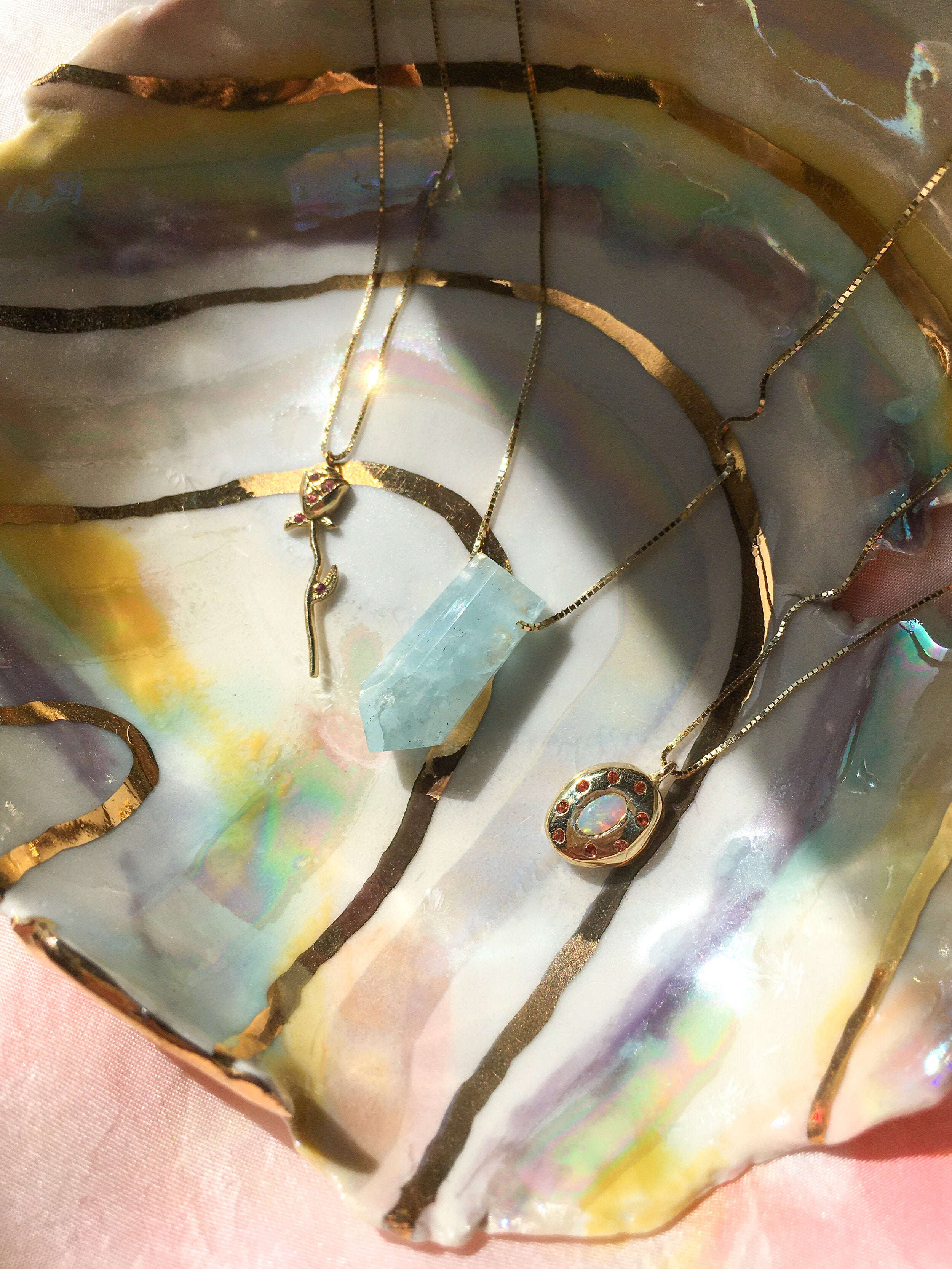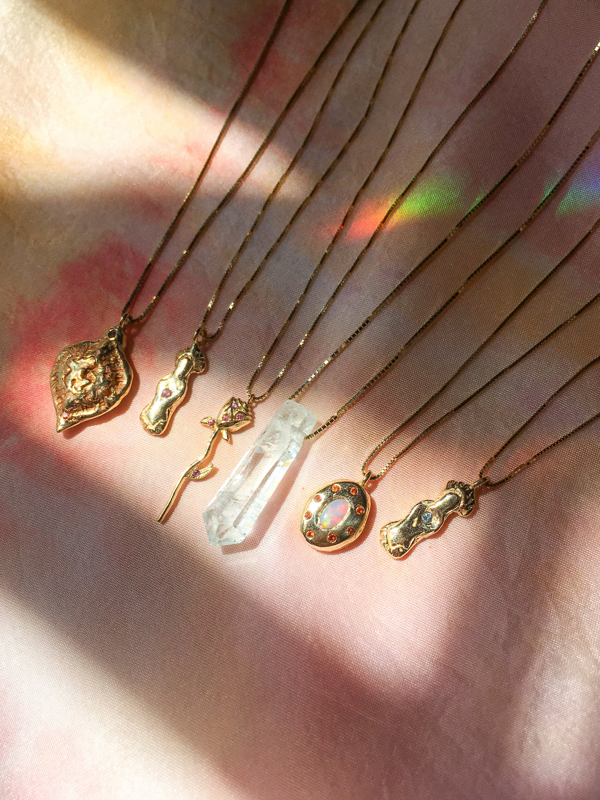 Each necklace features a one-of-a-kind stone and has been cleansed with selenite, lavender and sage under a full moon.