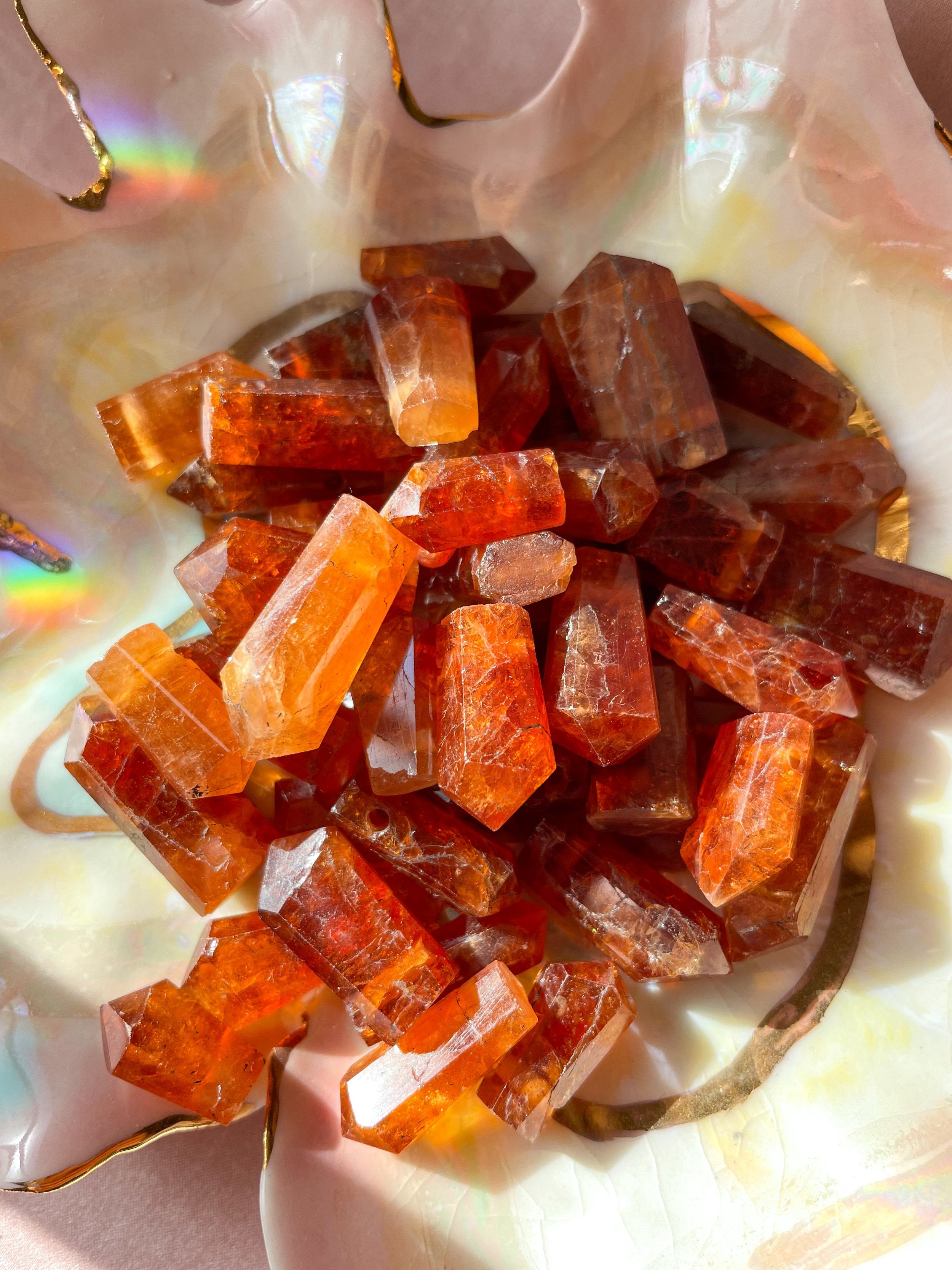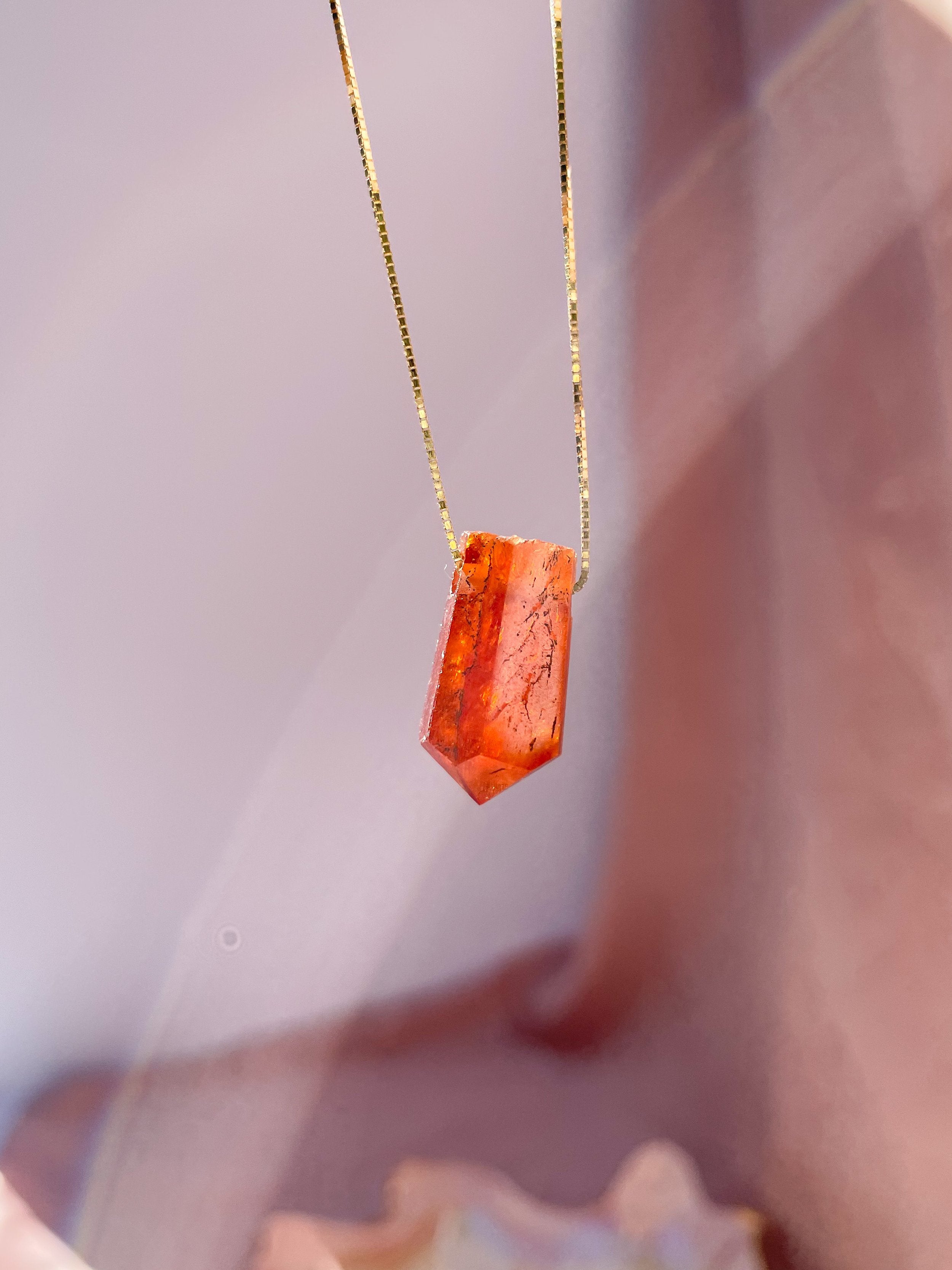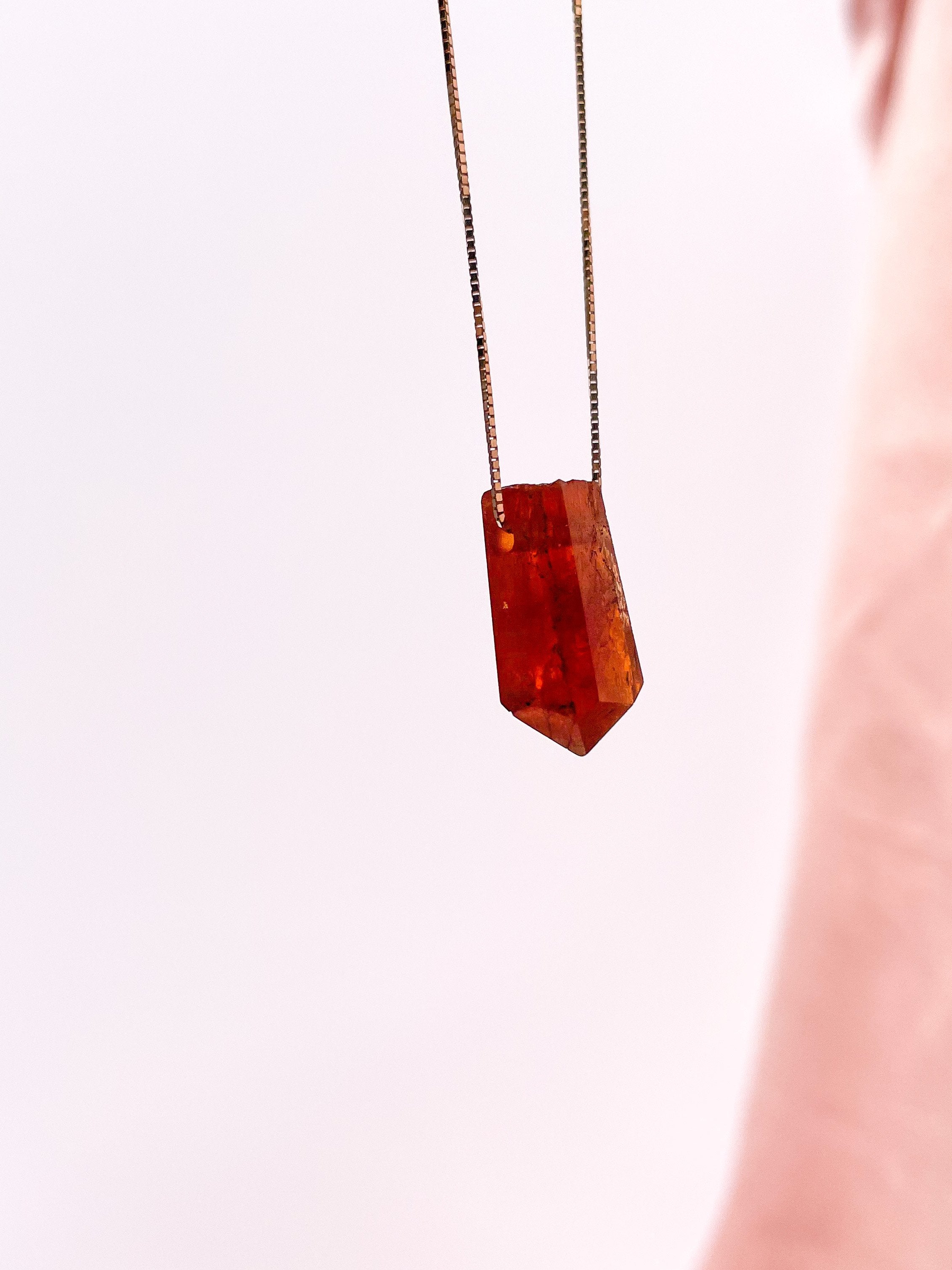 A powerful passion stone determined to spark a fire within, this particular specimen is a form of Grossular Garnet called Hessonite Garnet. It is intensely energizing, grounding and protecting while simultaneously igniting love and devotion, stimulating kundalini energy to activate self-confidence with a sultry vibe. Hessonite Garnet is supportive during times when life feels fragmented or traumatic, bringing hope and courage to transform crisis into challenge. Garnet influences the release of inhibitions, behavioral patterns and old ideas that no longer serve you, including resistance or unconscious self-sabotage. Hessonite Garnet amplifies surrounding crystal energies, boosts success in business, and helps you embody self-respect and appreciation. It is intensely motivating, reminding you to work hard for career and goal-oriented passions, without forcing you to burn yourself out.