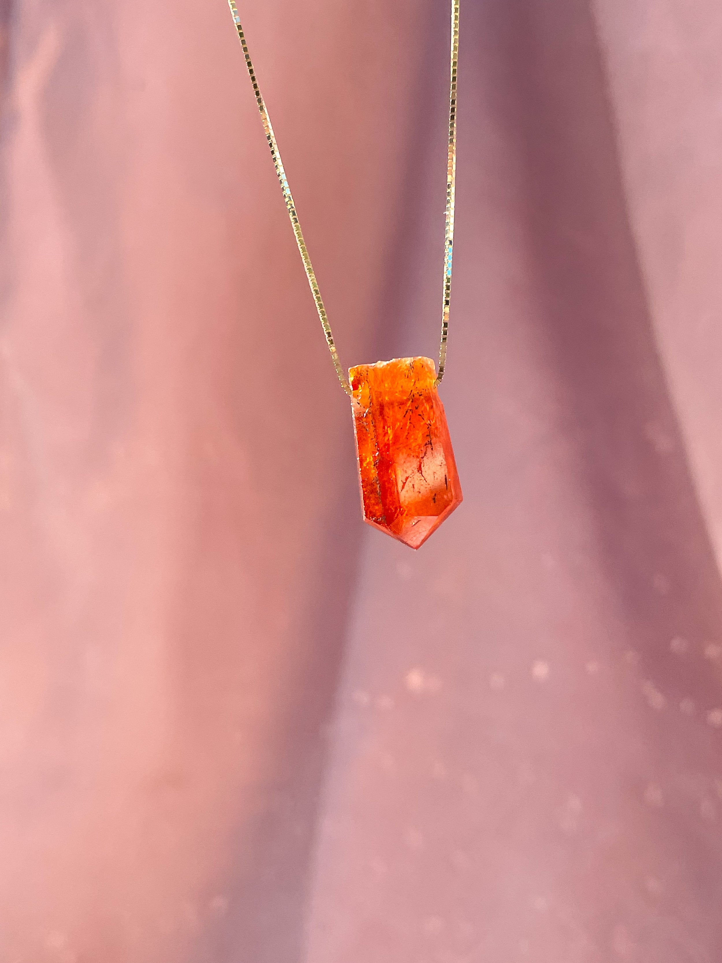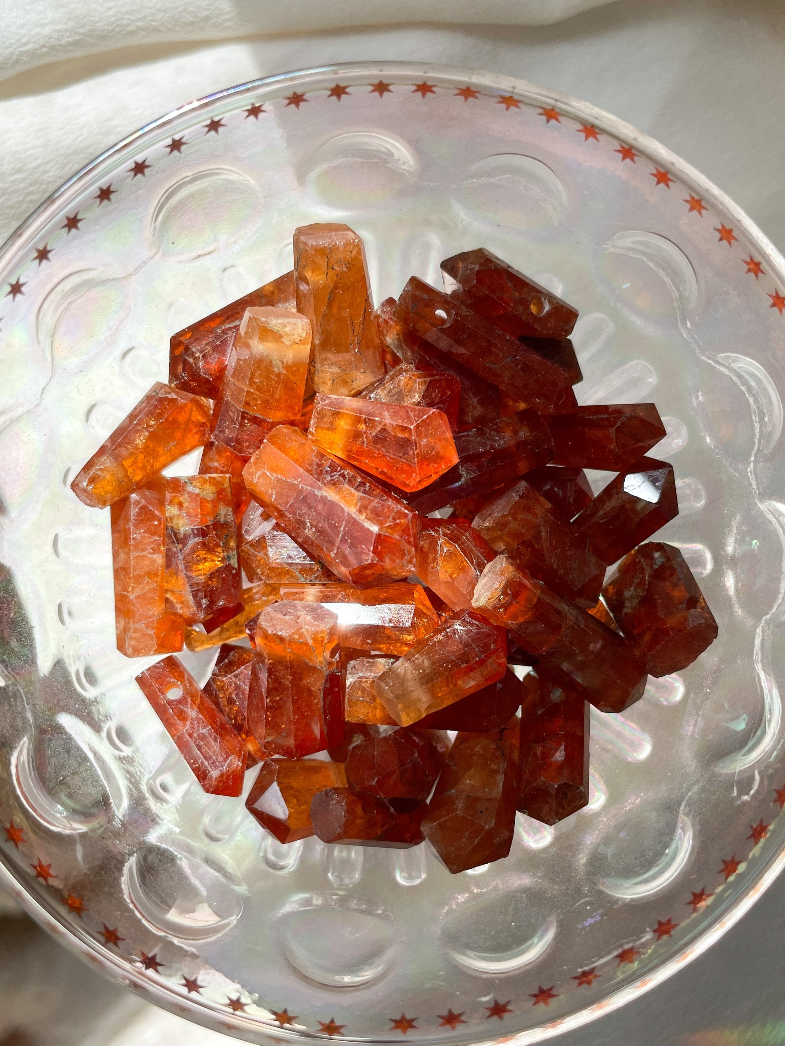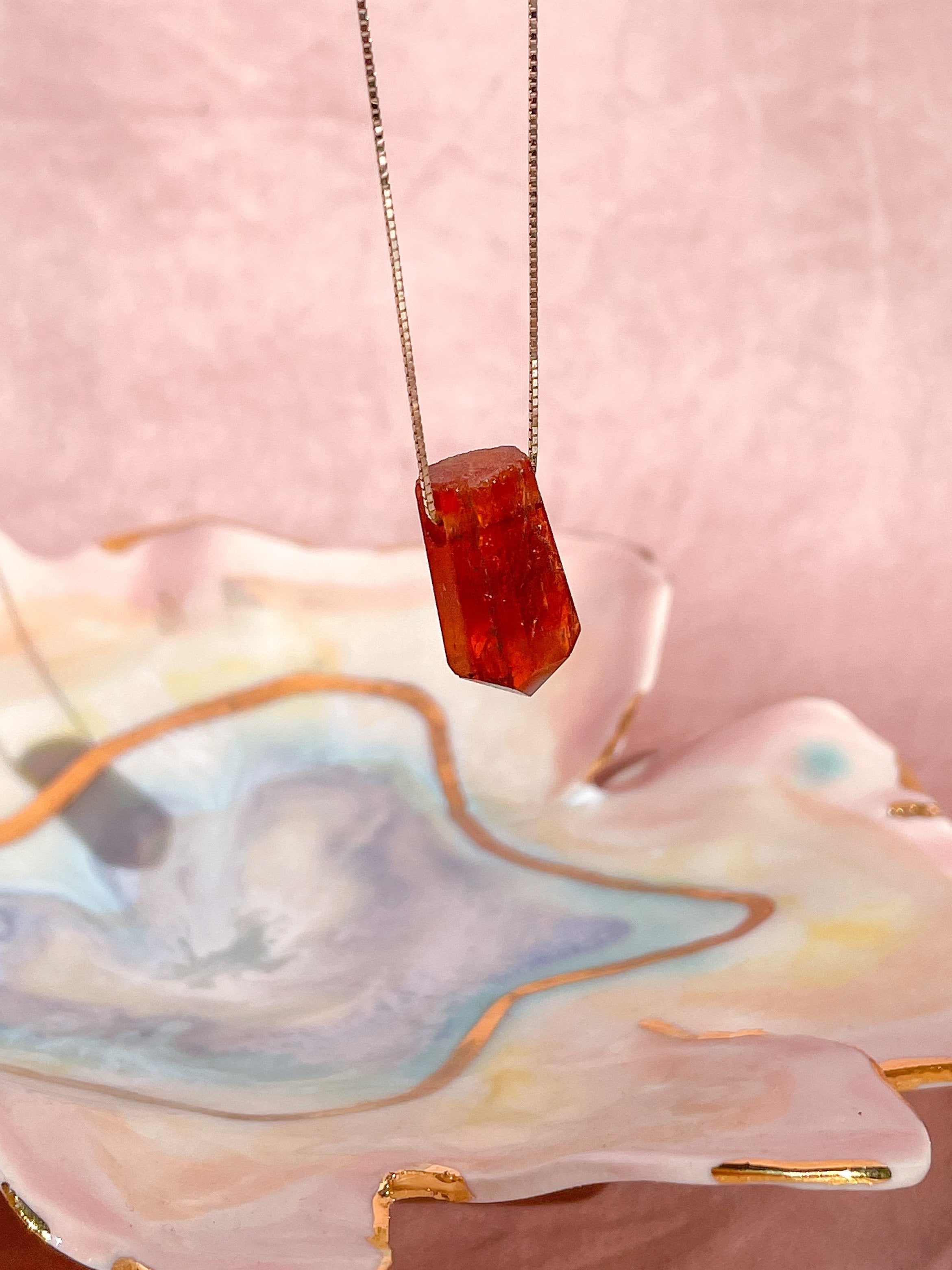 A powerful passion stone determined to spark a fire within, this particular specimen is a form of Grossular Garnet called Hessonite Garnet. It is intensely energizing, grounding and protecting while simultaneously igniting love and devotion, stimulating kundalini energy to activate self-confidence with a sultry vibe. Hessonite Garnet is supportive during times when life feels fragmented or traumatic, bringing hope and courage to transform crisis into challenge. Garnet influences the release of inhibitions, behavioral patterns and old ideas that no longer serve you, including resistance or unconscious self-sabotage. Hessonite Garnet amplifies surrounding crystal energies, boosts success in business, and helps you embody self-respect and appreciation. It is intensely motivating, reminding you to work hard for career and goal-oriented passions, without forcing you to burn yourself out.