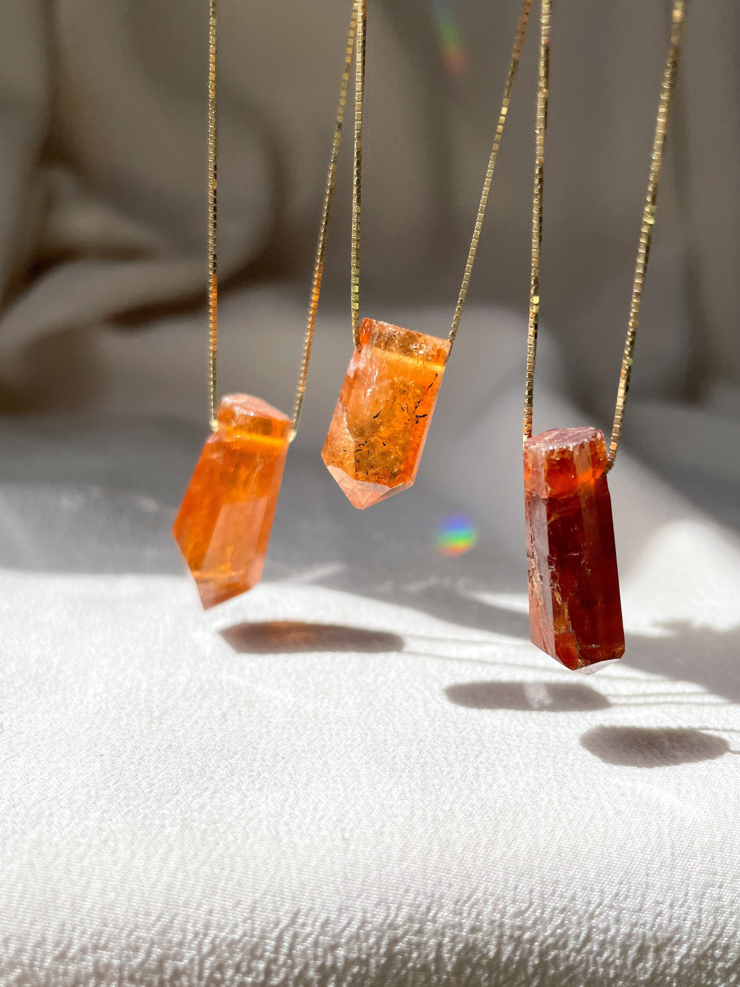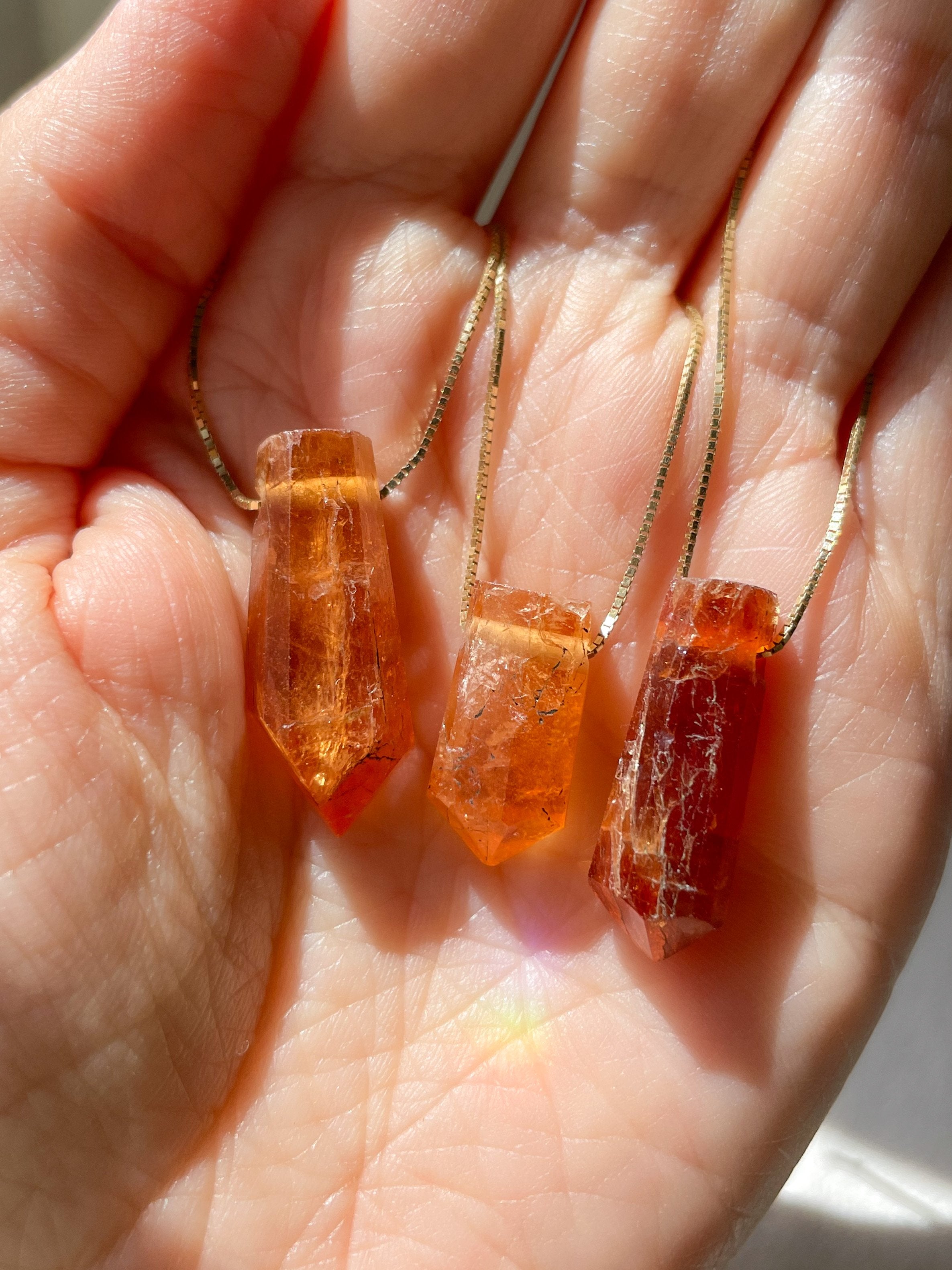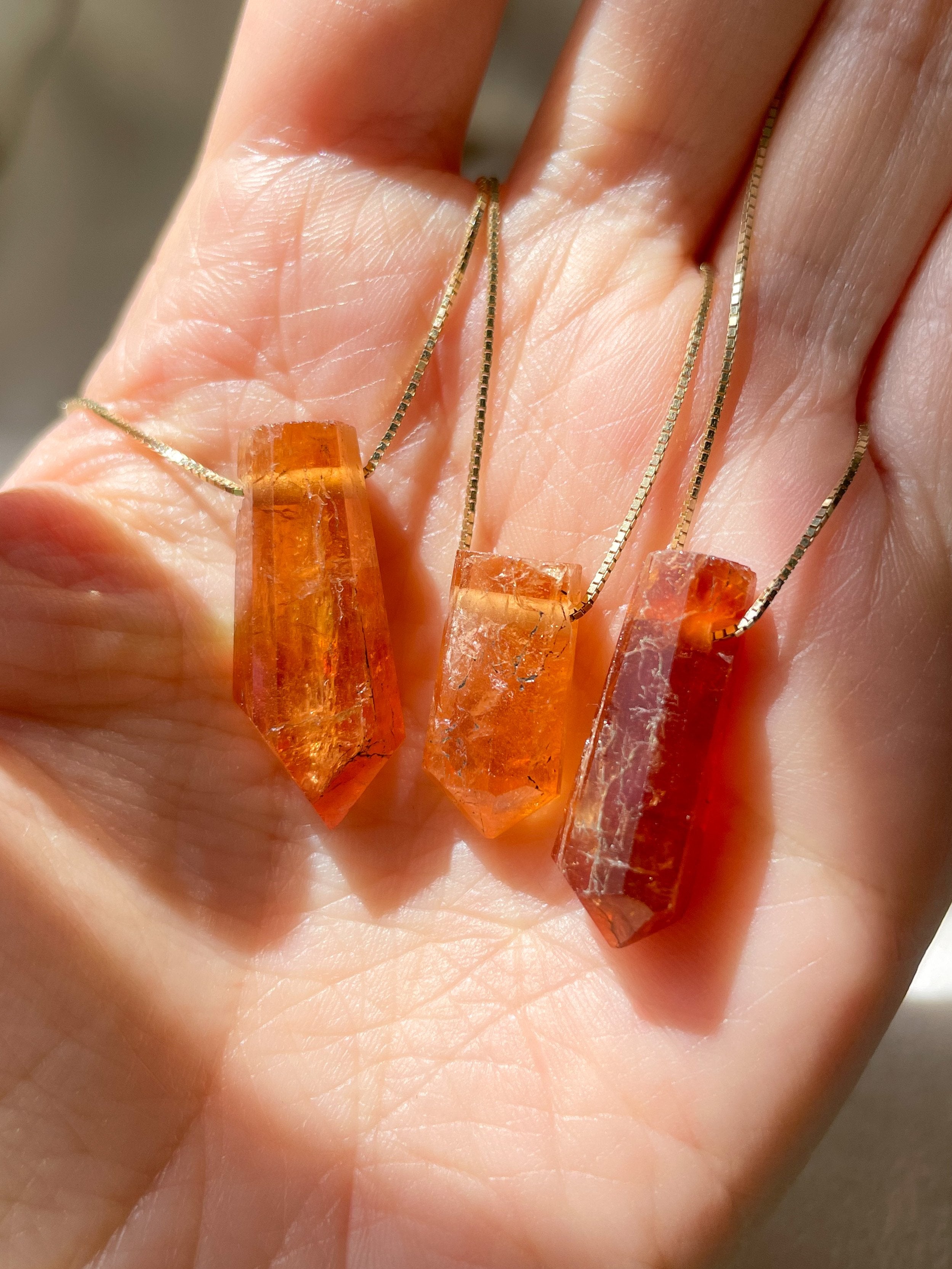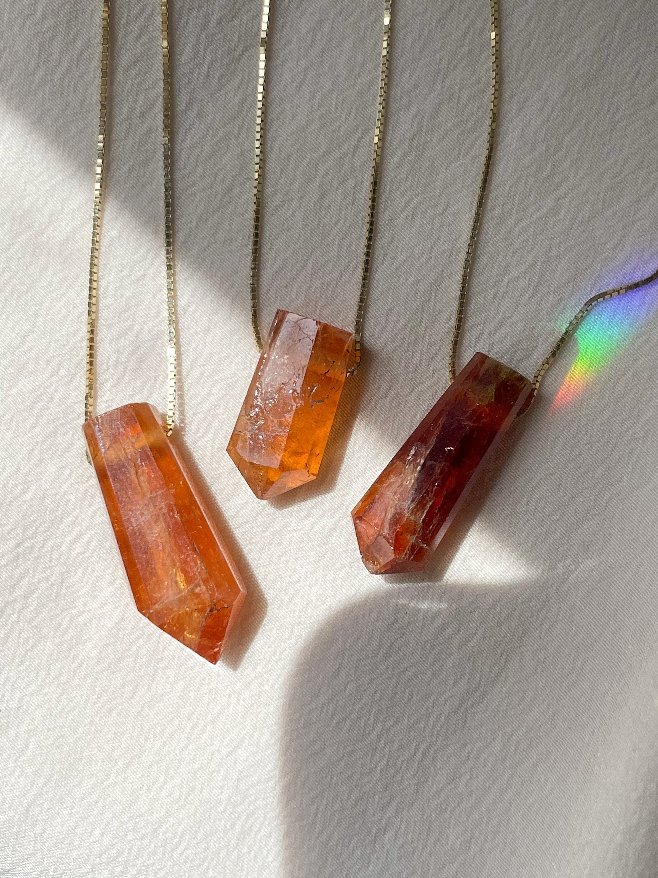 Each necklace features a one-of-a-kind stone on a 14 karat gold filled chain, and has been cleansed with selenite, lavender and sage under a full moon.