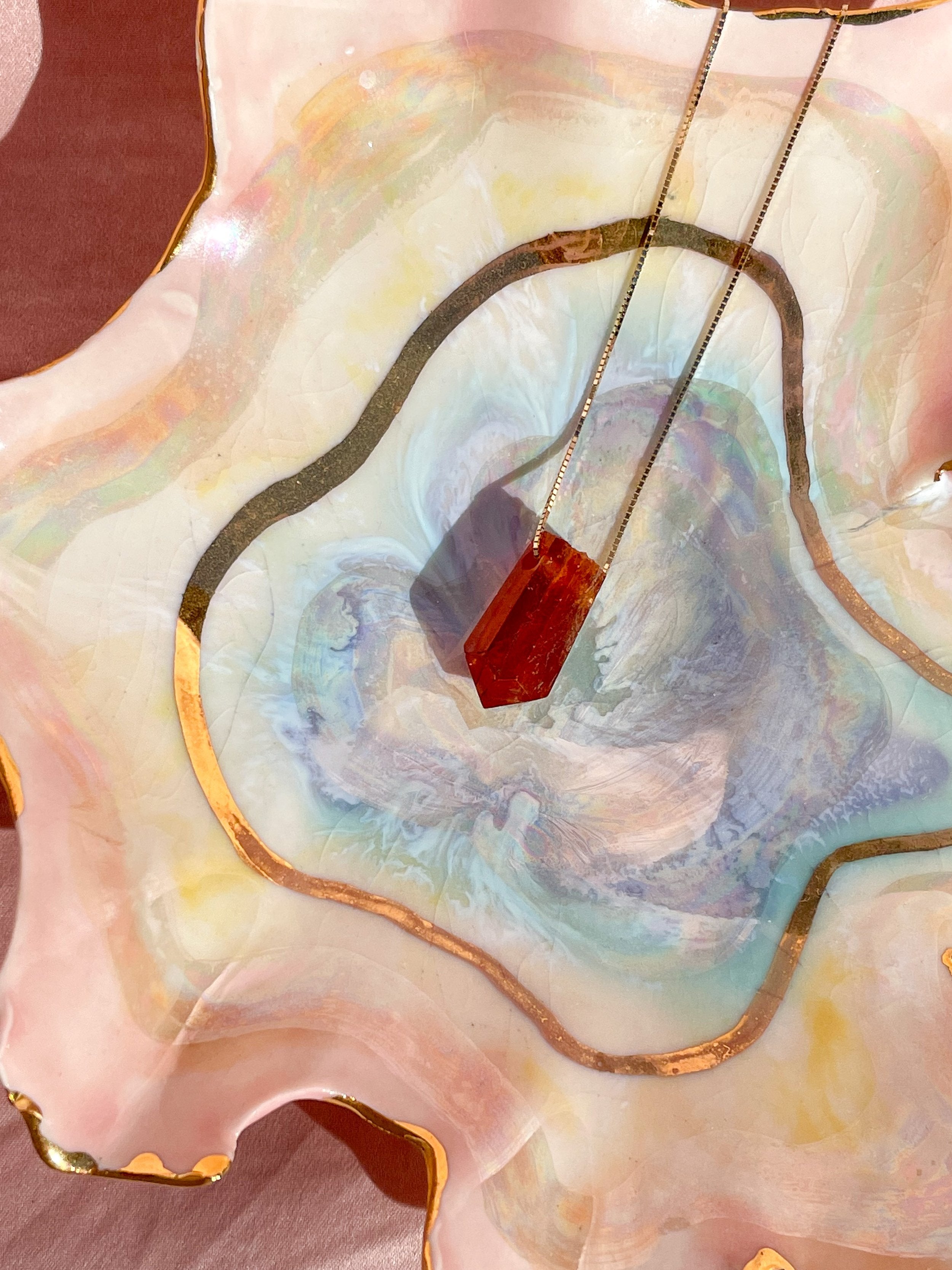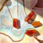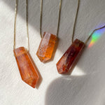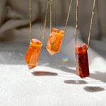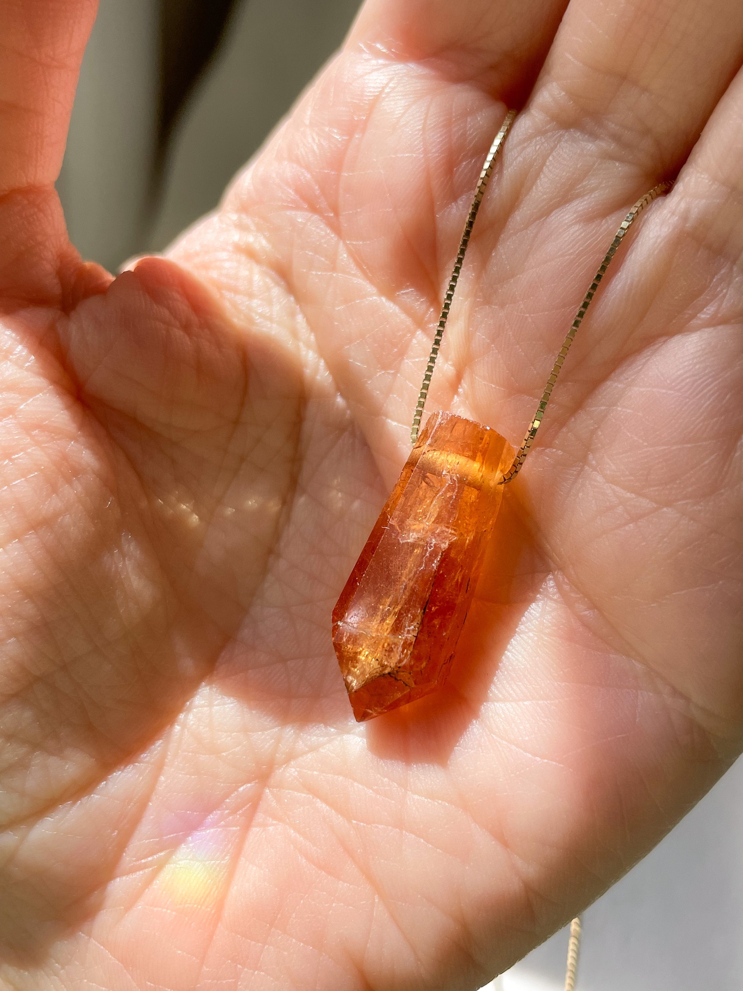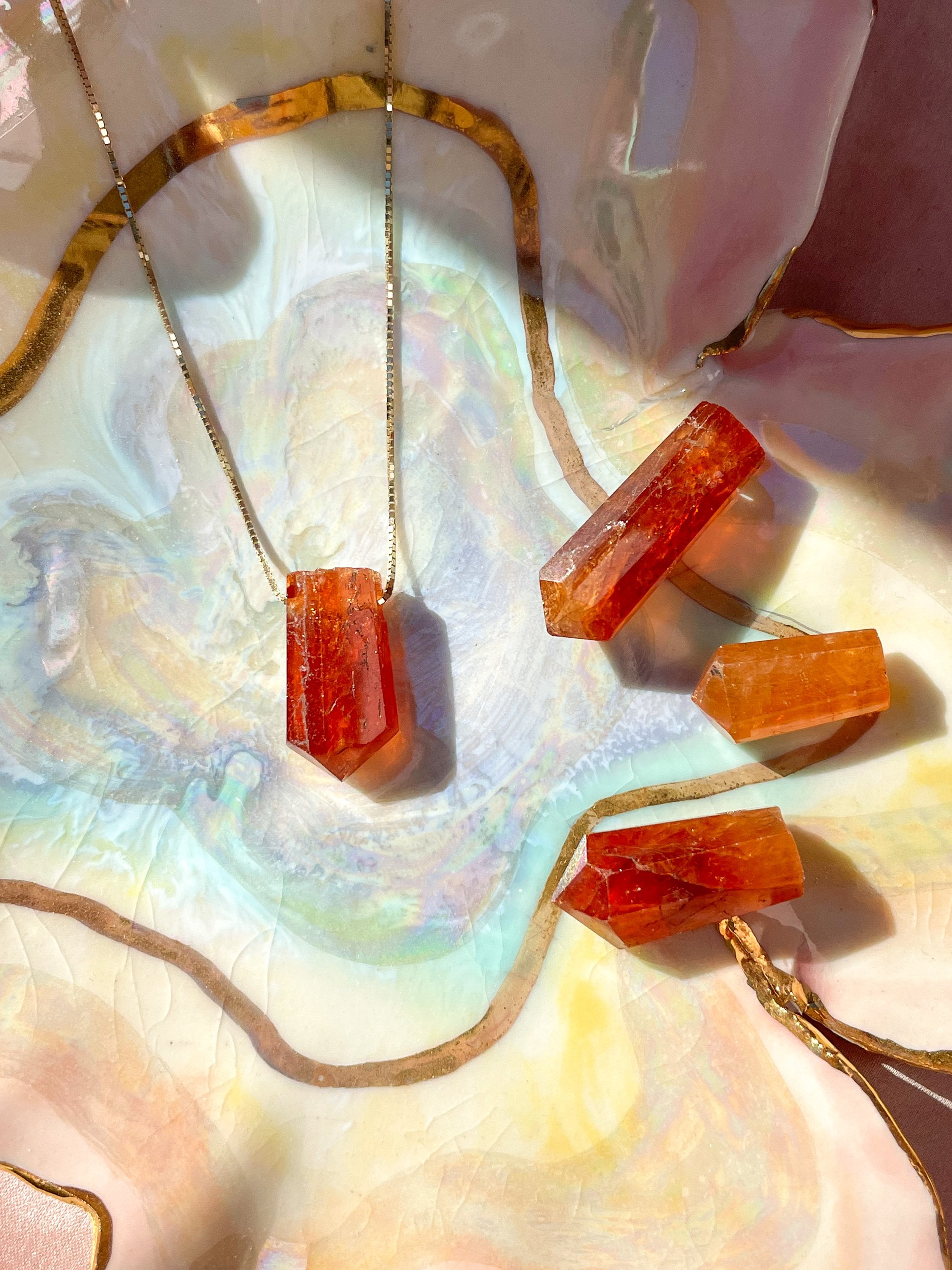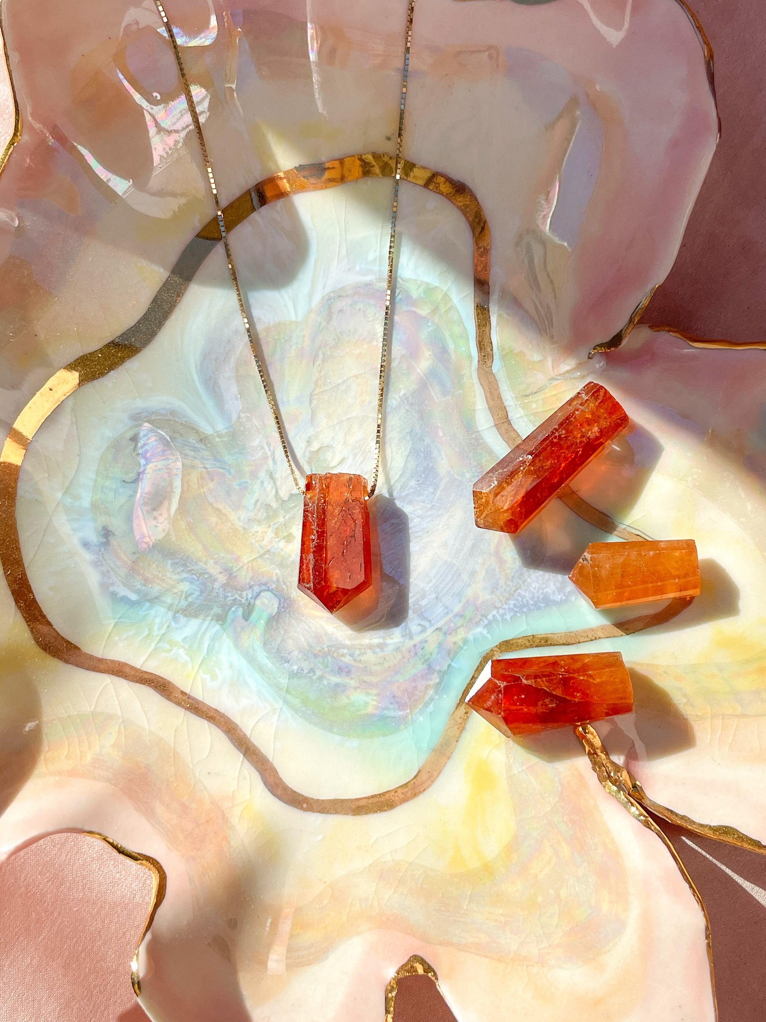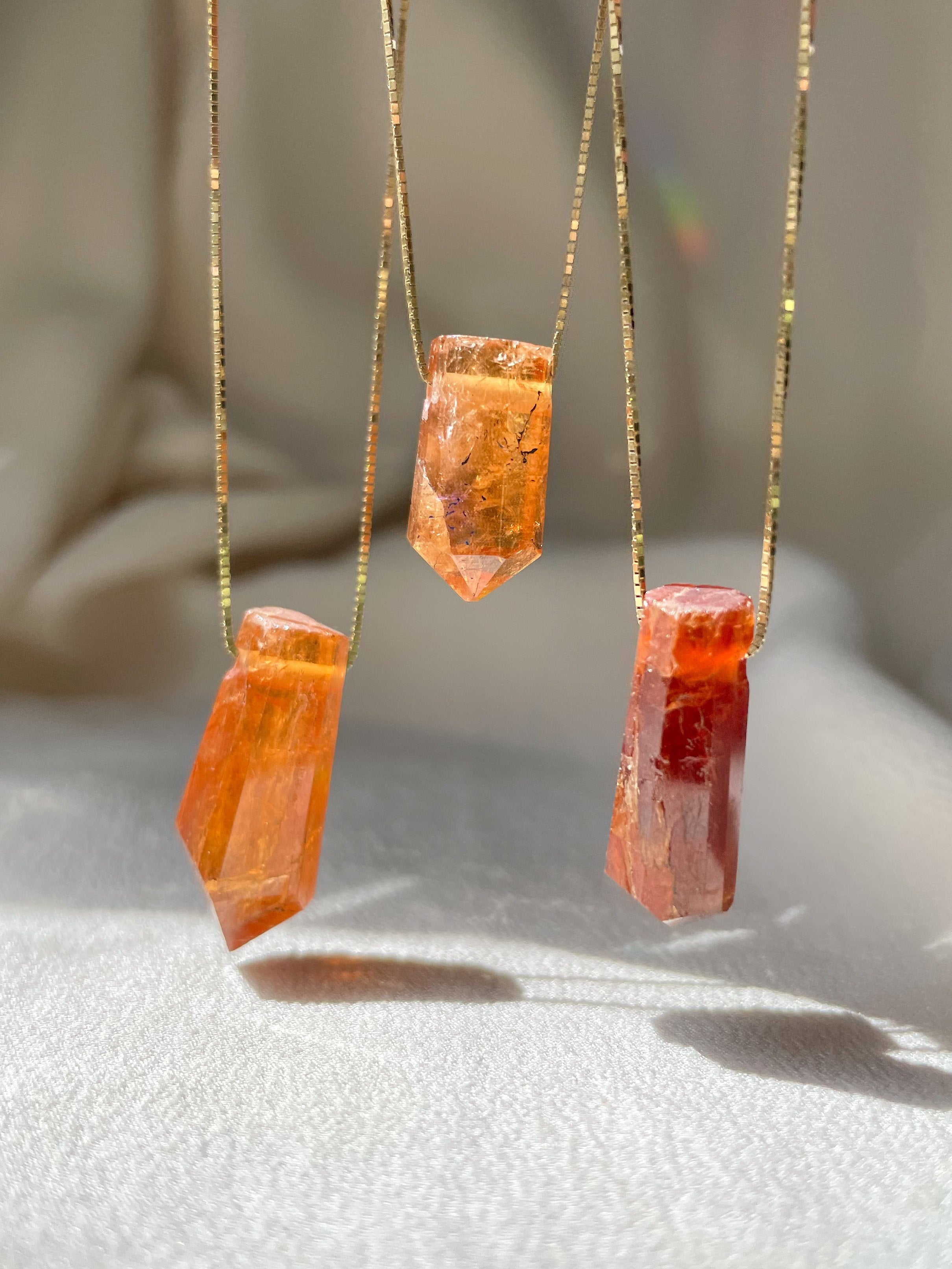 Each necklace features a one-of-a-kind stone on a 14 karat gold filled chain, and has been cleansed with selenite, lavender and sage under a full moon.