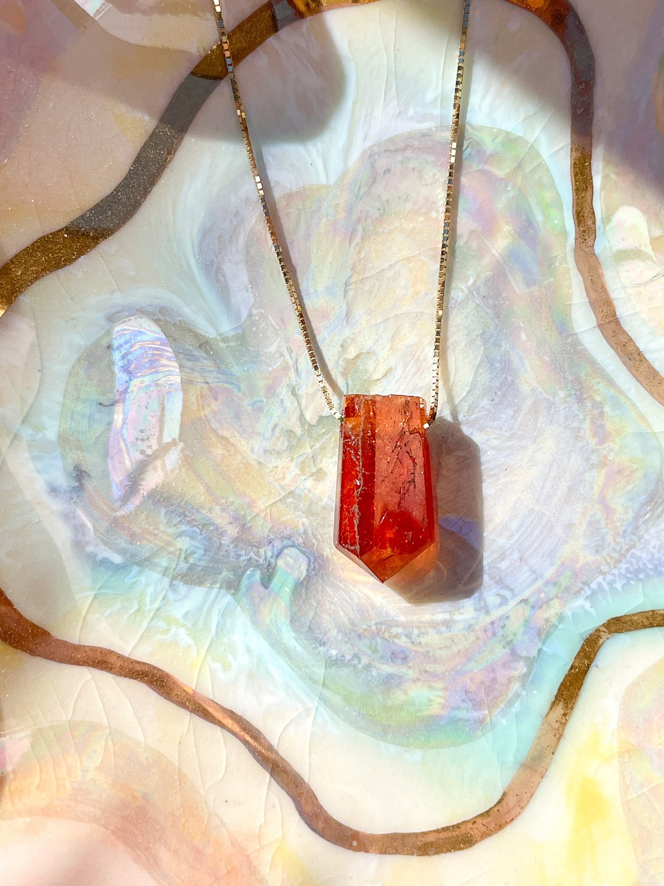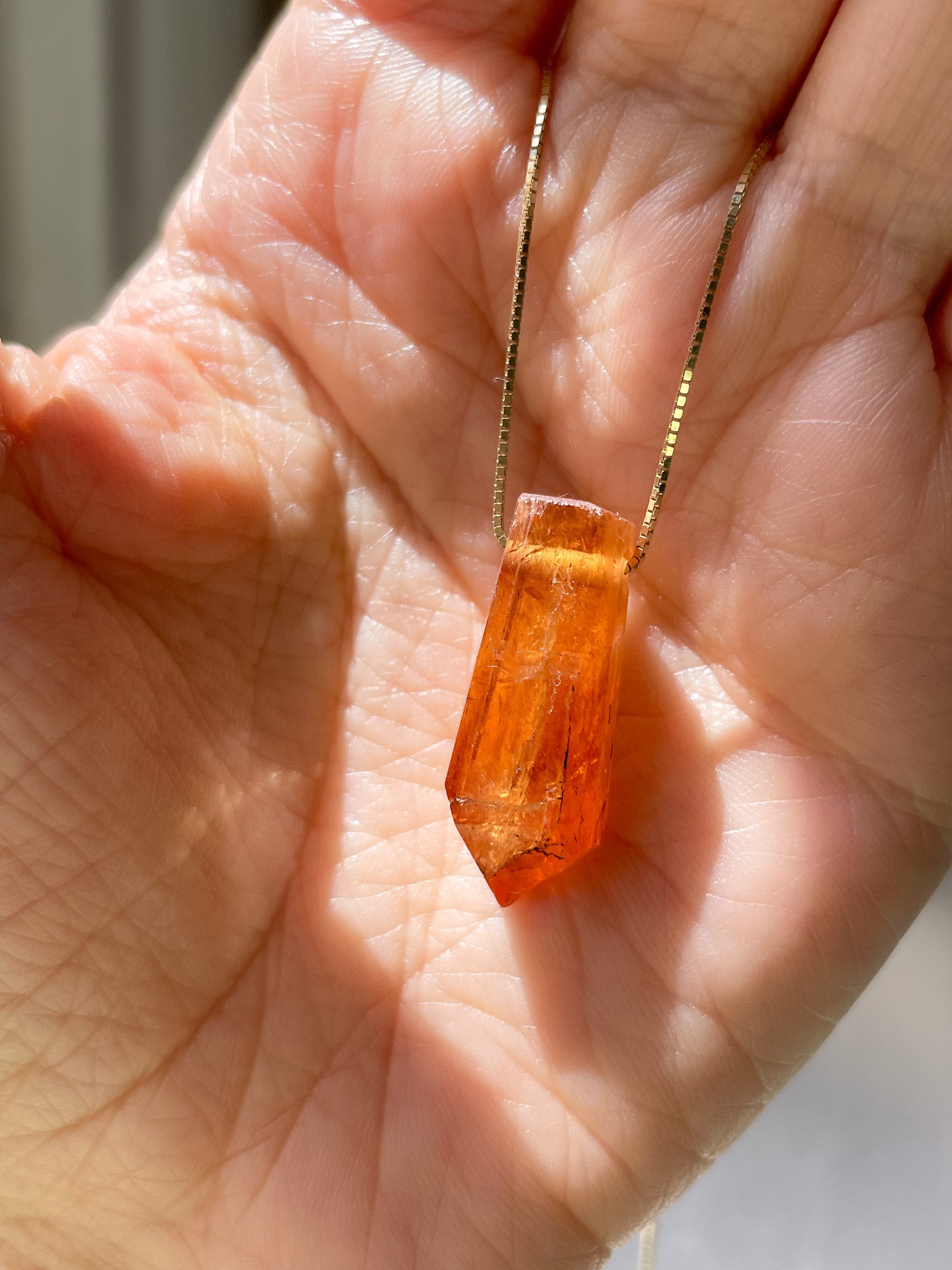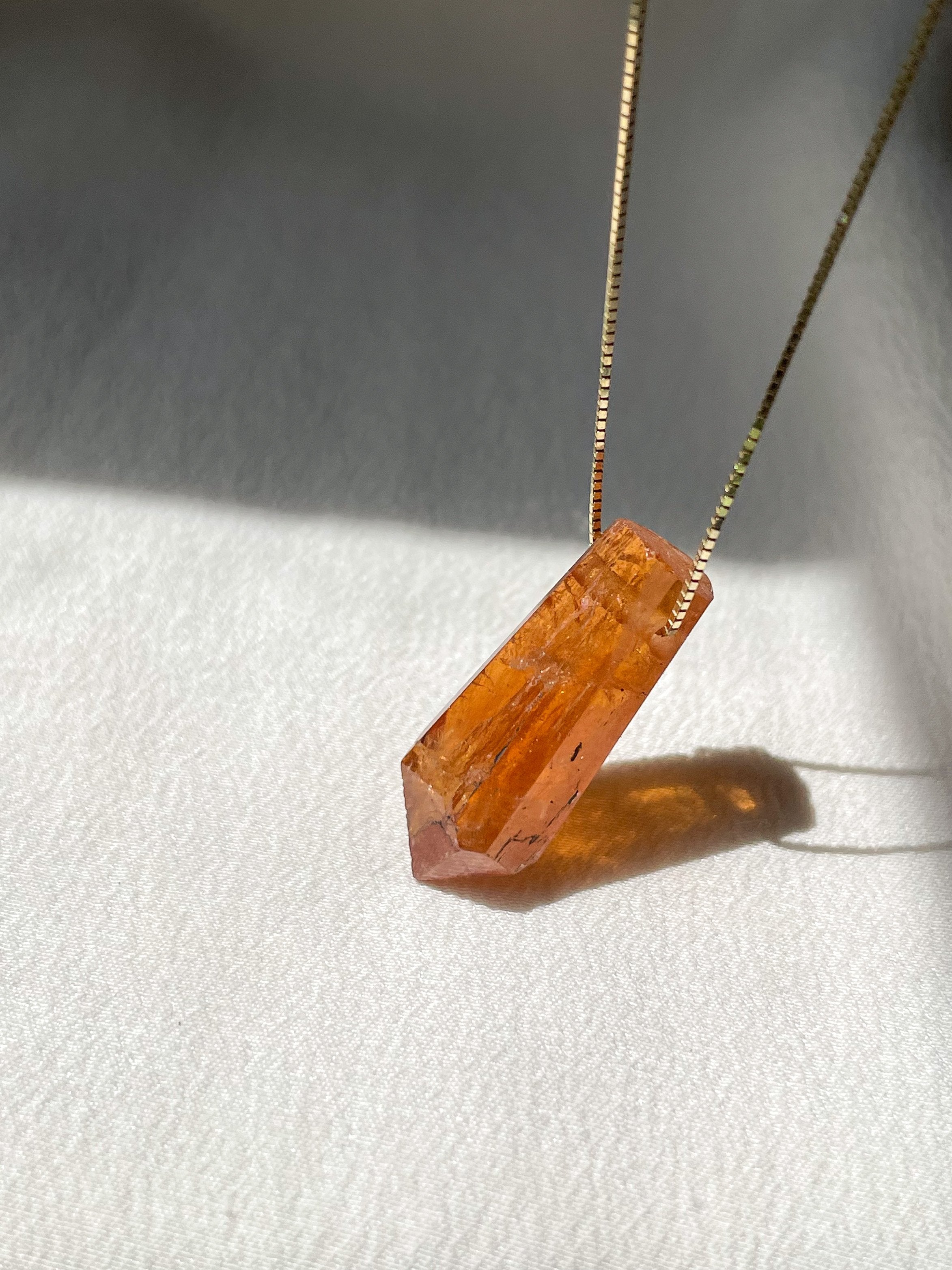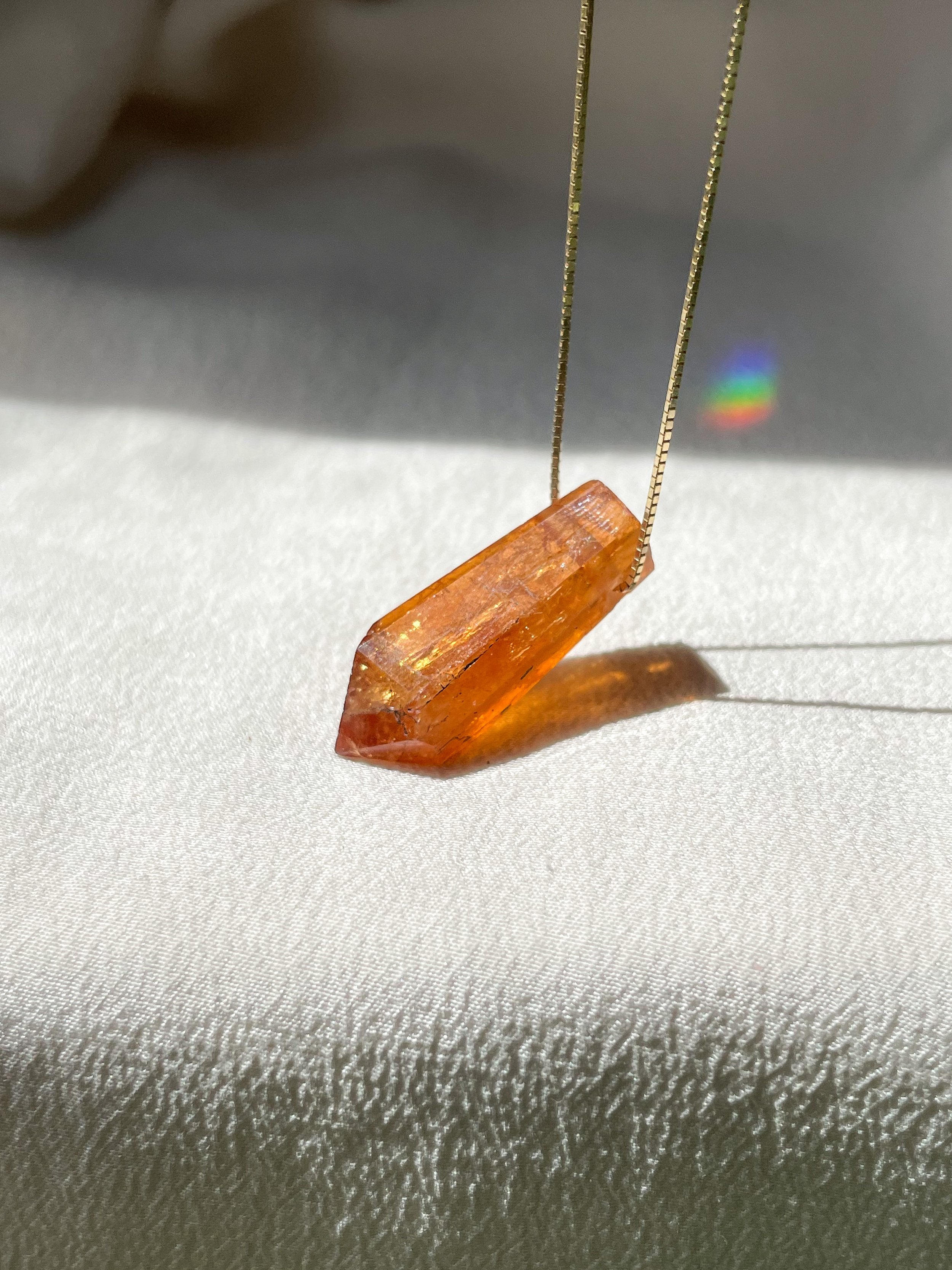 Each necklace features a one-of-a-kind stone on a 14 karat gold filled chain, and has been cleansed with selenite, lavender and sage under a full moon.