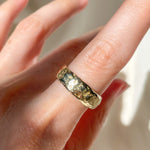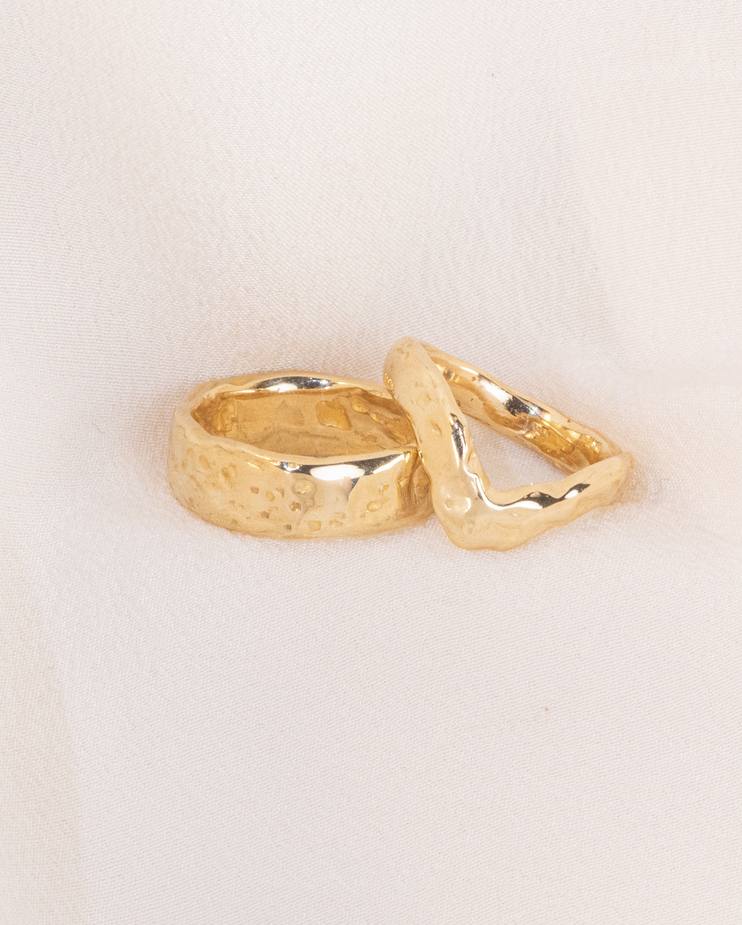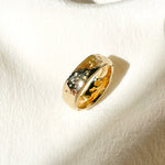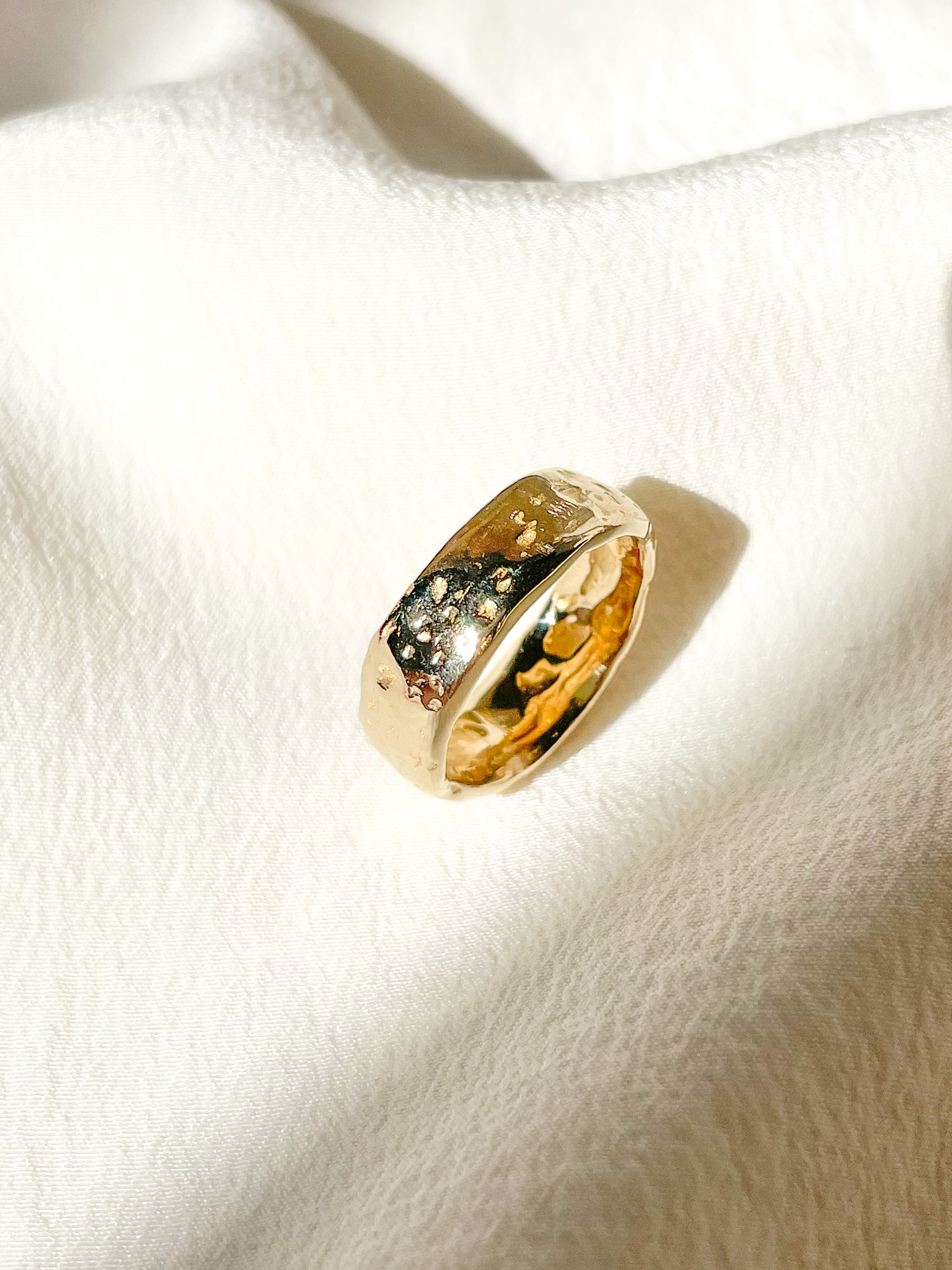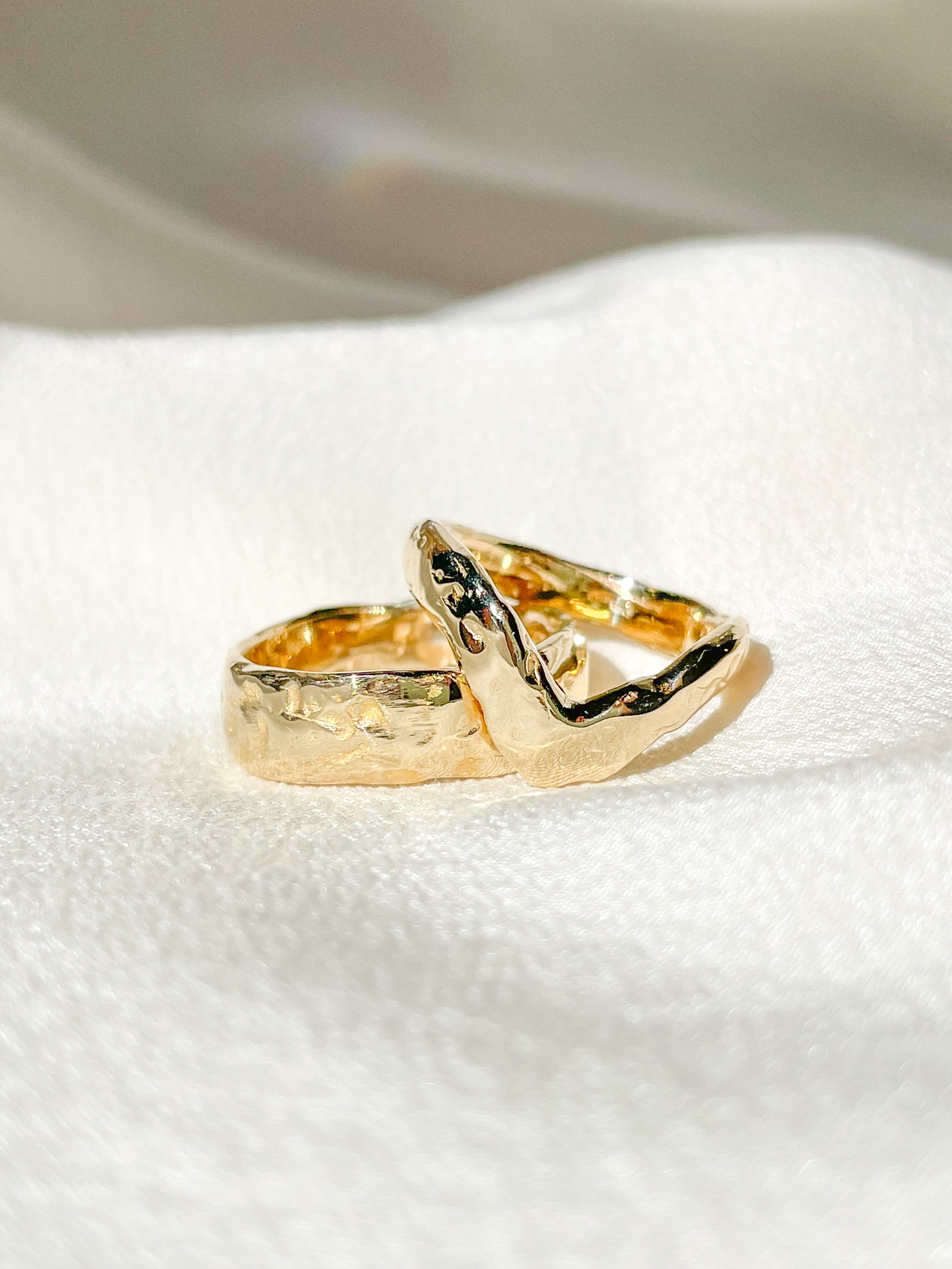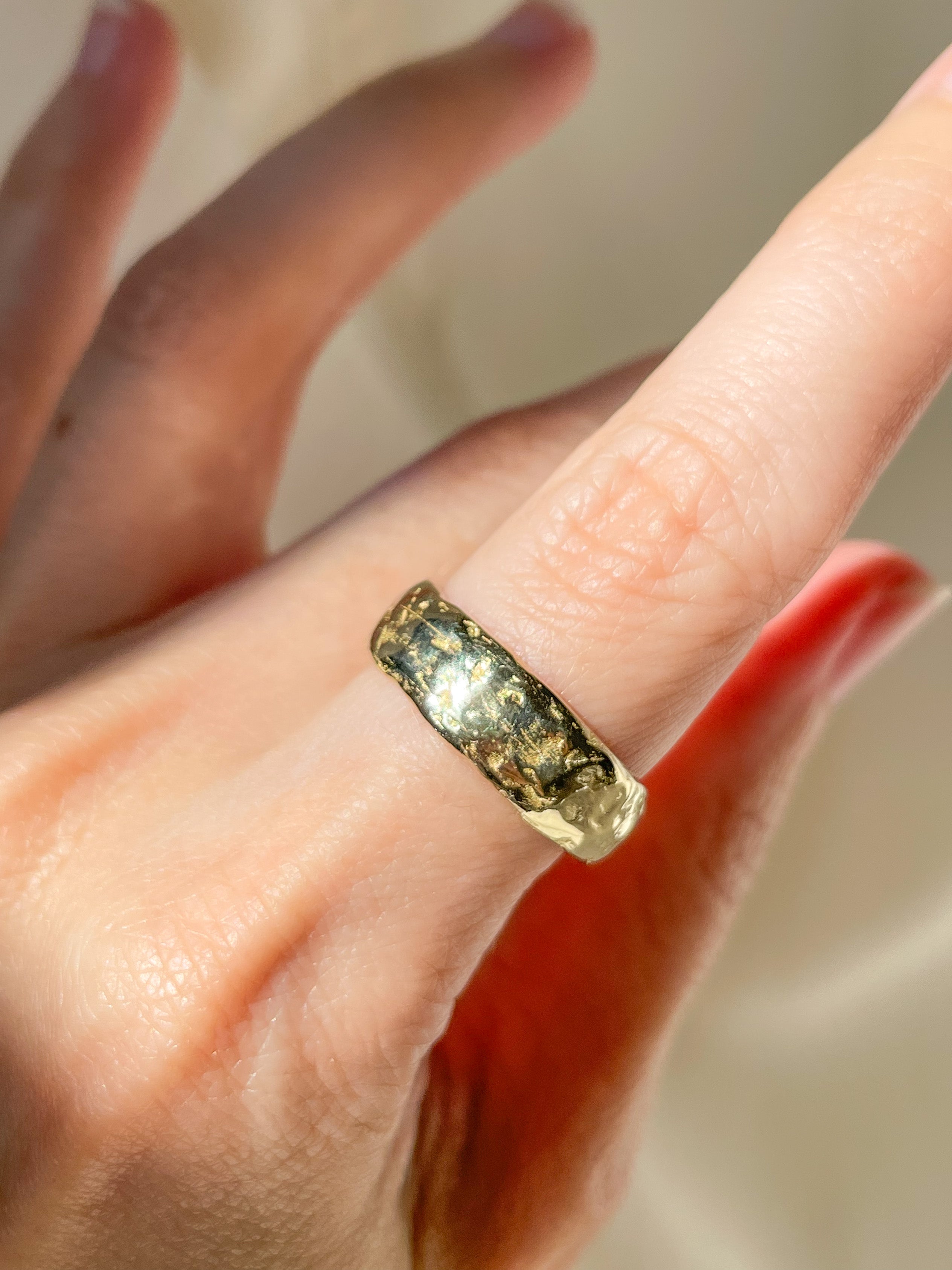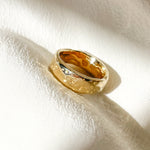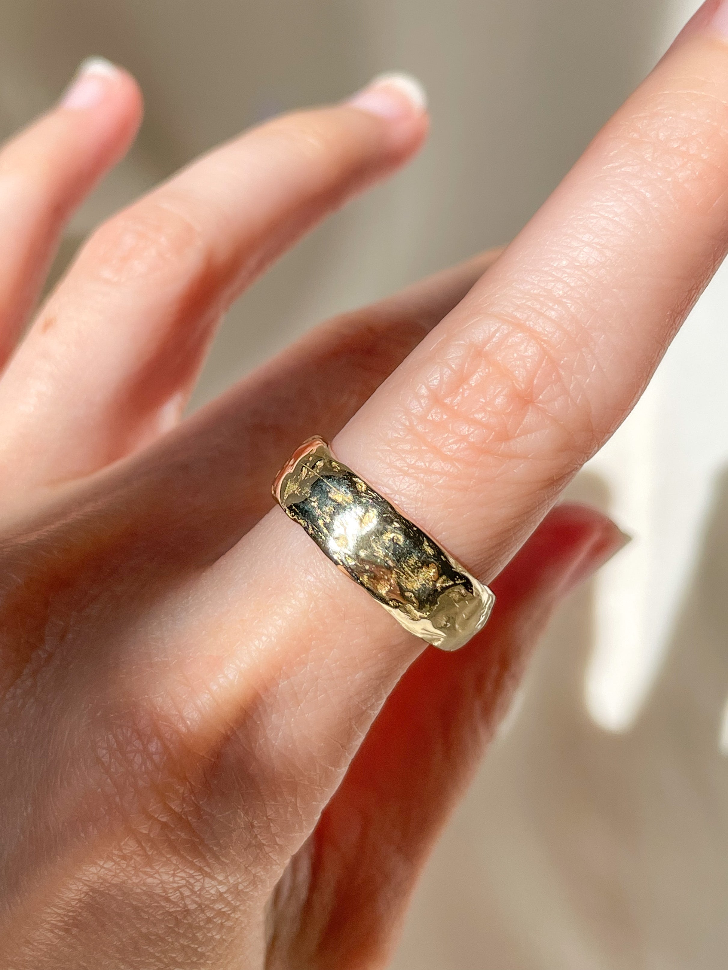 Hand-carved texturized band available in solid 14k Yellow, White, or Rose Gold.