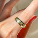 This luminous double-wide Divinité band embodies the strength of effervescent, exuberant Love. Love is Sacred and Divine - it is the miraculous gift of the Holy Spirit, making up the world we live in. A reminder to keep love at the forefront of all you do, a token of celebration, steadfastness and joy, a talisman of your angels guiding you through unconditional self-love and the ability to love another whole-heartedly.