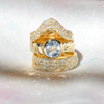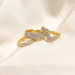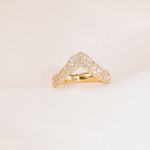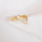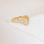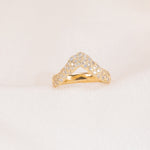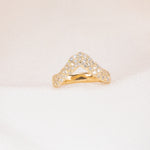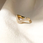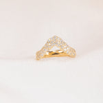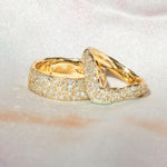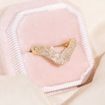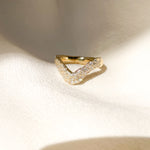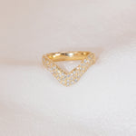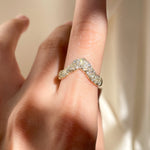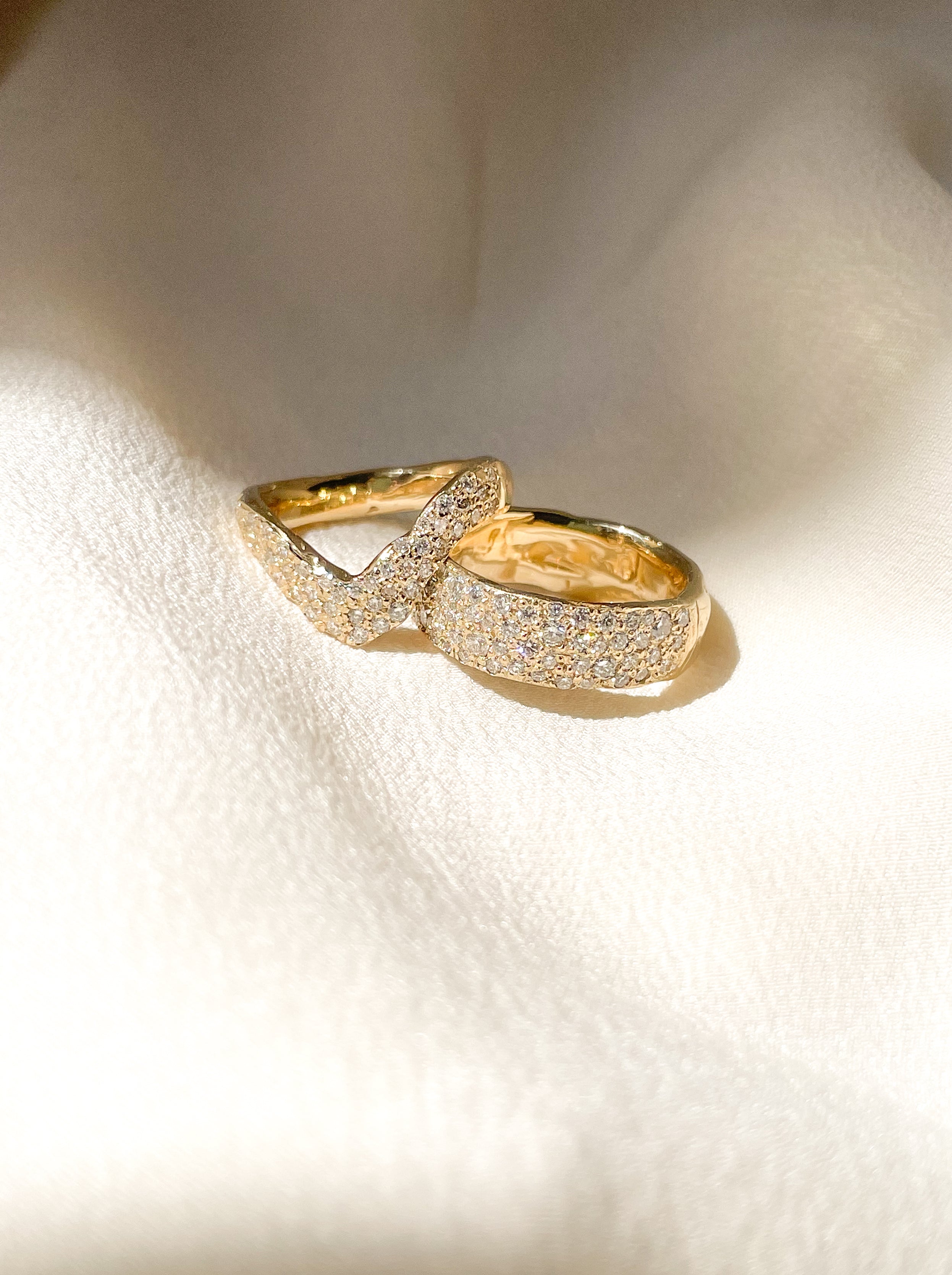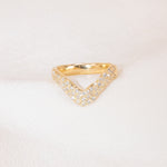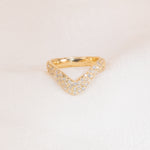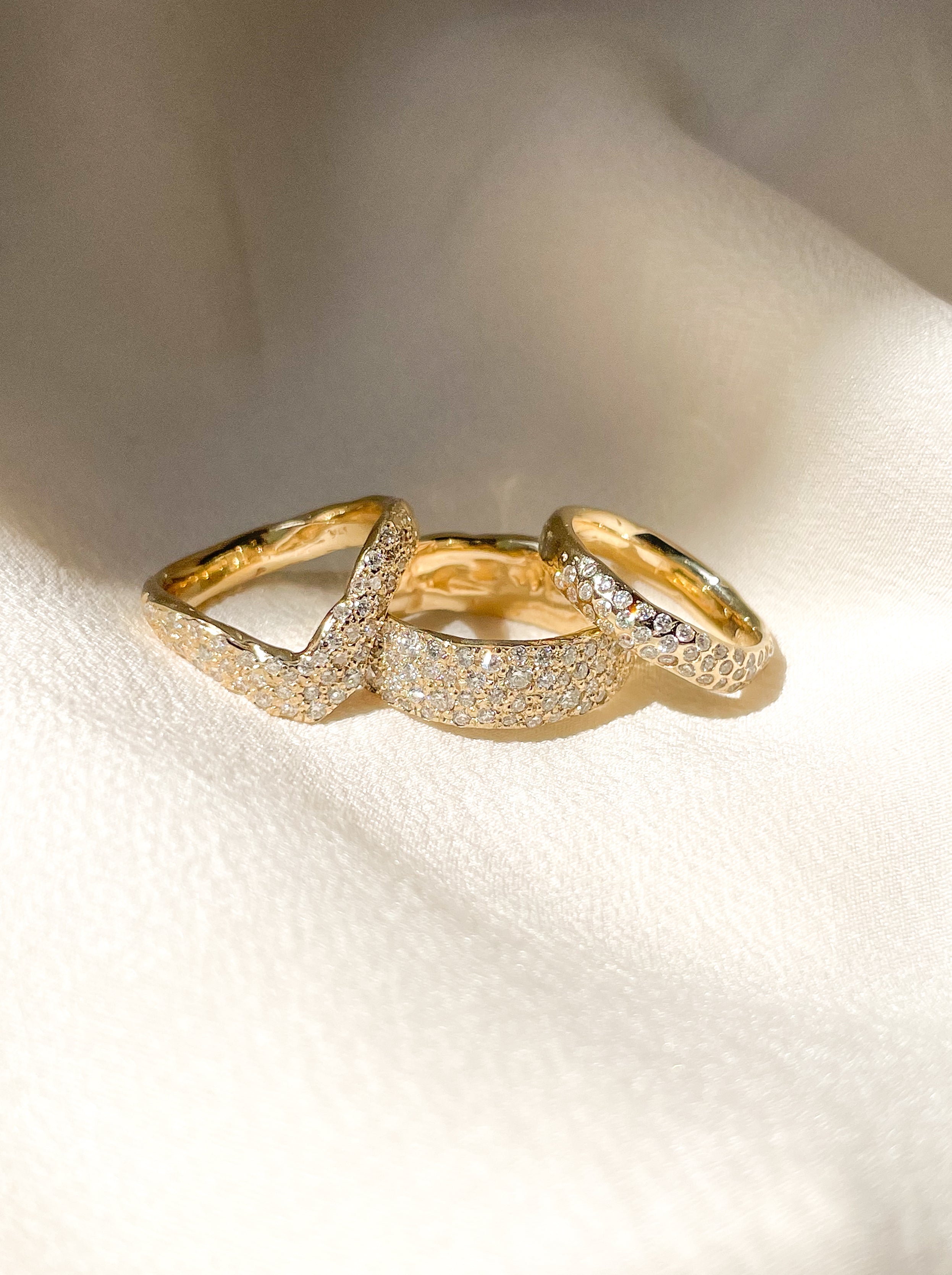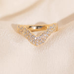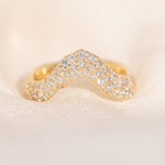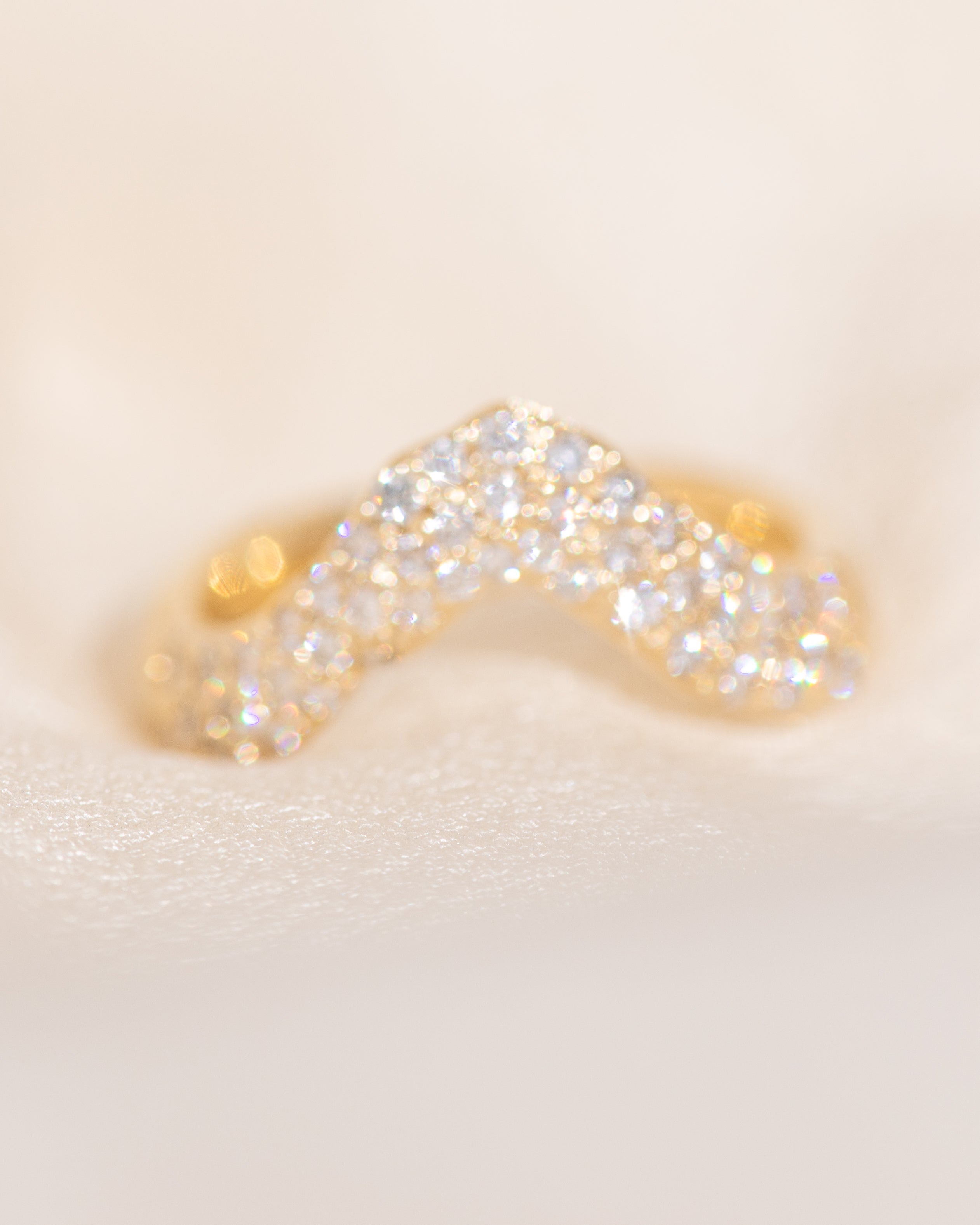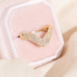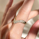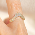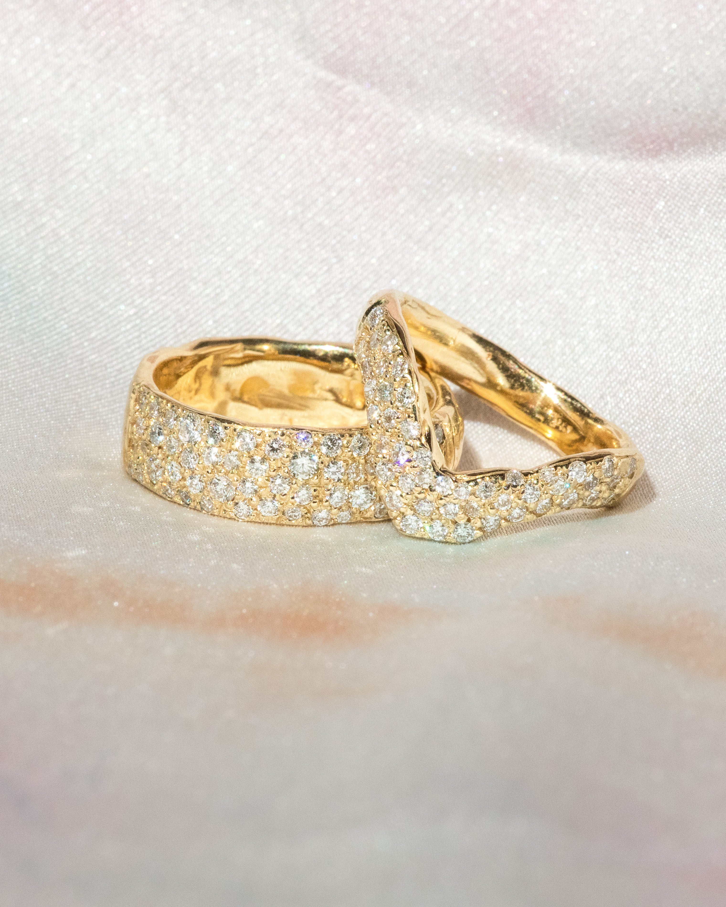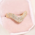 Hand-carved v-shaped band available in 14k Yellow, White, or Rose Gold, set with an incredible, shimmering disco party of 45 White Diamonds.