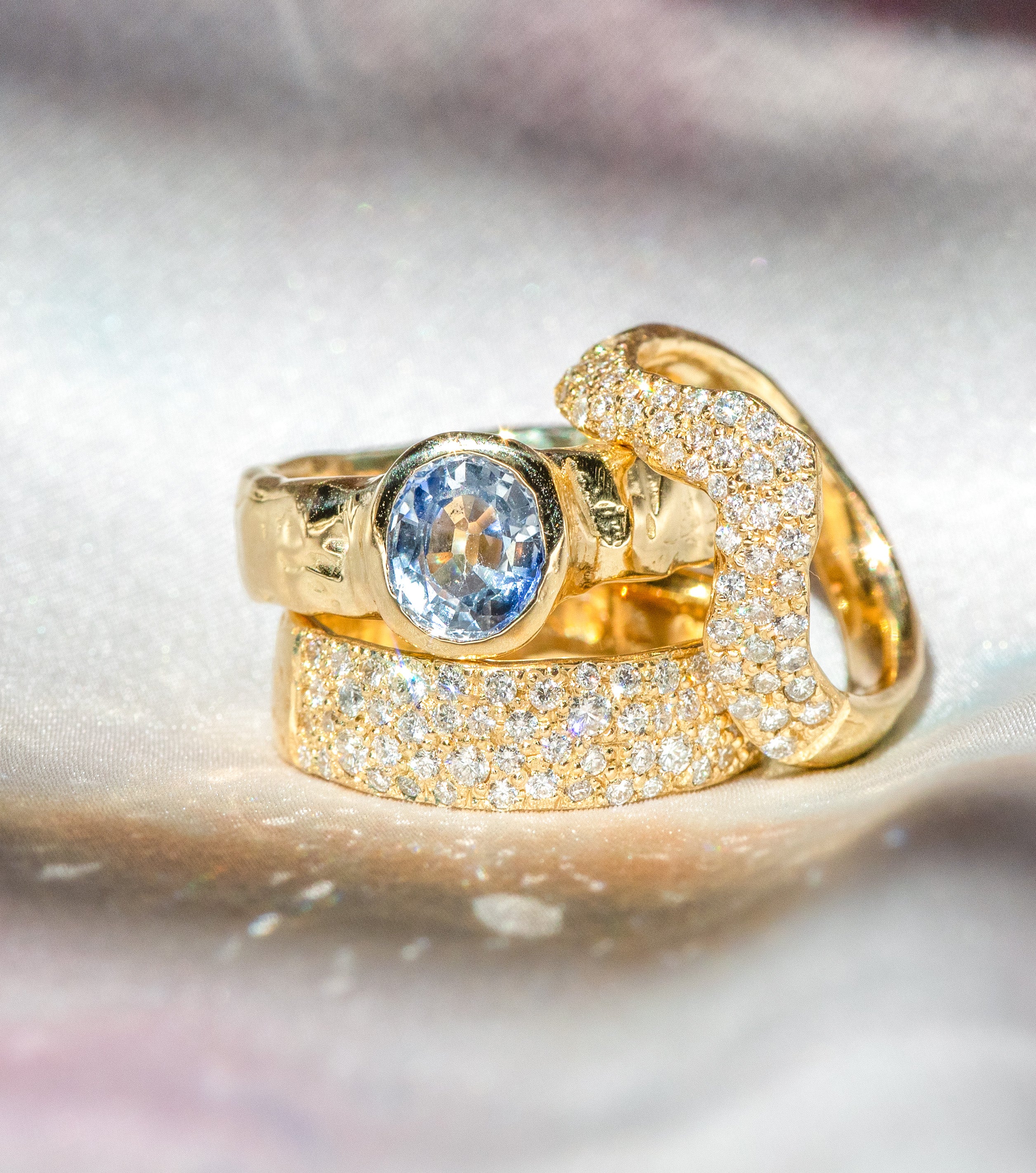 Any piece that is not a ready-made one of a kind is available to custom order in 14k White or 14k Rose Gold.