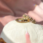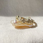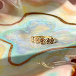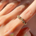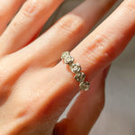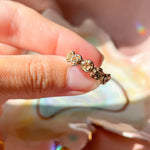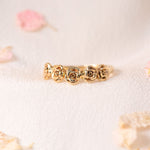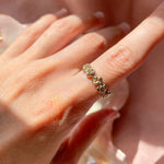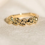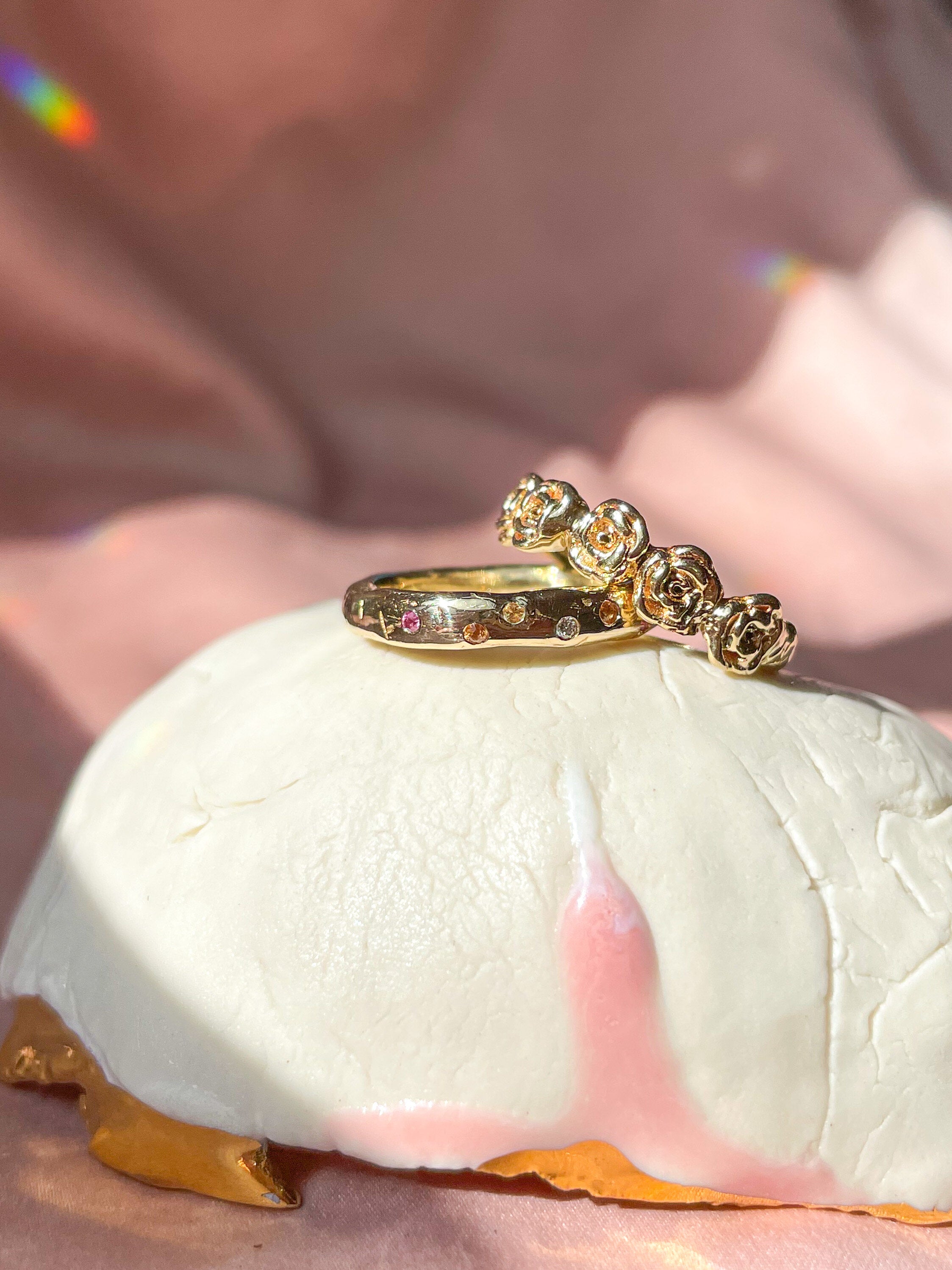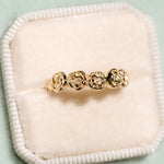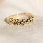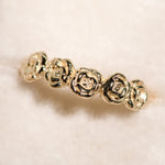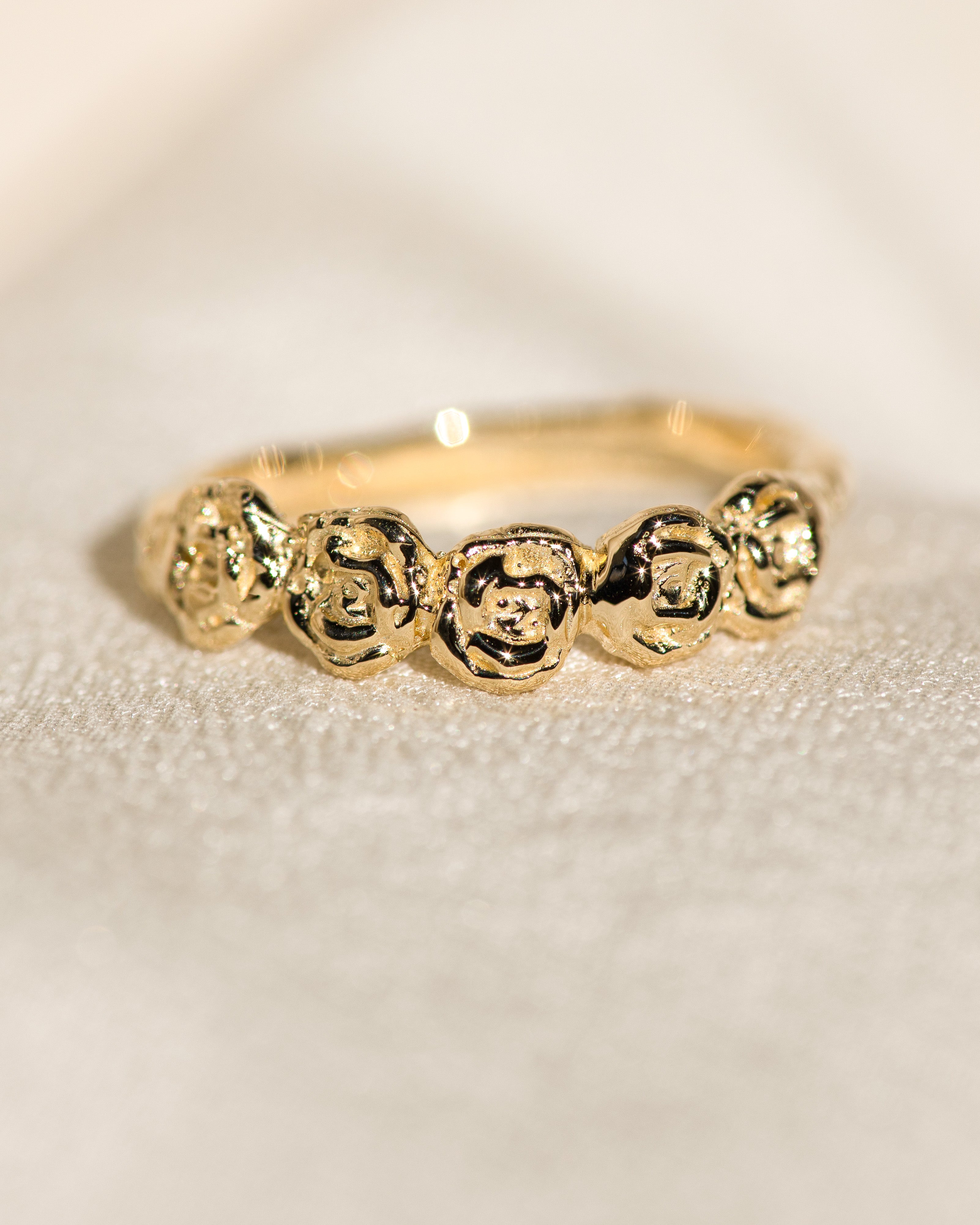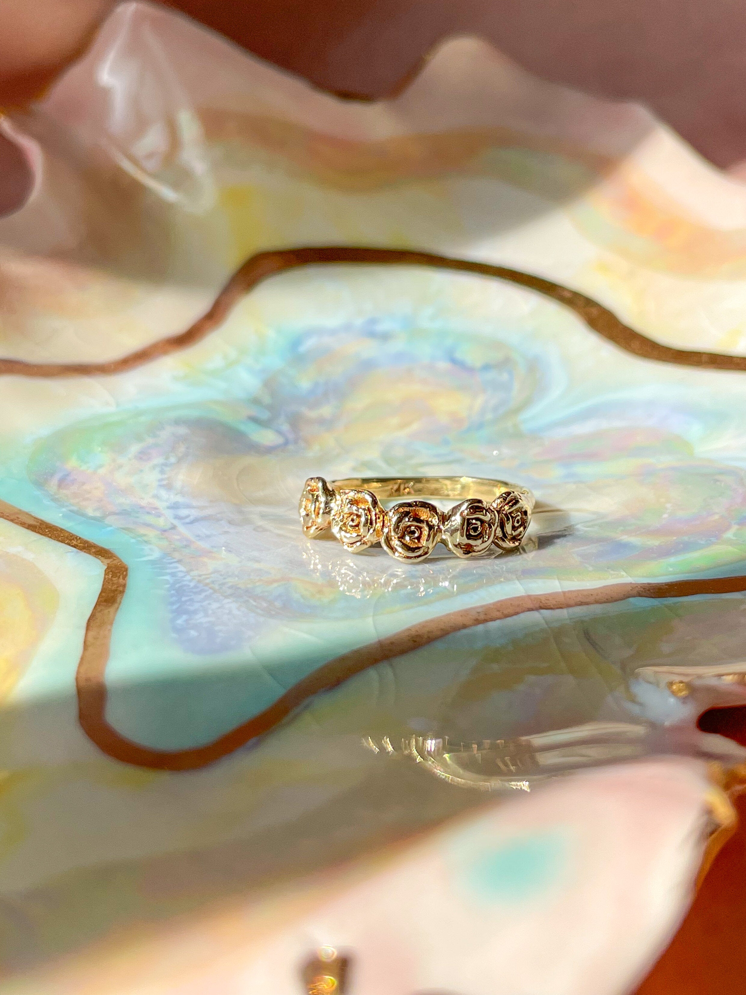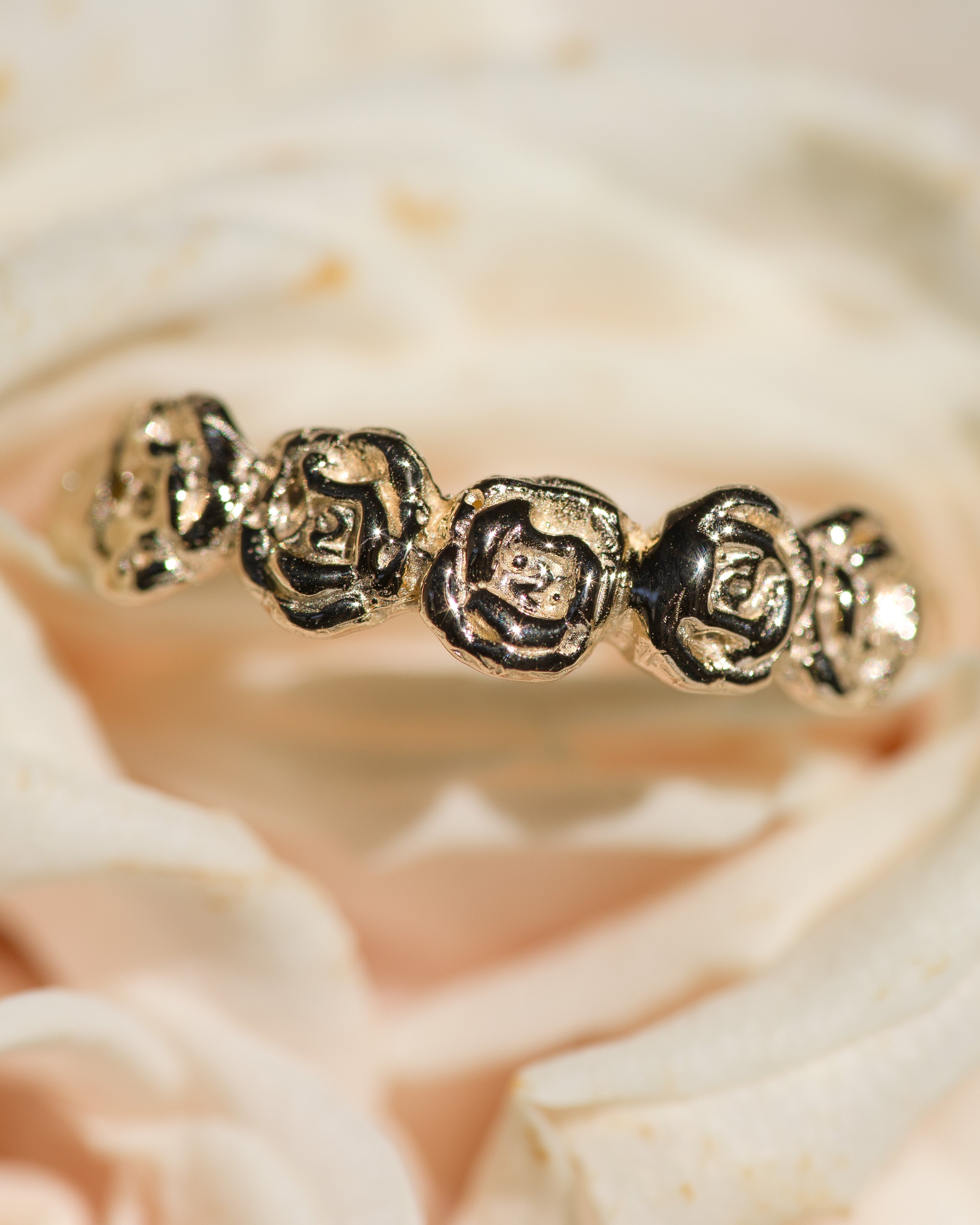 This hand-carved band features a halo of rosebuds, designed to enrapture you within the Divine love of your angels and serve as a reminder of your innate perfection and beauty.